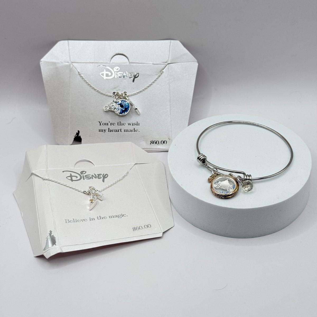 LOT 40J: Disney Princess Cinderella Jewelry Collection - Pendant / Charm Necklaces & Carriage Charm Bangle Bracelet
