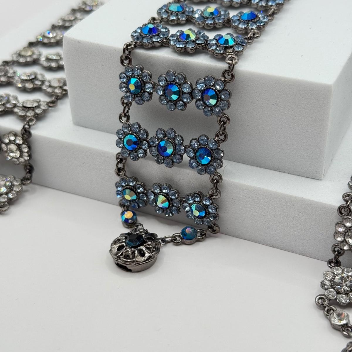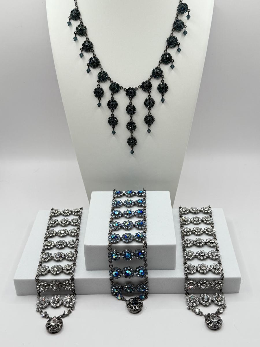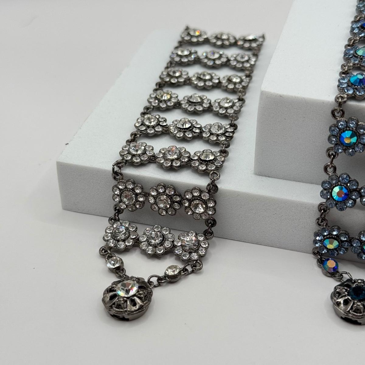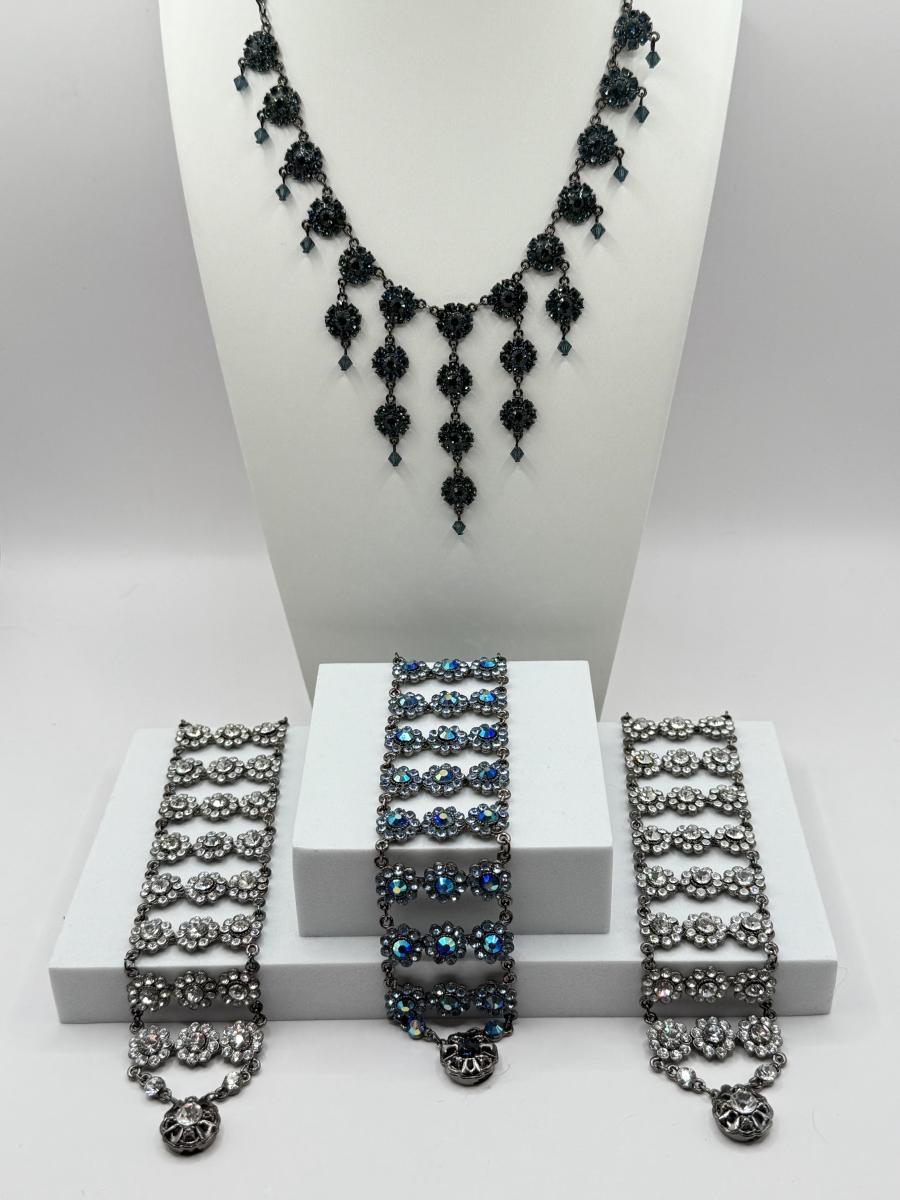 LOT 42J: 15" Austrian Crystal Blue Flower Necklace & 6" Cuff Bracelets w/ Decorative Clasps