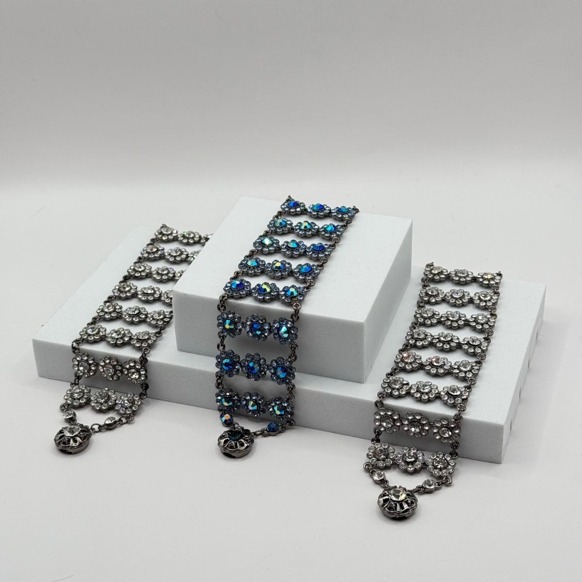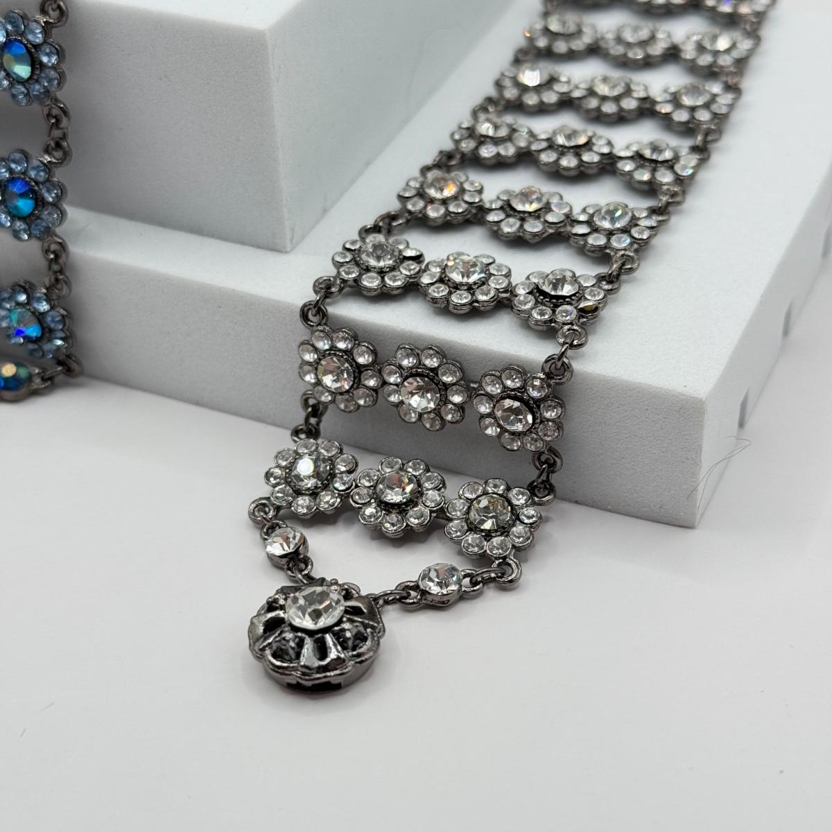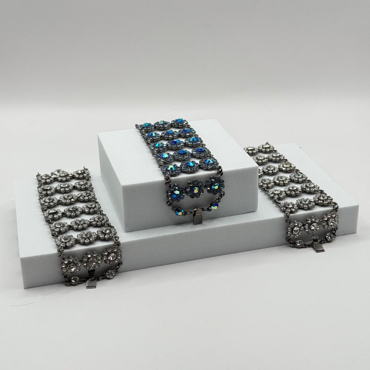 LOT 42J: 15" Austrian Crystal Blue Flower Necklace & 6" Cuff Bracelets w/ Decorative Clasps