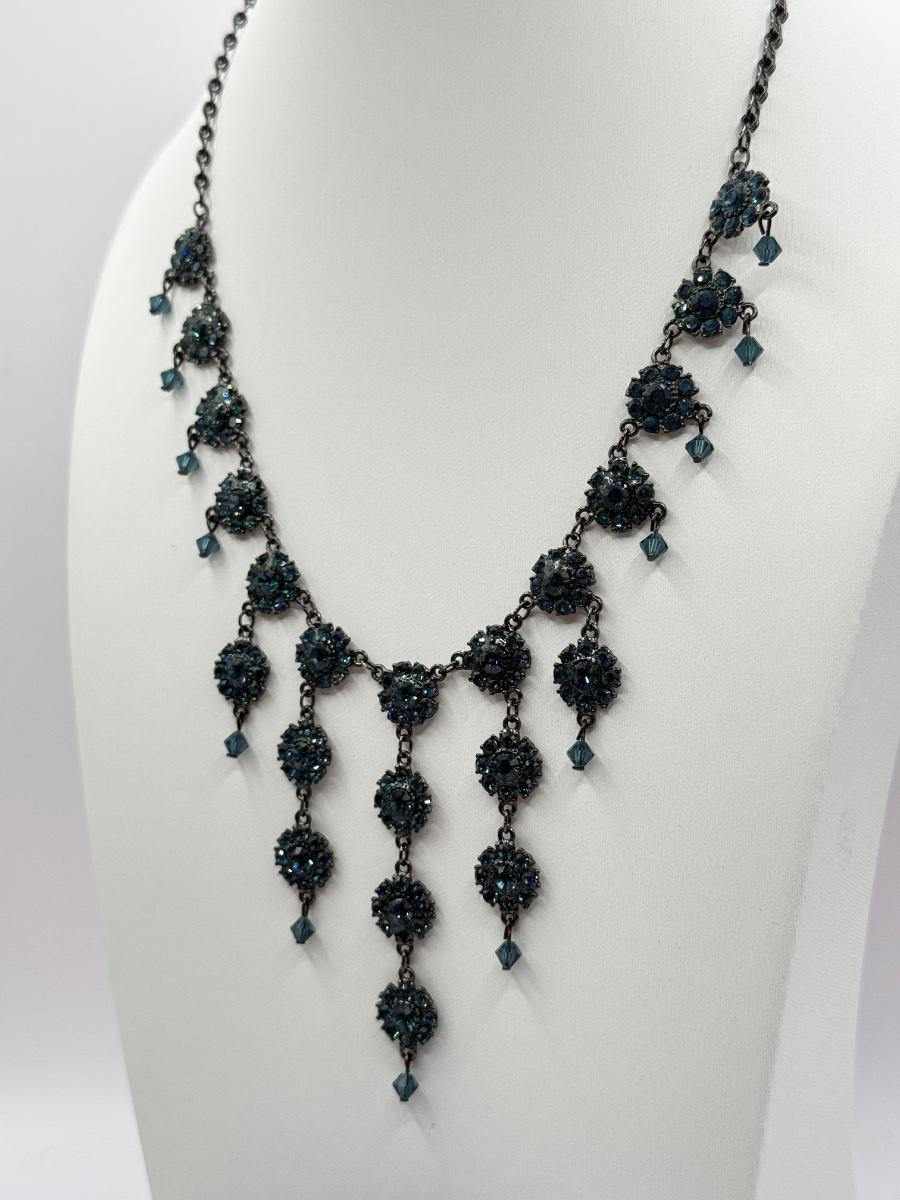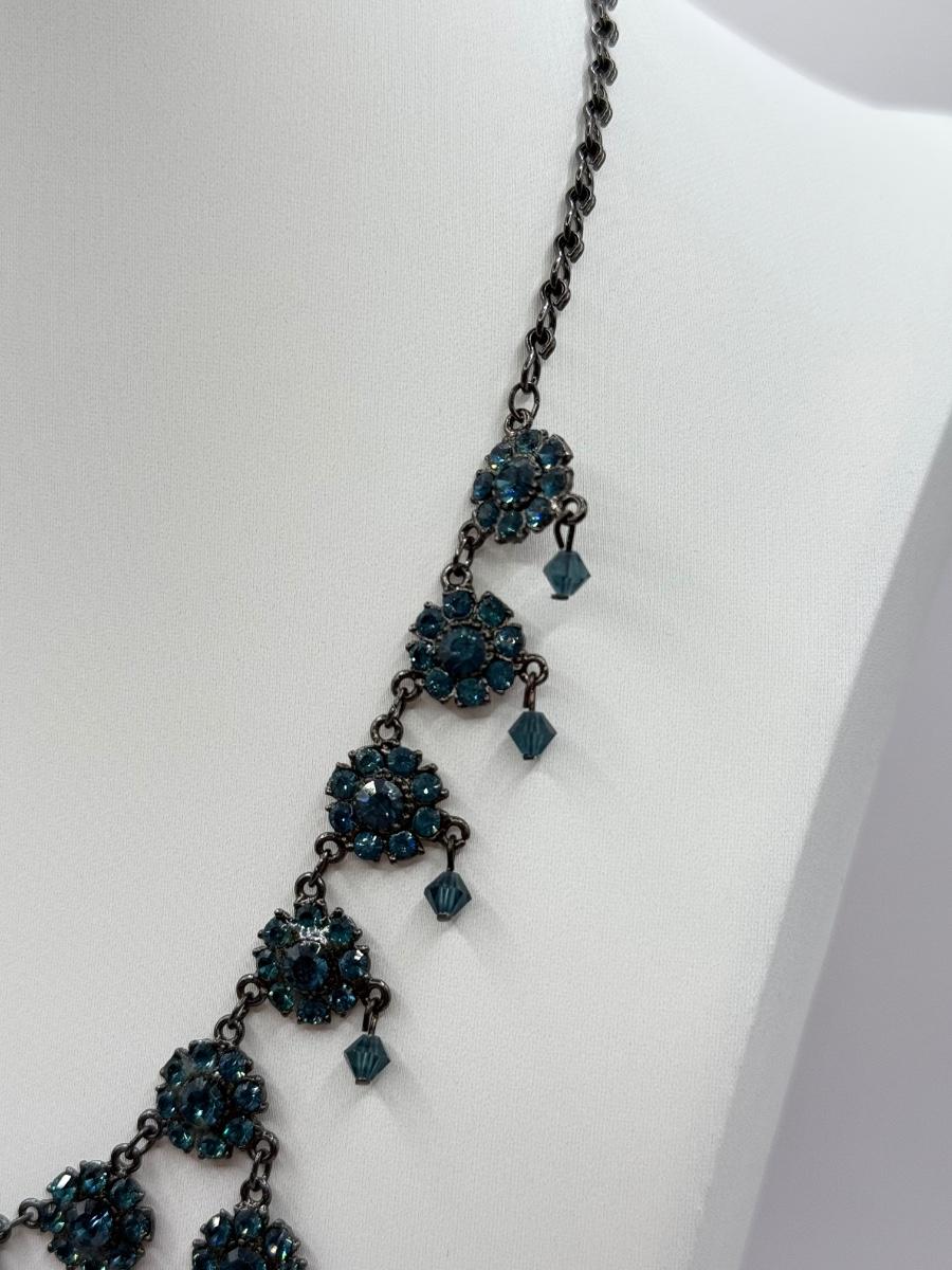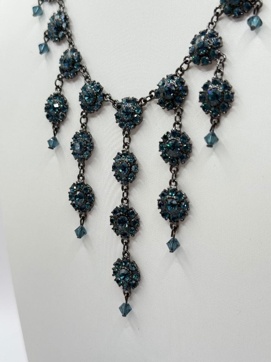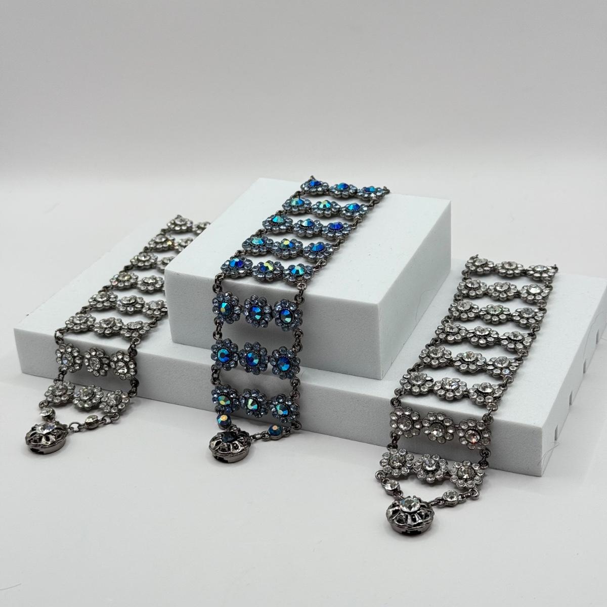 LOT 42J: 15" Austrian Crystal Blue Flower Necklace & 6" Cuff Bracelets w/ Decorative Clasps