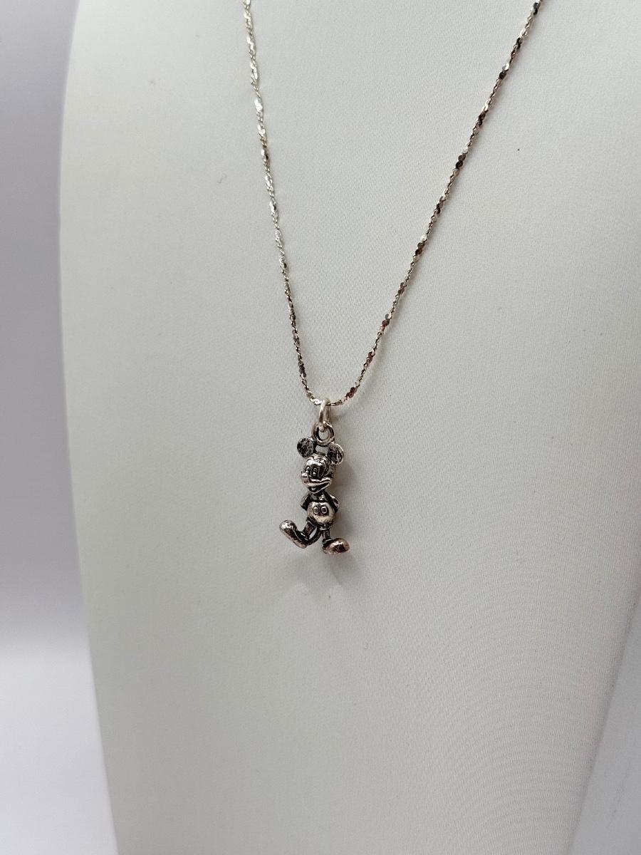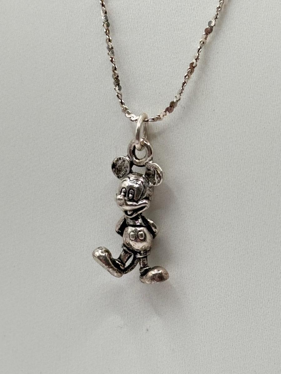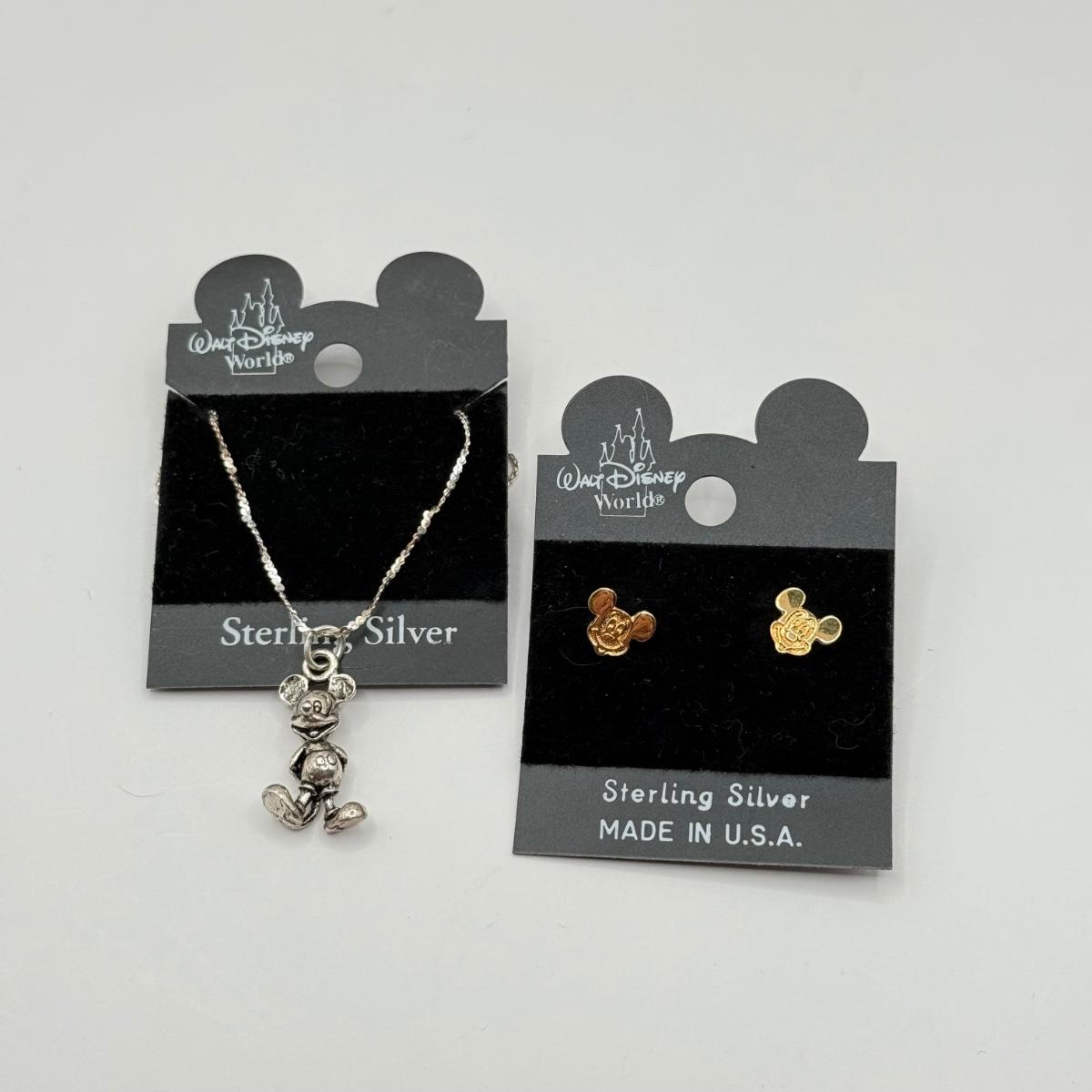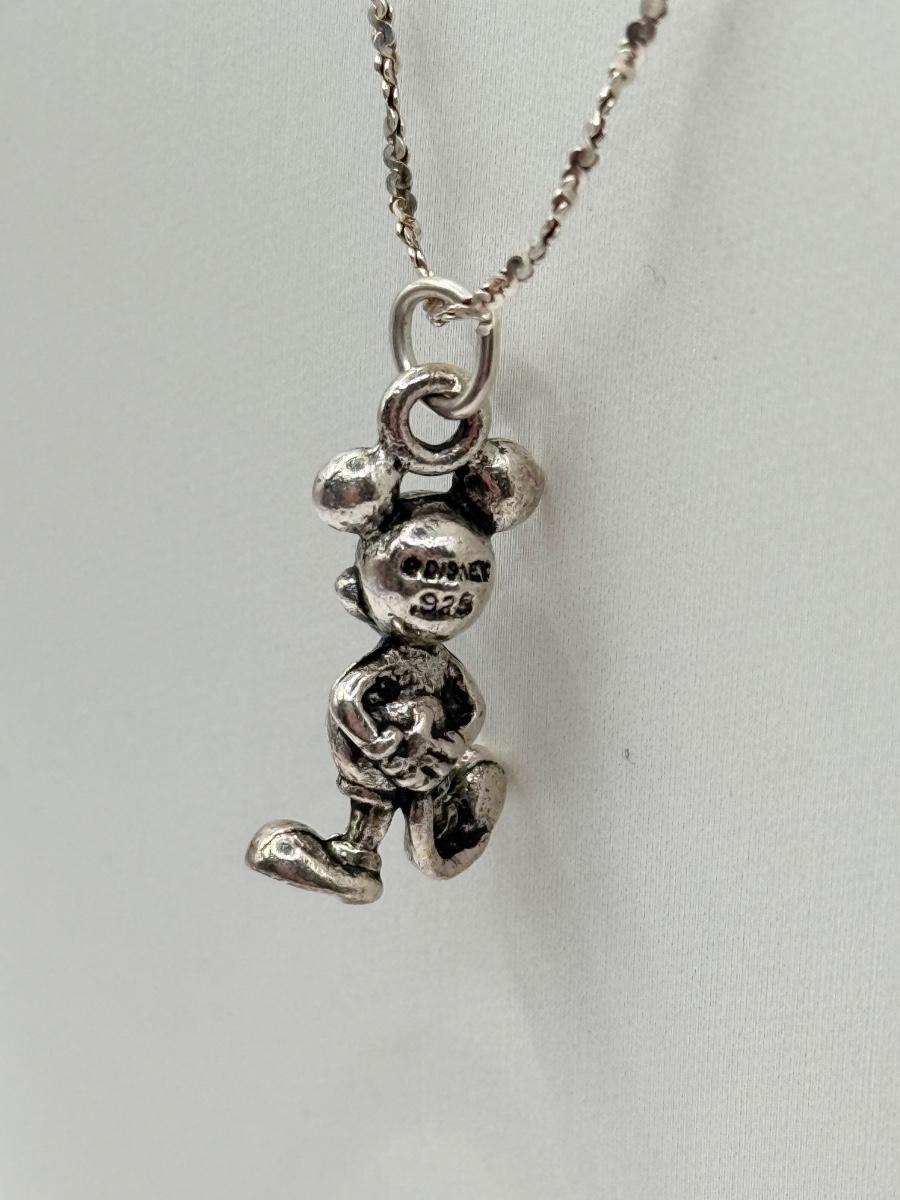 LOT 43J: Sterling Silver Disney Mickey Mouse Pendant on 18" 925 Italy Chain & Sterling Mickey Pierced Earrings (6.5gtw)