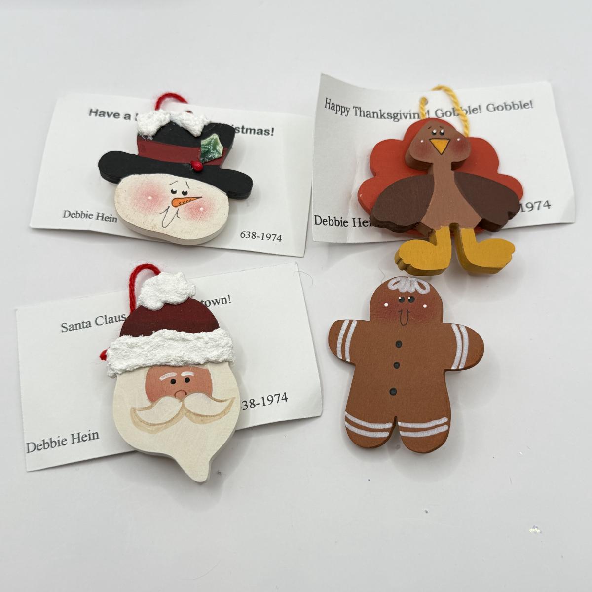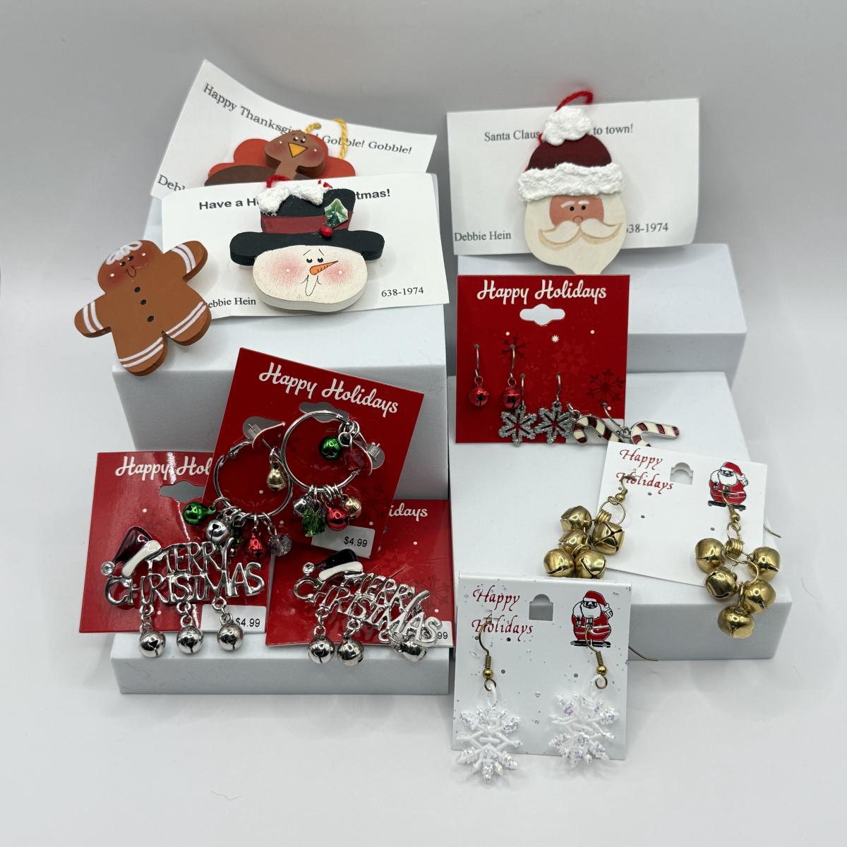 LOT 52J: Christmas Holiday Jewelry - Debbie Hein Wooden Pins, Earrings & Brooches