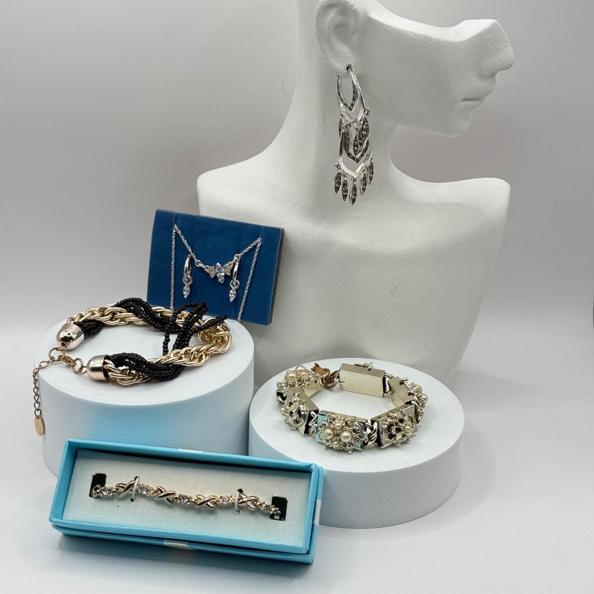 LOT 59J: Costume Jewelry - Monet Earrings, Avon Tennis Bracelet, Marquis CZ Matching Set & More