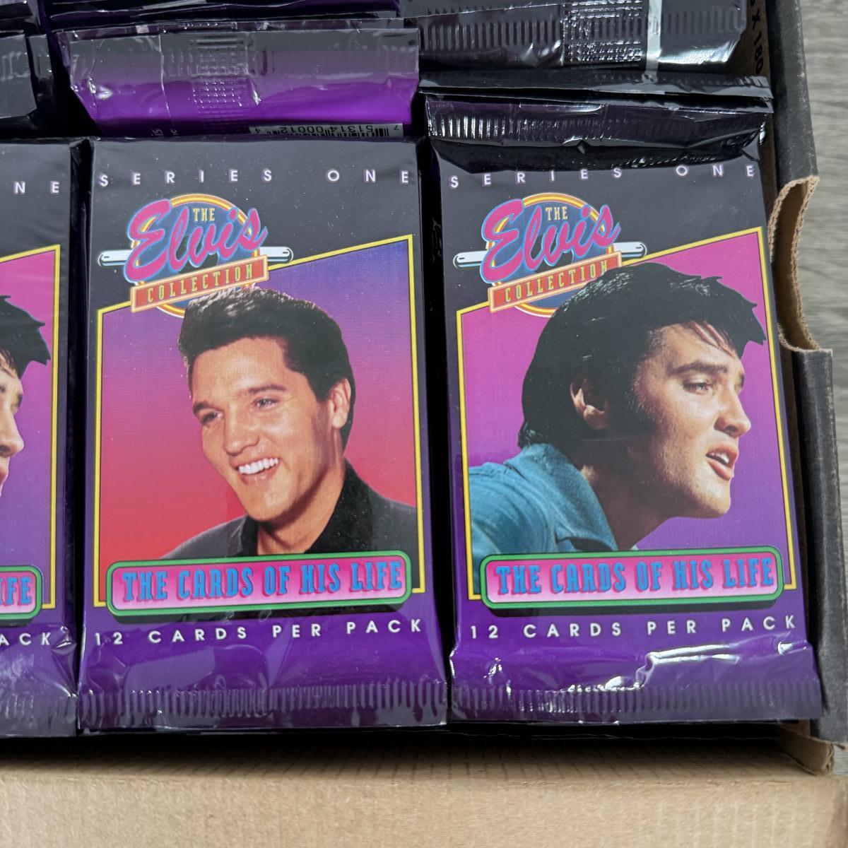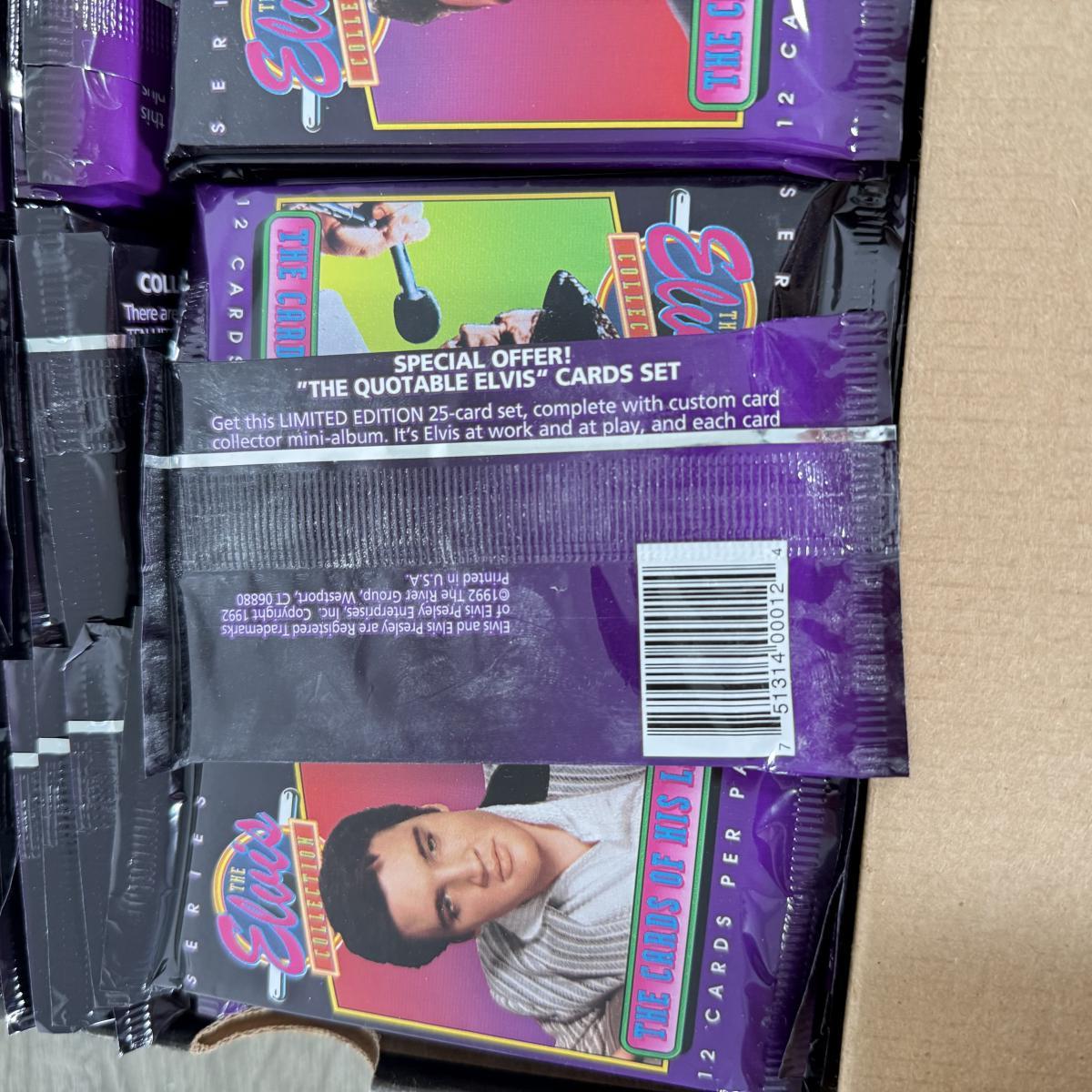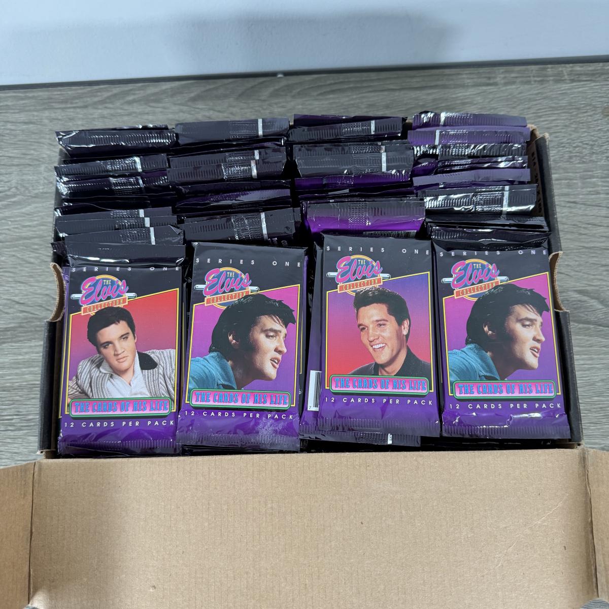 LOT 88B: Box Full of NIP The Elvis Collection 12-pack Trading Cards & Binder Sheets of Elvis Facts Trading Cards