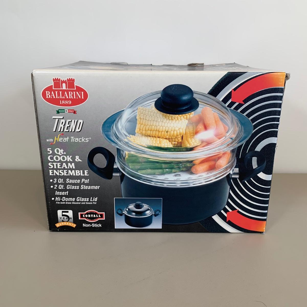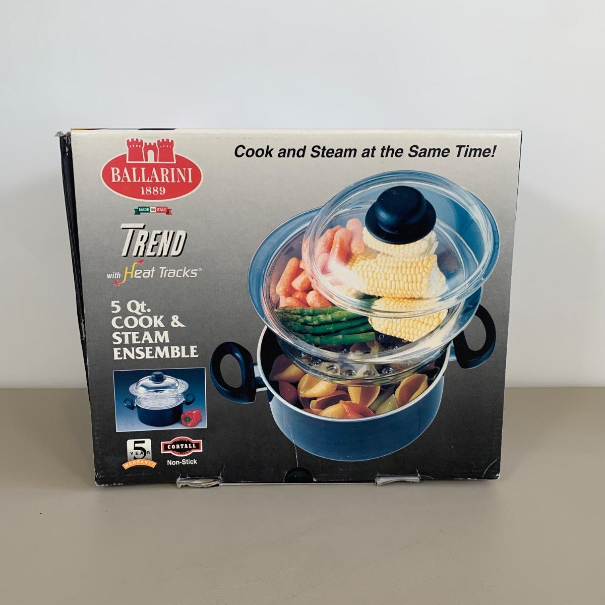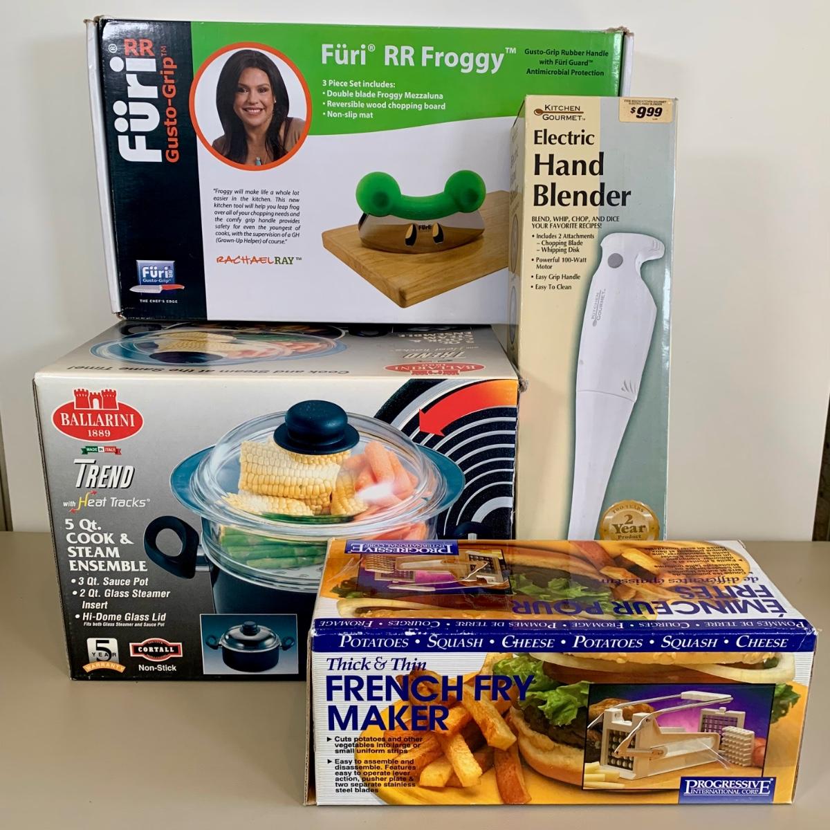LOT 127 A: NIP Ballarini Trend w/ Heat Tracks 5 Qt. Cook & Steam Ensemble, Rachael Ray Füri RR Froggy Gusto Grip, Kitchen Gourmet Electric Hand Blender, & More
