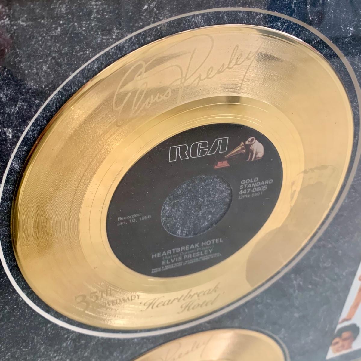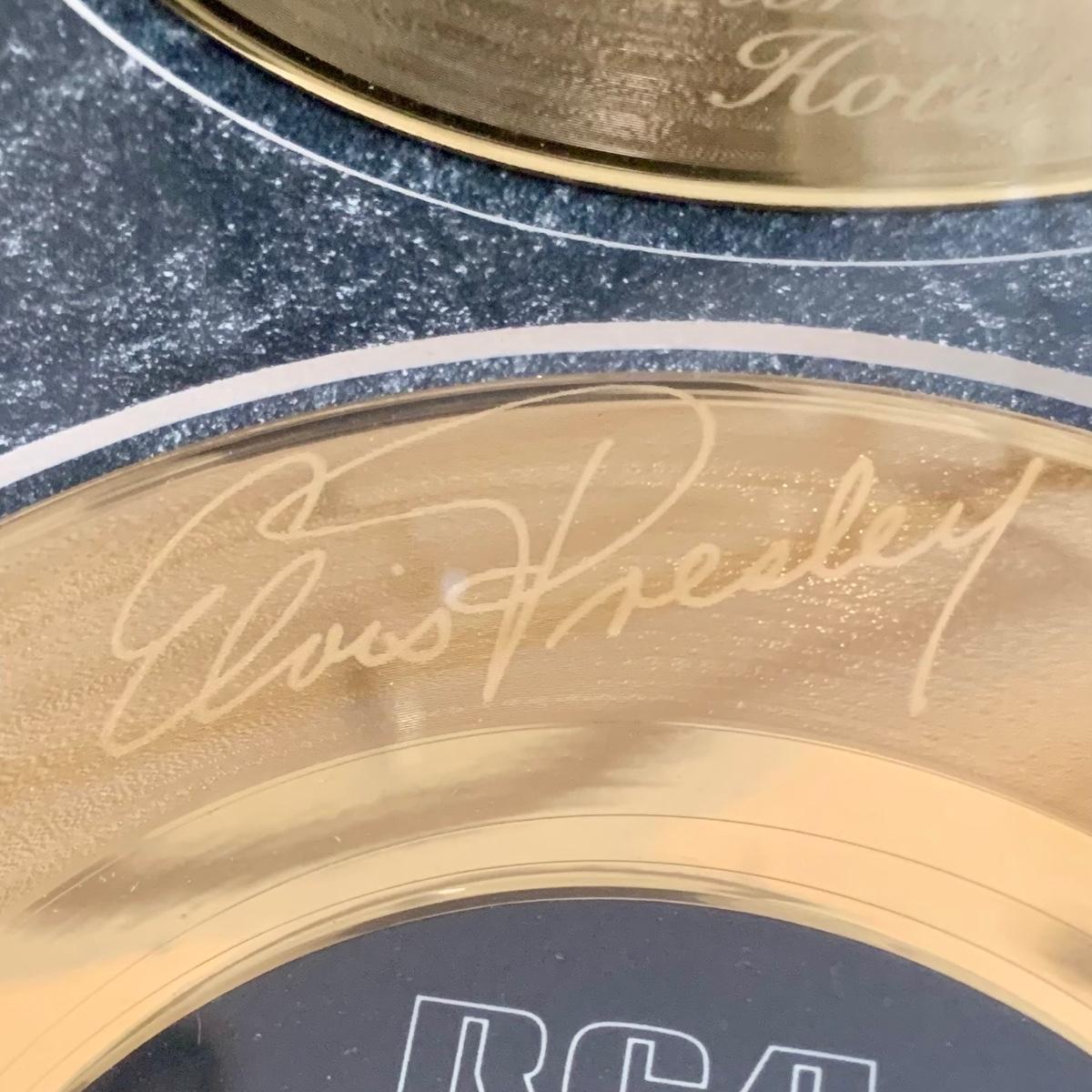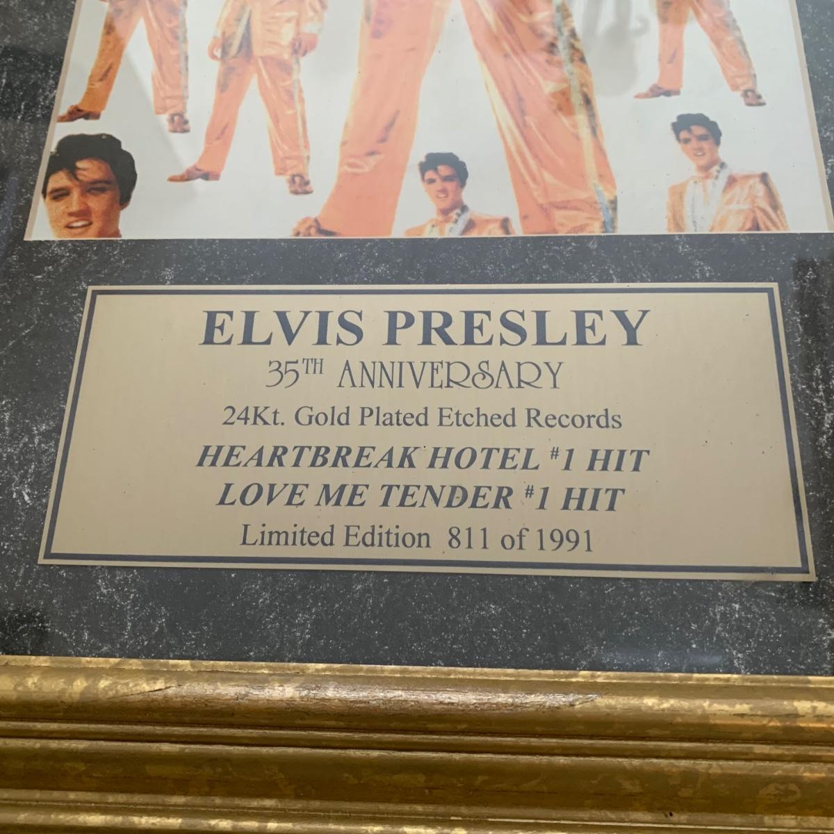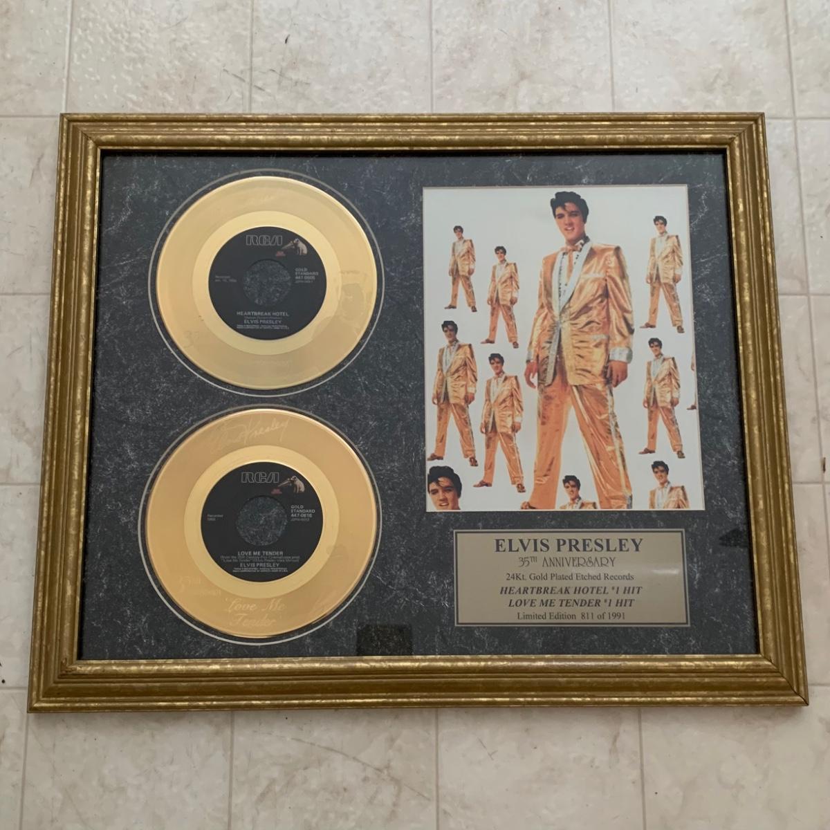 LOT 128 A: Framed Limited Edition Numbered (811/1991) Elvis Presley 35th Anniversary 24 Kt. Gold Plated Etched Records; "Heartbreak Hotel" & "Love Me Tender"