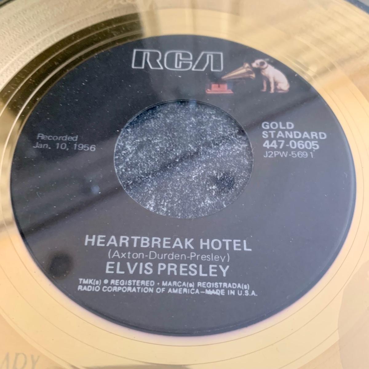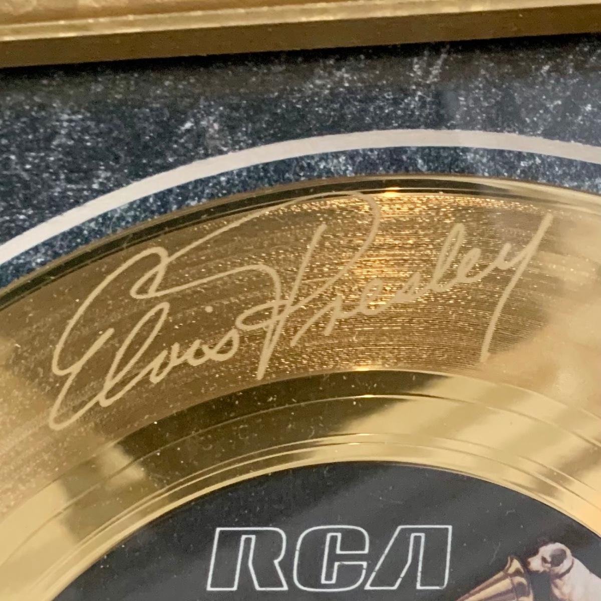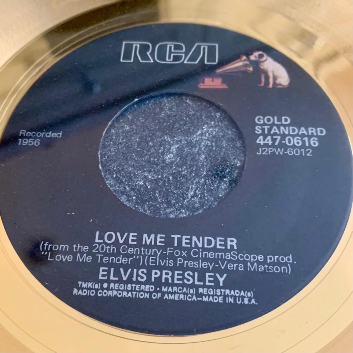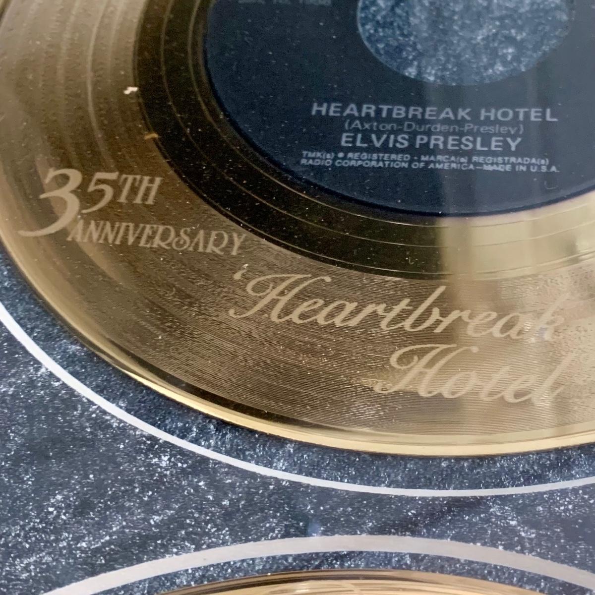 LOT 128 A: Framed Limited Edition Numbered (811/1991) Elvis Presley 35th Anniversary 24 Kt. Gold Plated Etched Records; "Heartbreak Hotel" & "Love Me Tender"