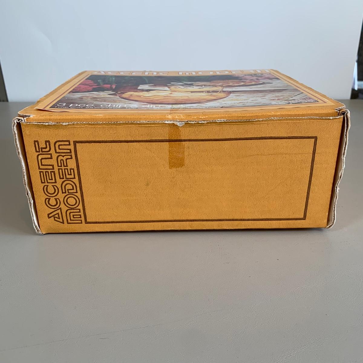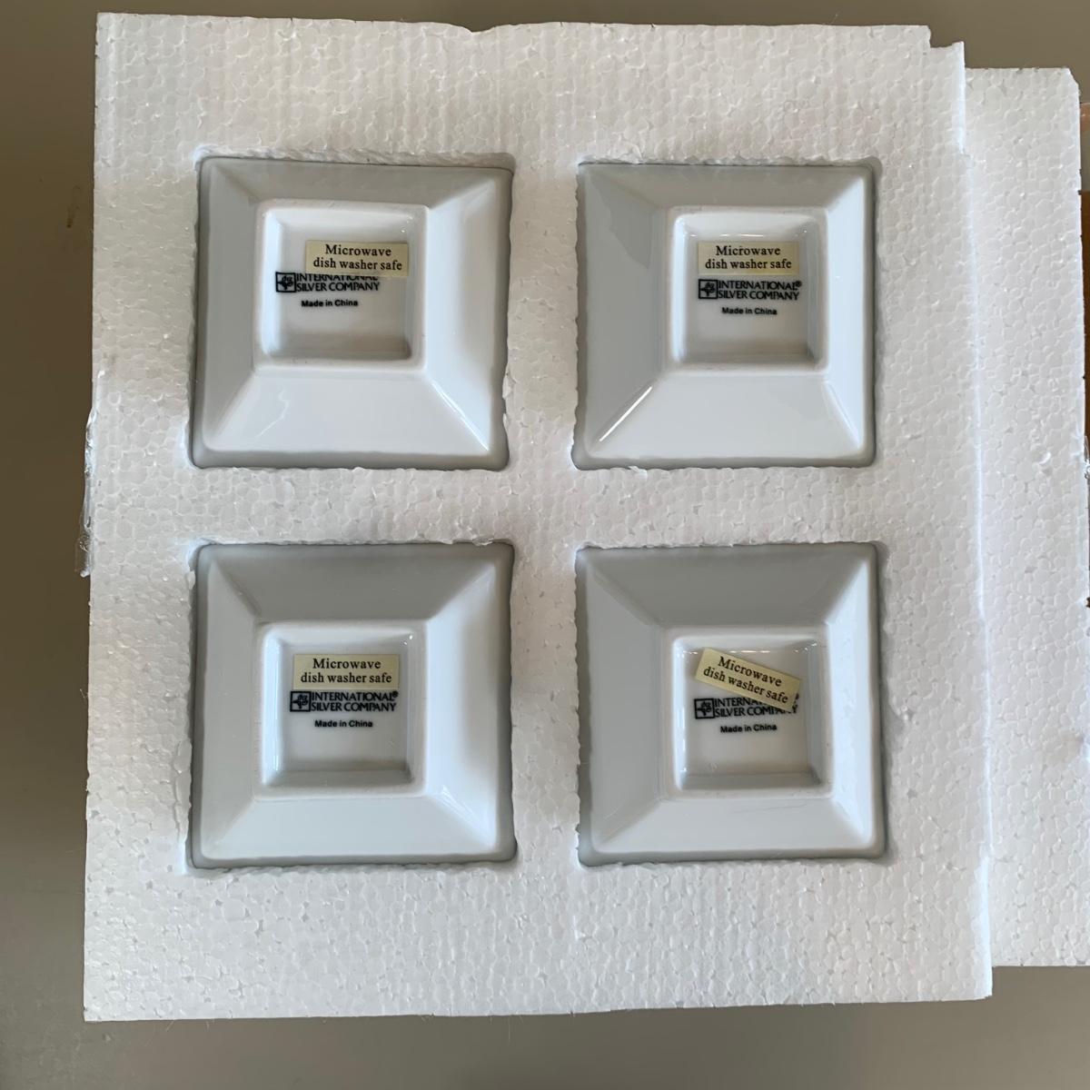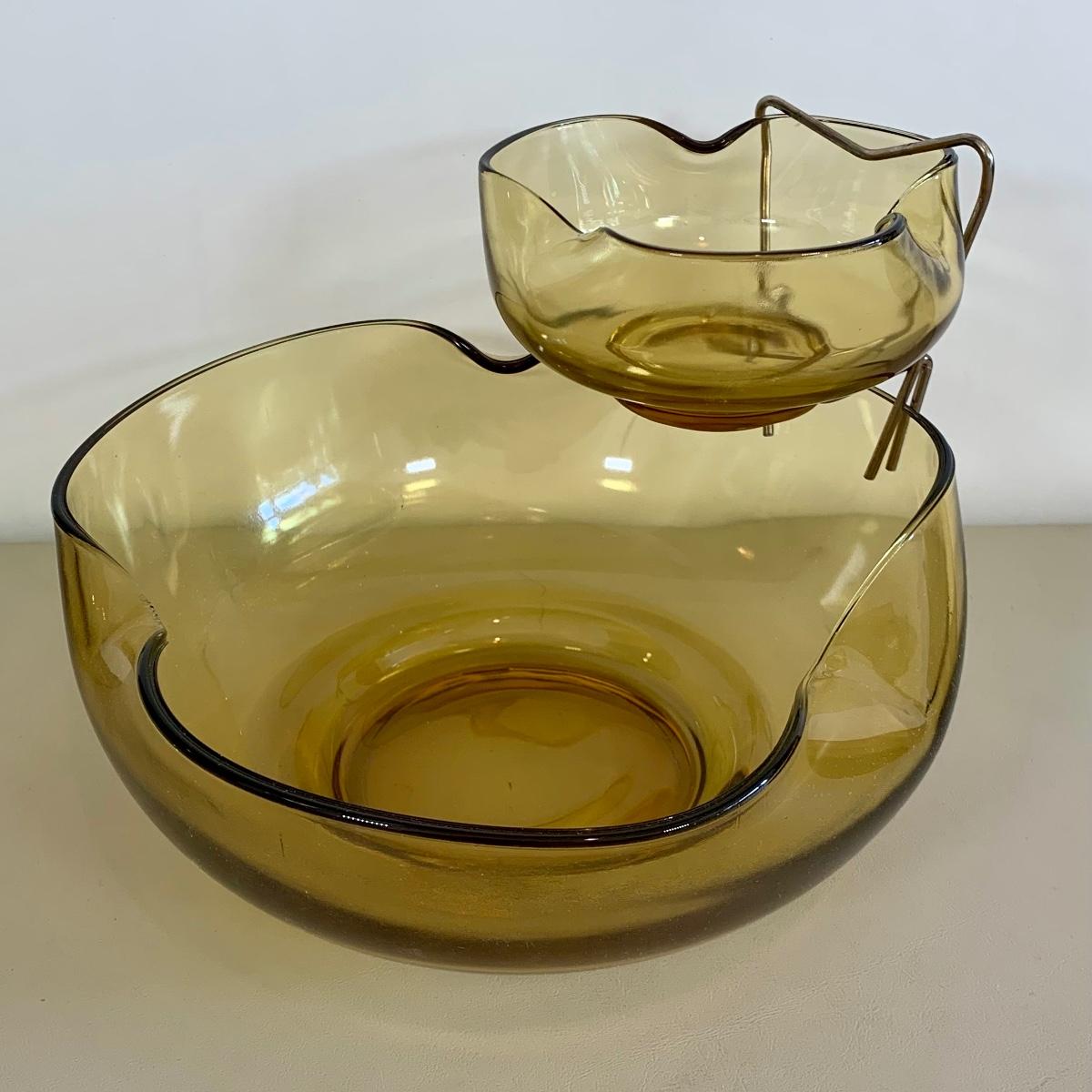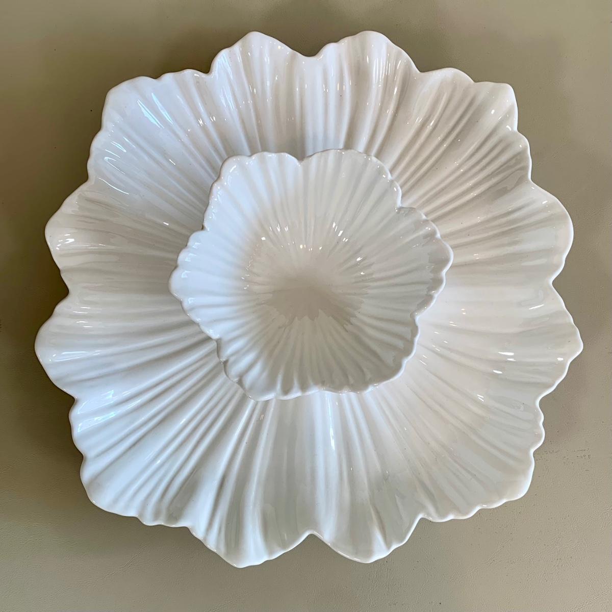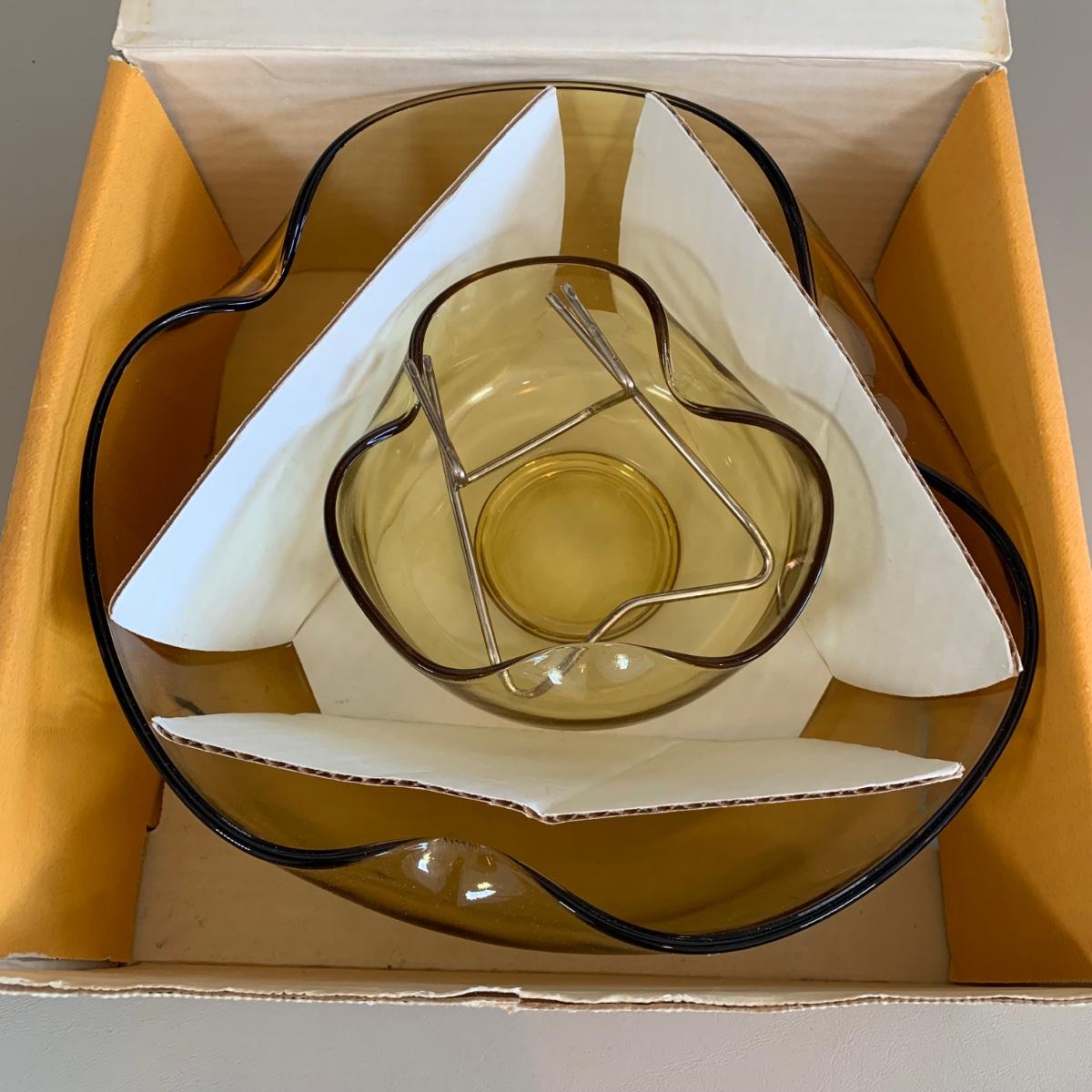 LOT 130 L: International Silver Co. Emporia Collection 4 & 3 Section Porcelain Servers w/ Wooden Trays, Anchor Hocking Accent Modern Honey Gold 3 Piece Chip & Dip Set & More
