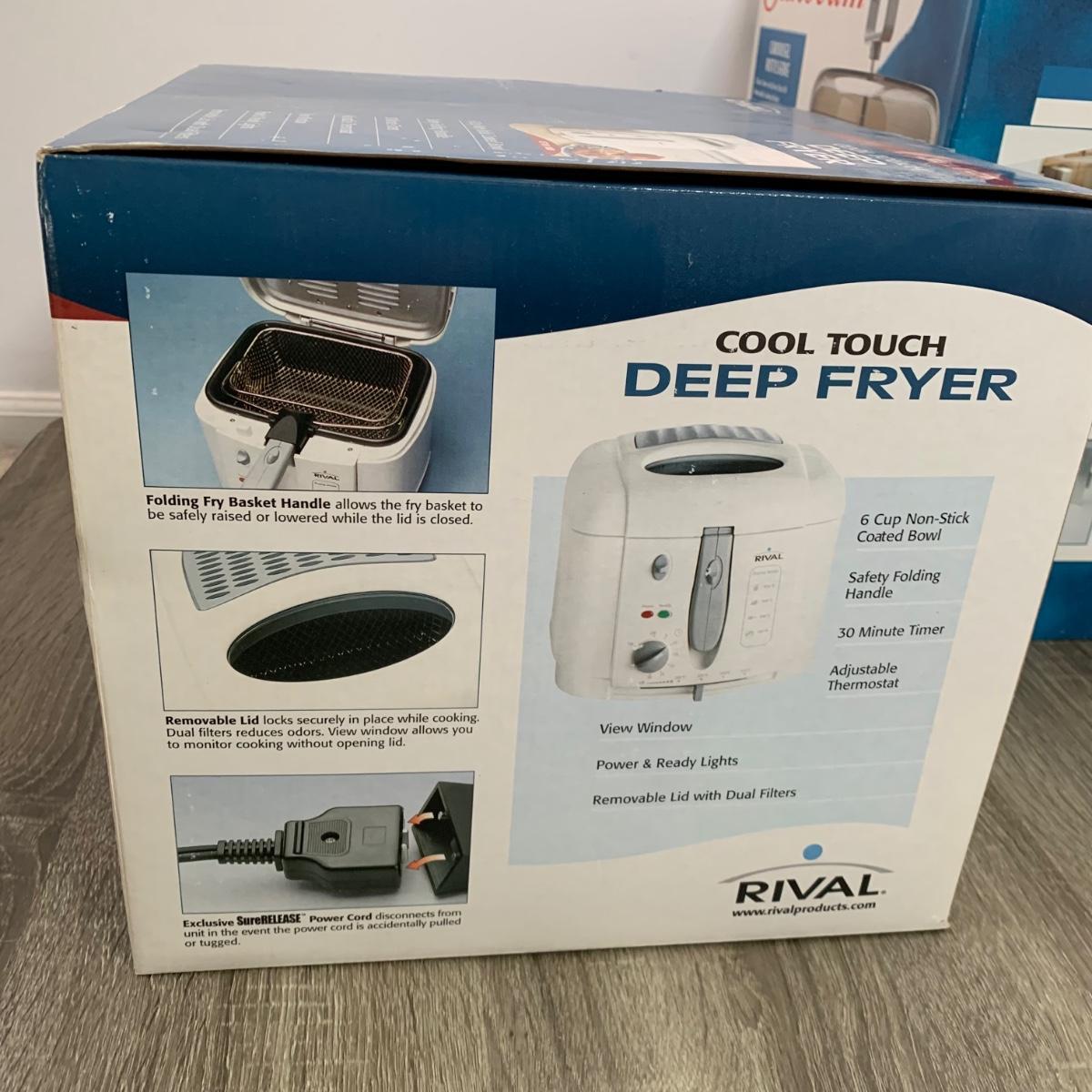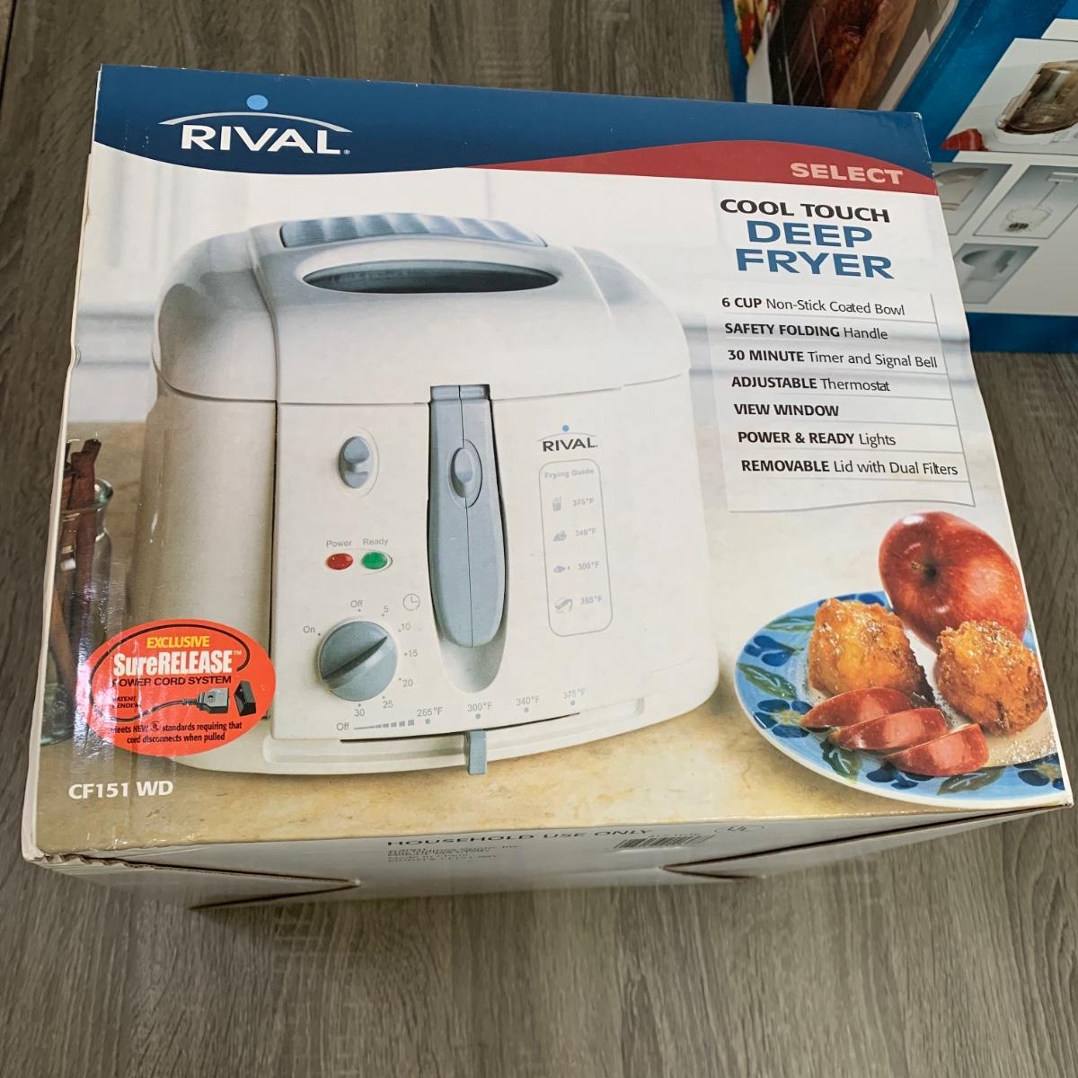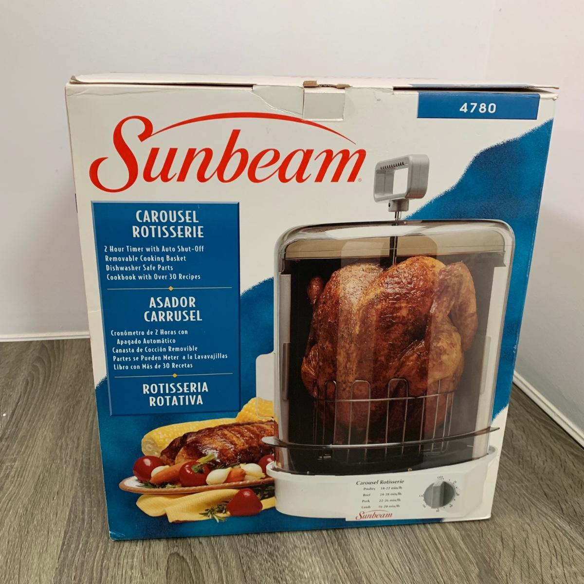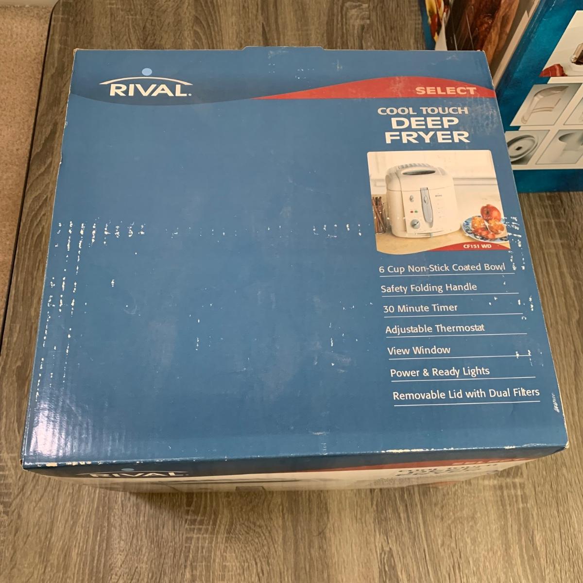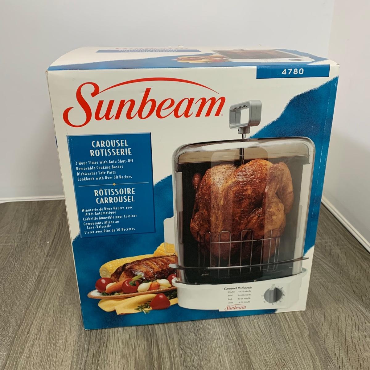 LOT 133 W: NIP Sunbeam Carousel Rotisserie, Rival Select Cool Touch Deep Fryer, & Rival Fold-Up Electric Food Slicer