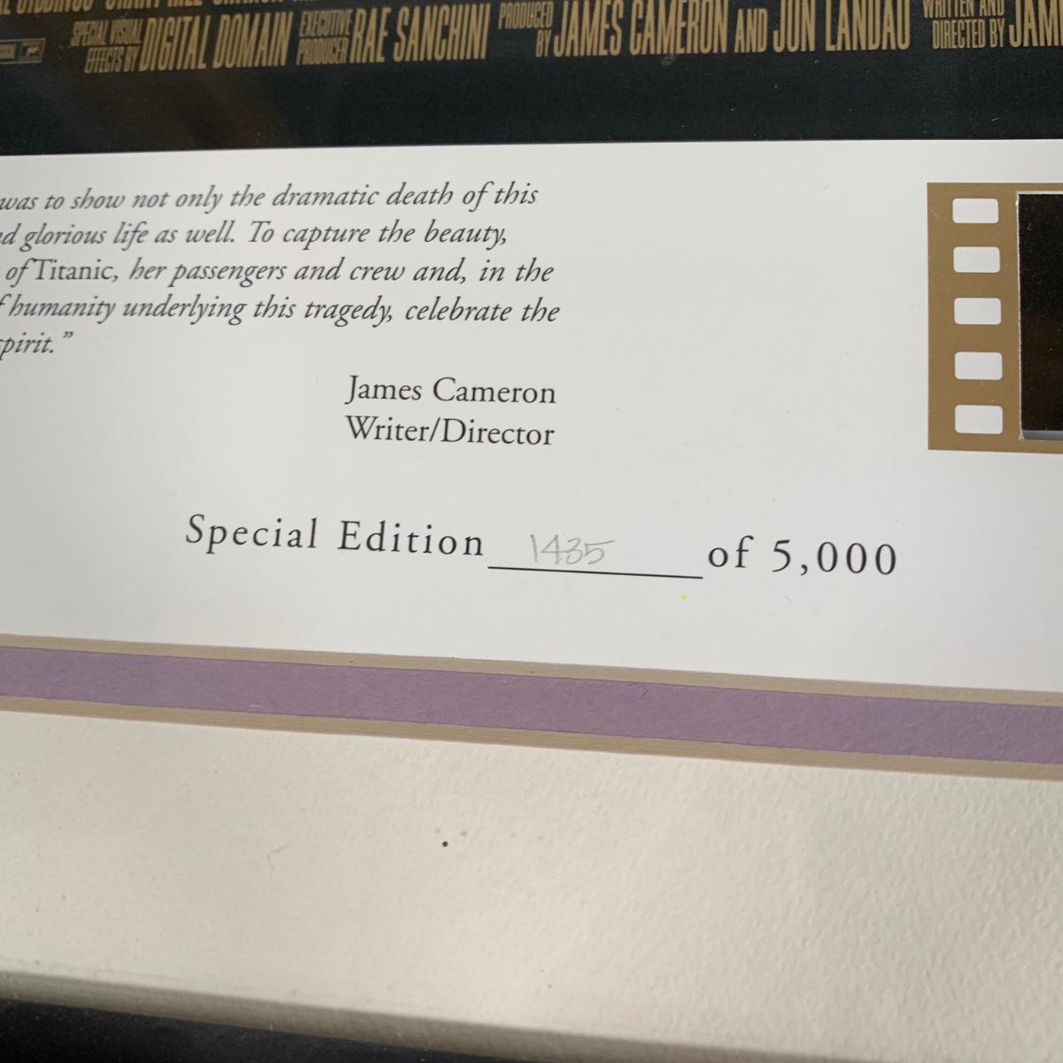LOT 147 A: Framed Limited Edition Numbered 1435/5000 Titanic Lighted Lithograph w/ Film Cell