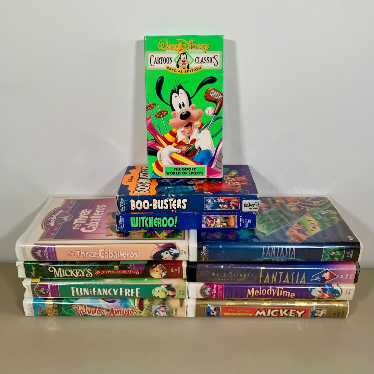 LOT 148 L: Disney VHS Collection; The Three Caballeros, Fantasia, Cartoon Classics Special Edition The Goofy World Of Sports & More