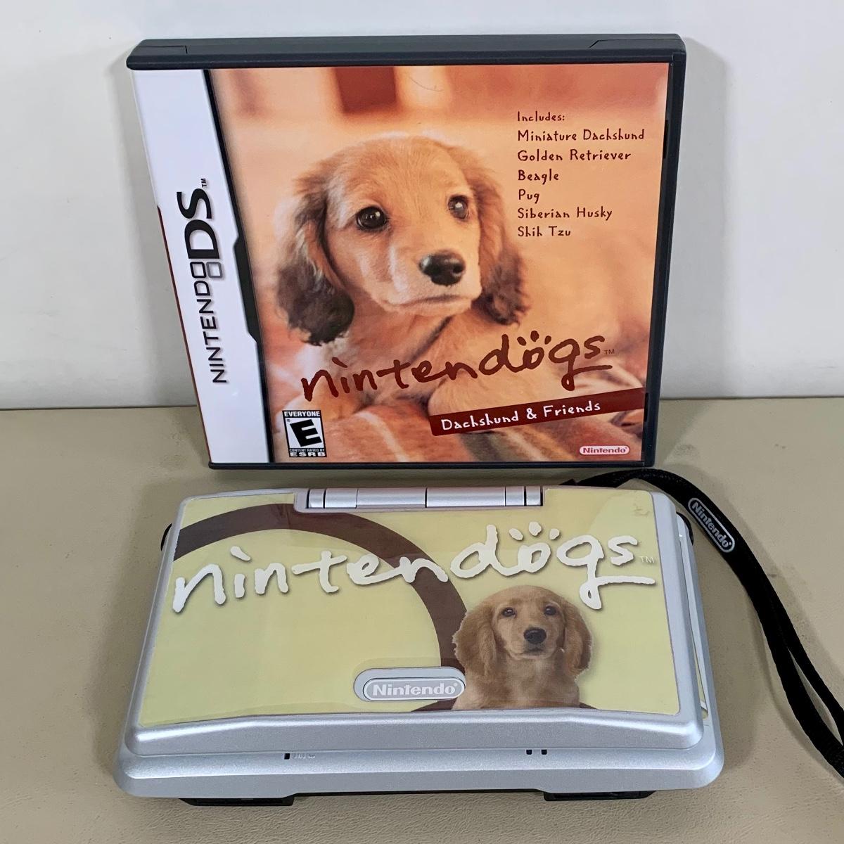 LOT 158 B: 2004 Nintendo DS #NTR-001 w/ Nintendogs Sticker Skins & 2005 Nintendo DS Nintendogs Dachshund & Friends Game