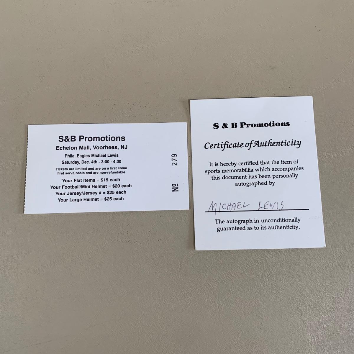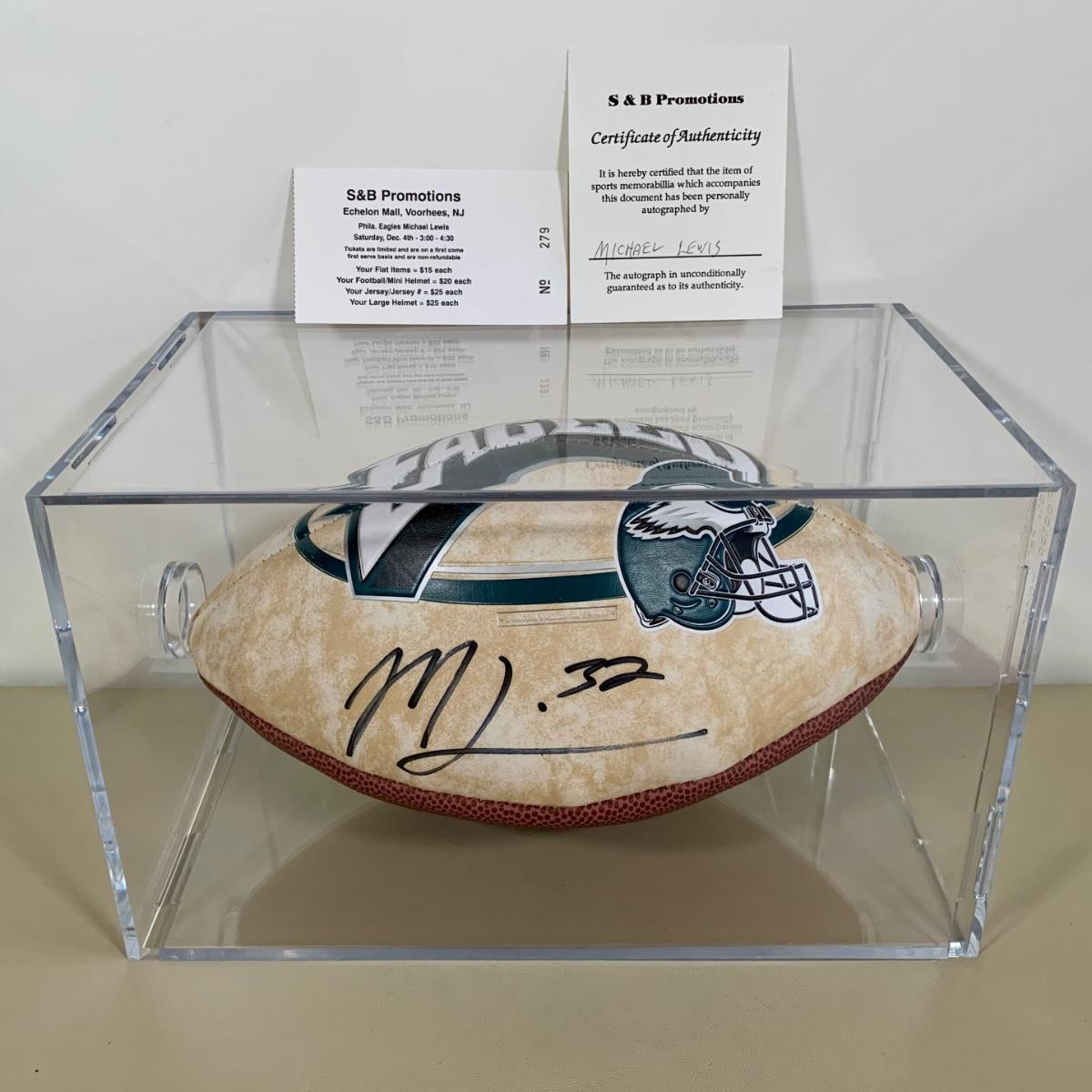 LOT 159 B: NFL Encased Limited Edition Philadelphia Eagles Signed by Michael Lewis Football from S & B Promotions w/ COA