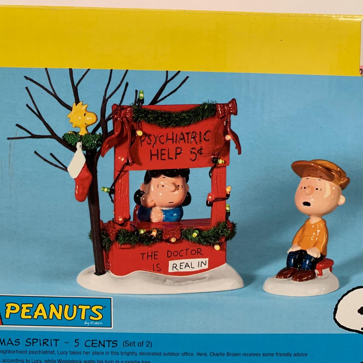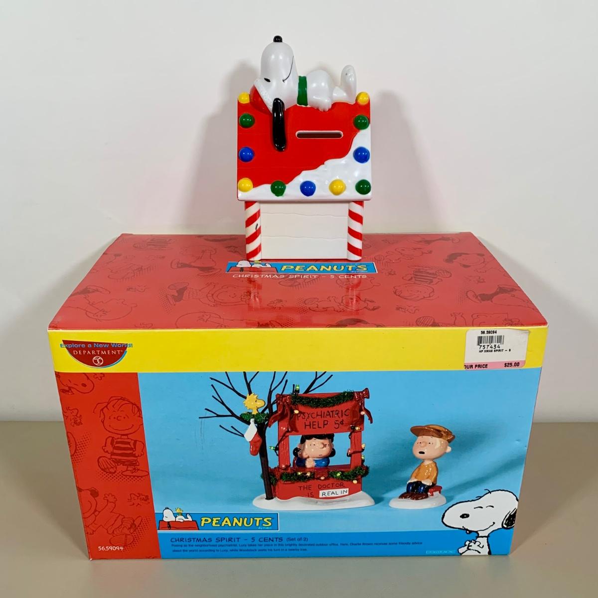 LOT 160 B: NIP 2003 Department 56 Hot Properties Collection Peanuts Christmas Spirit - 5 Cents & Whitman's Candies Peanuts Snoopy Plastic Coin Bank