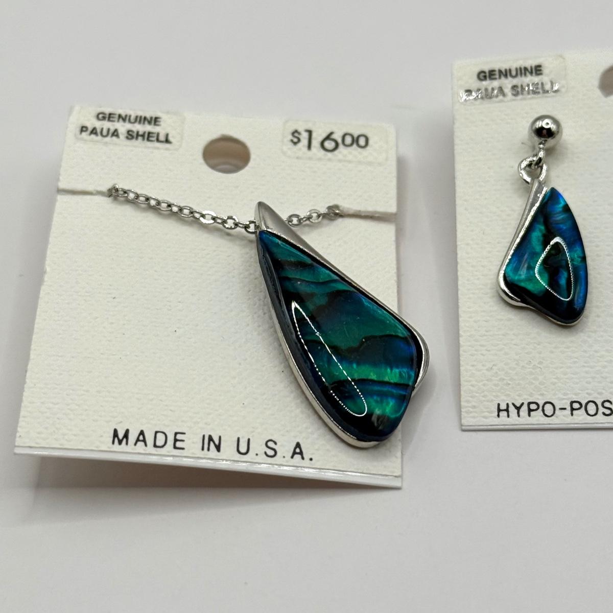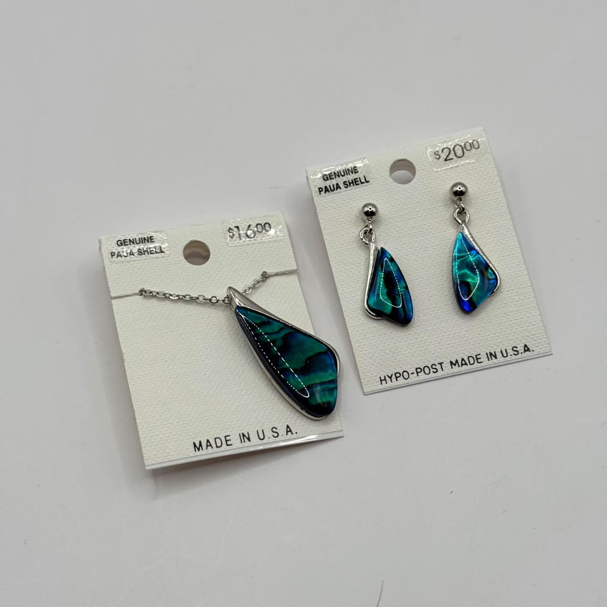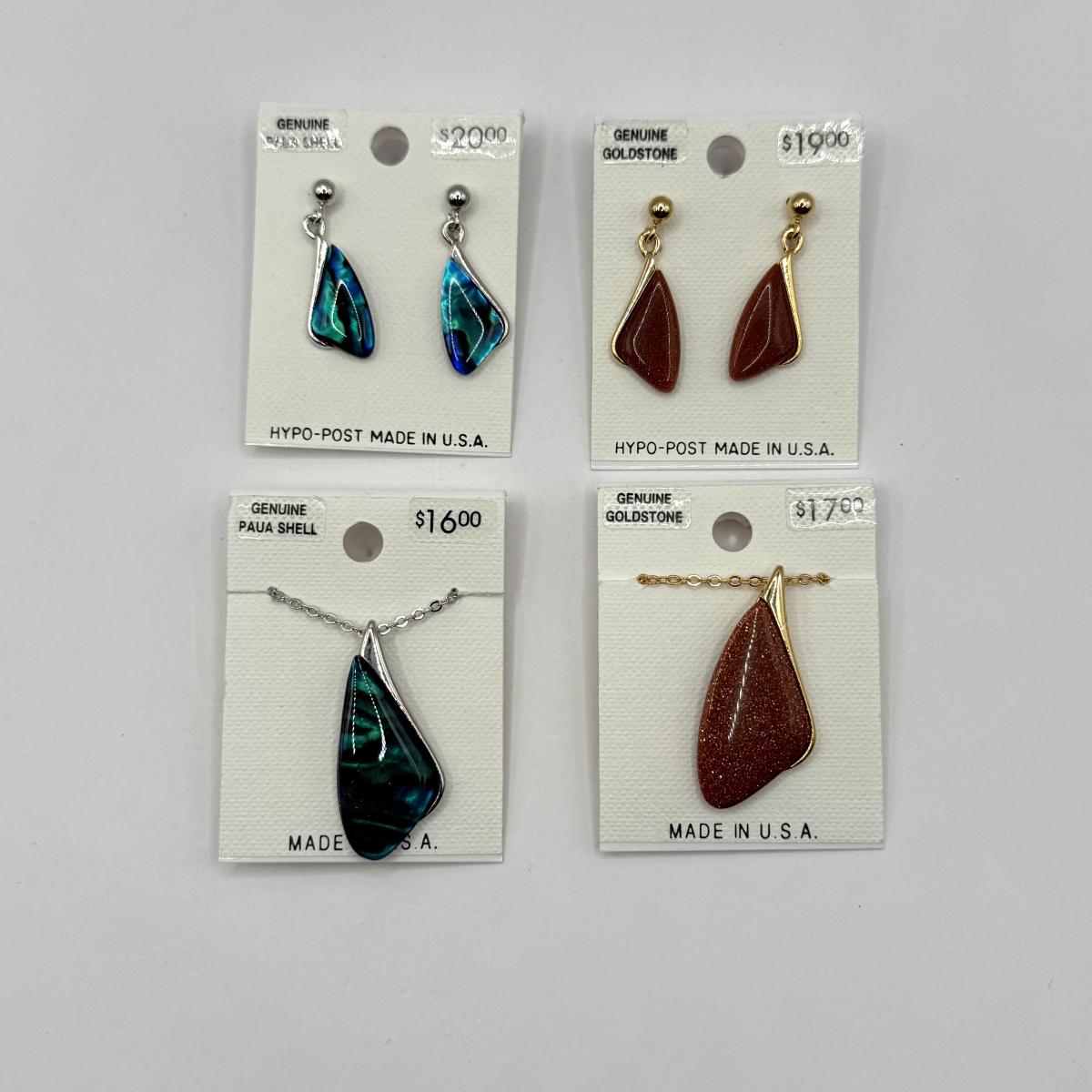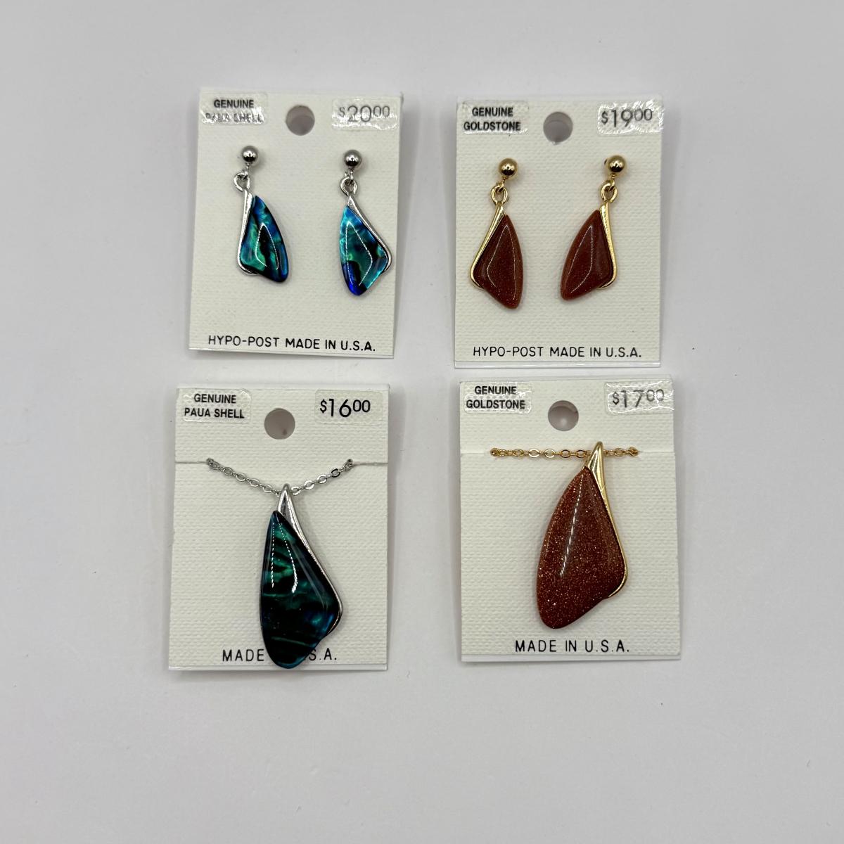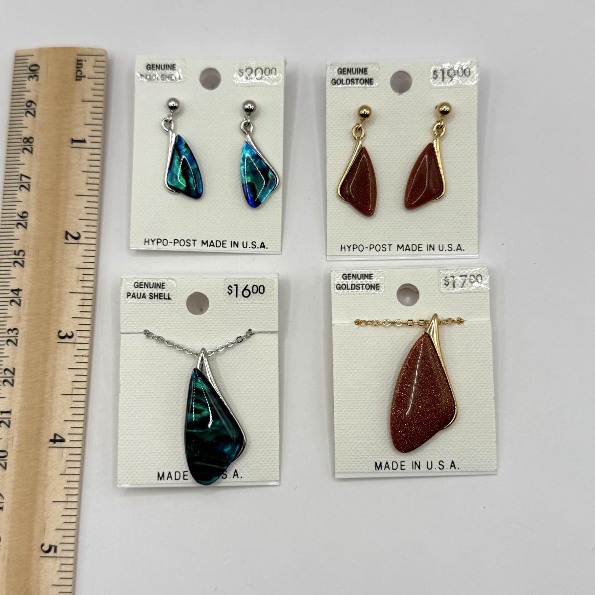 LOT 193J: Matching Necklaces & Earrings NWT: Paua Shell & Goldstone