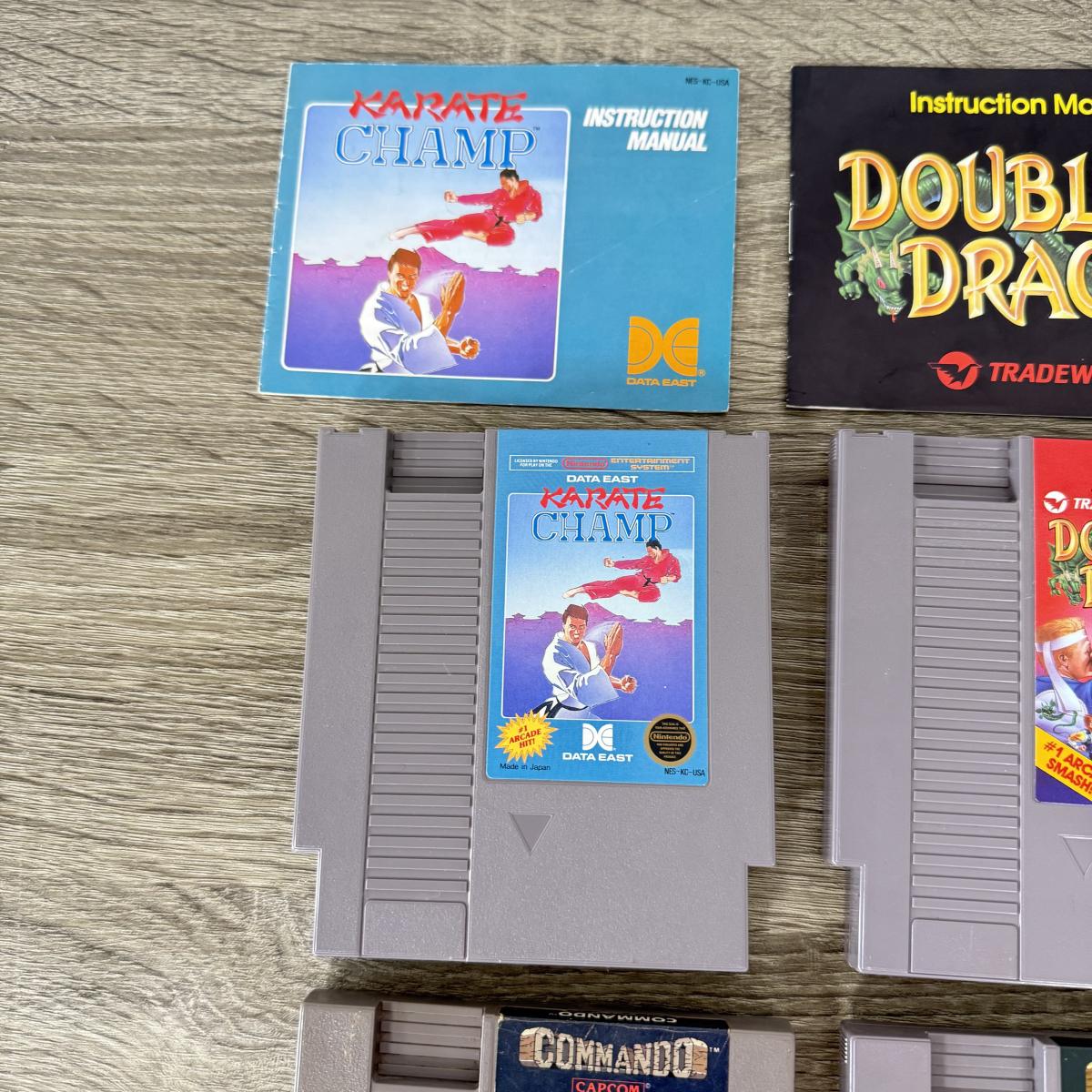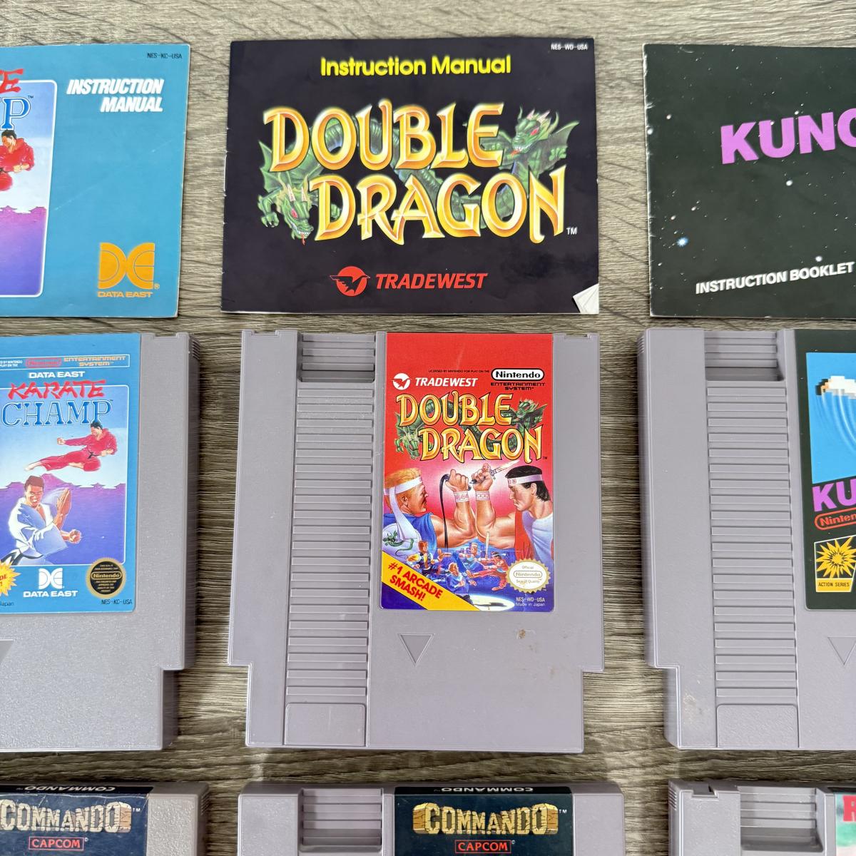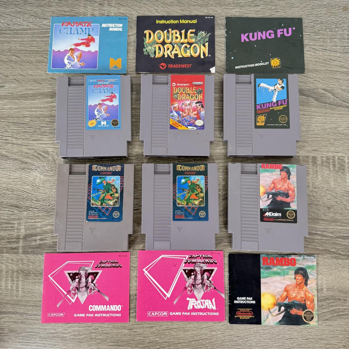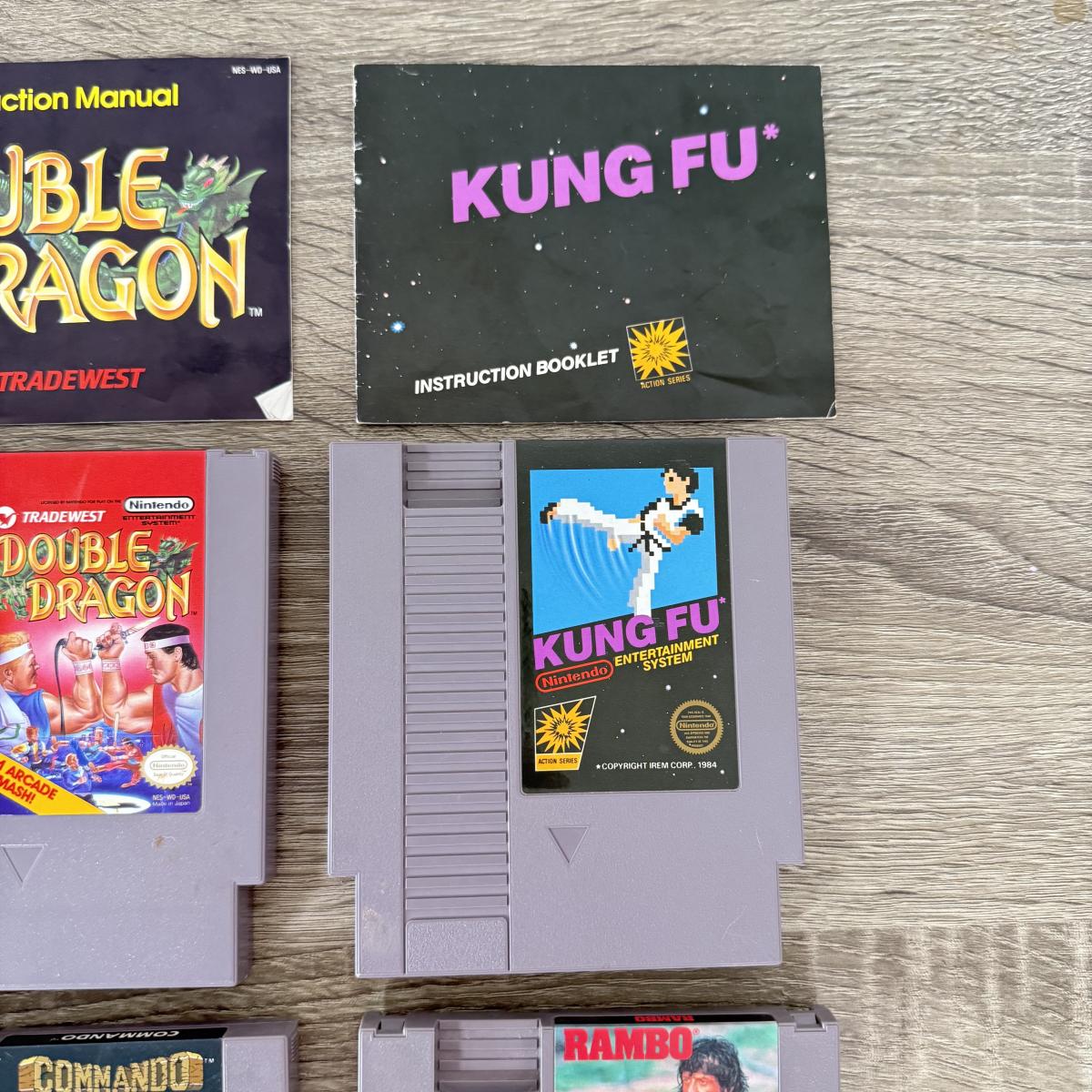 LOT 212B: Nintendo Entertainment System NES Video Game Cartridges: Double Dragon, Kung Fu, Karate Champ, Rambo & Commando