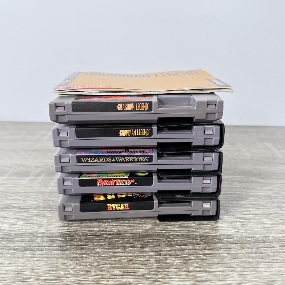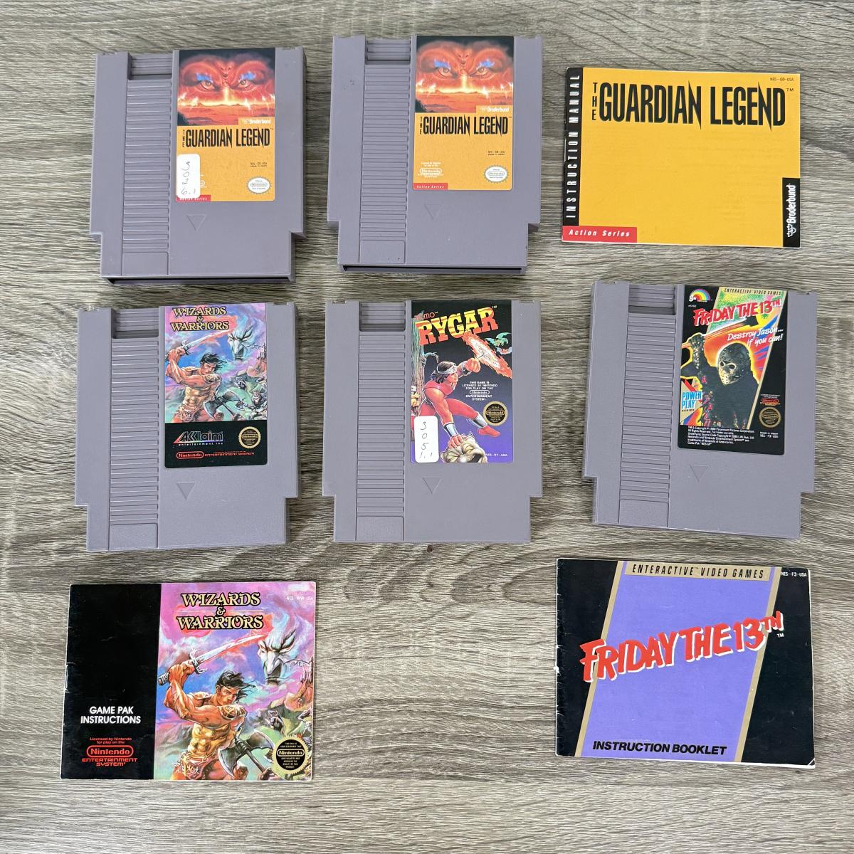 LOT 215B: Nintendo Entertainment System NES Video Game Cartridges: The Guardian Legend, Wizards & Warriors, Friday the 13th & Rygar