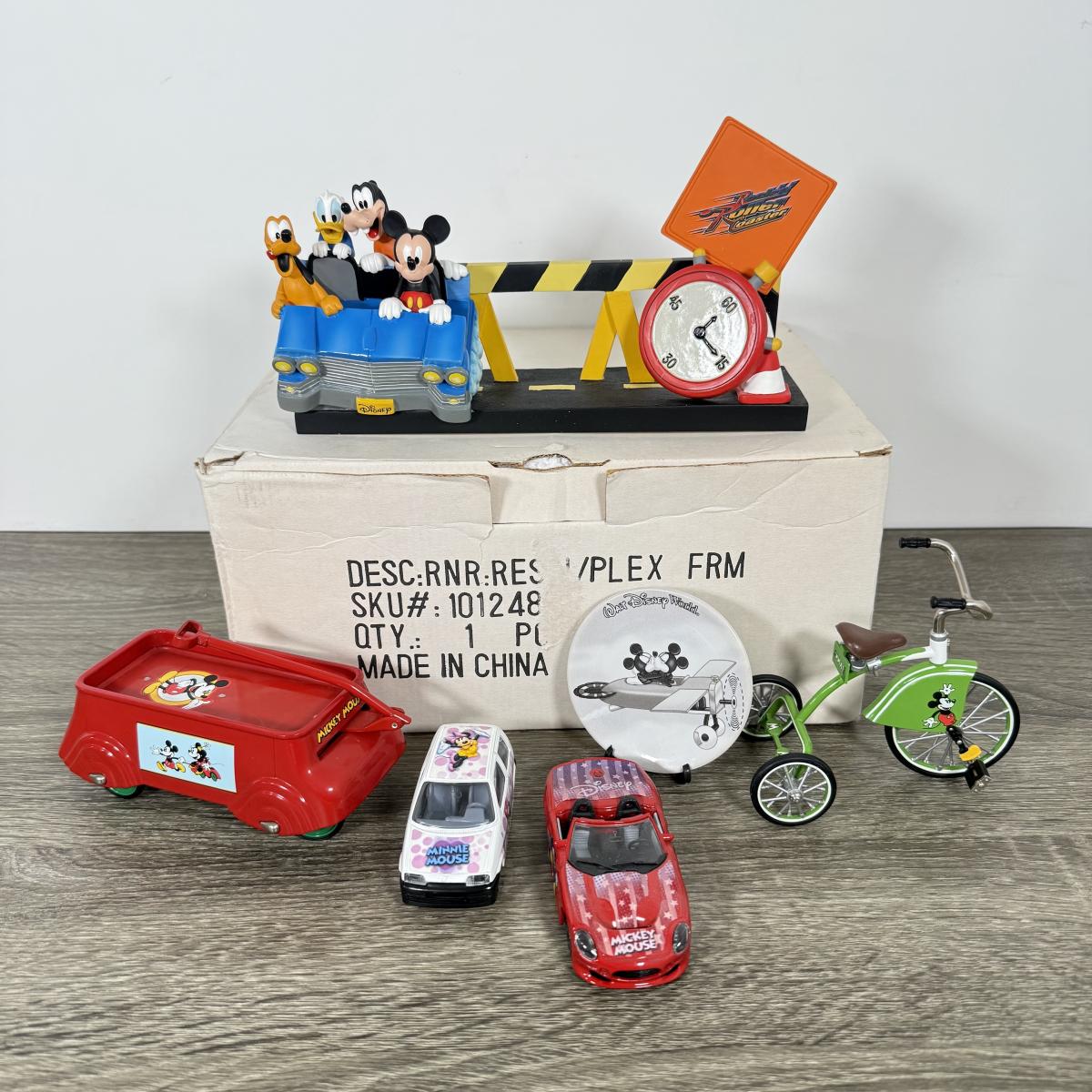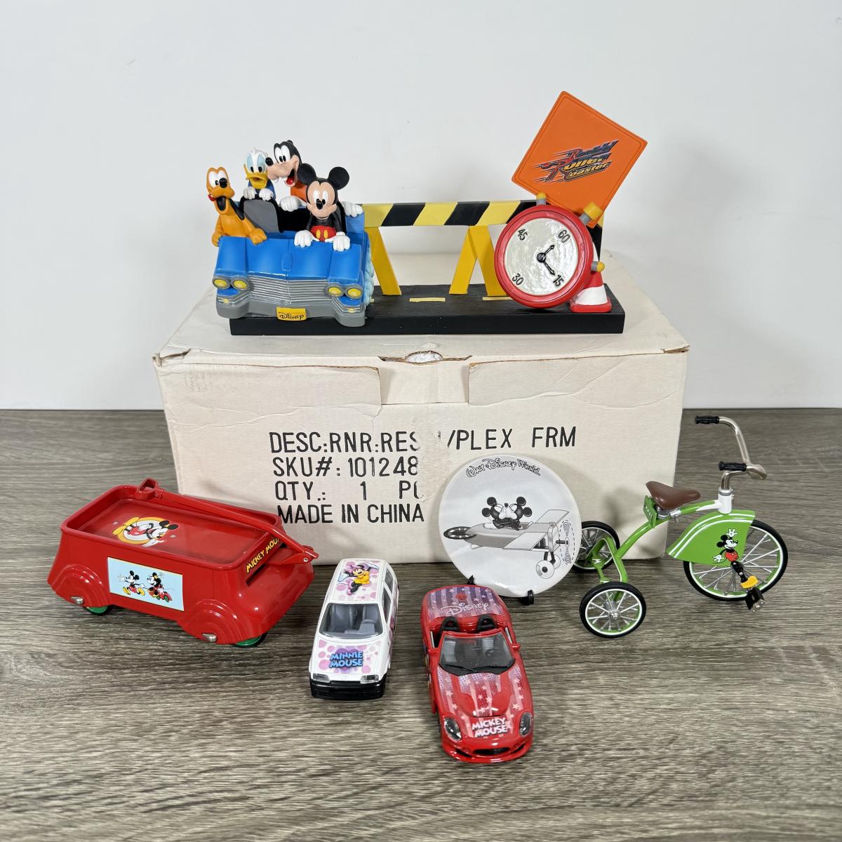 LOT 229B: Disney World Rock 'n Roller Coaster Standee, Hallmark Kiddie Car Classics: 1934 Mickey Mouse Velocipede & 1937 Mickey Mouse Streamline Express Coaster Wagon #9950/24500
