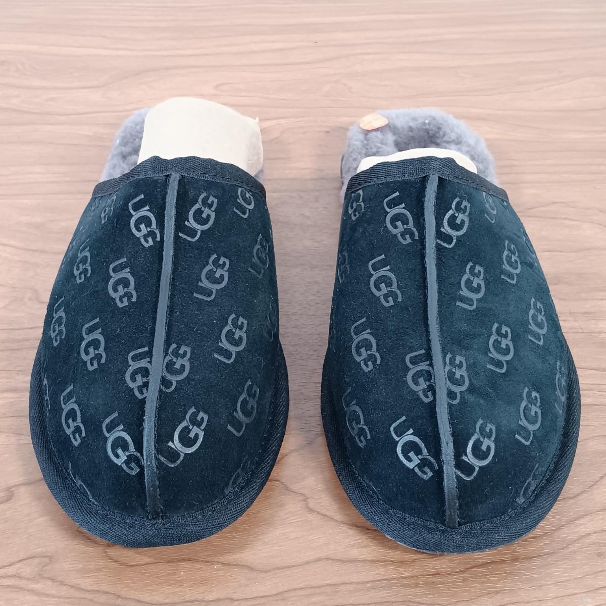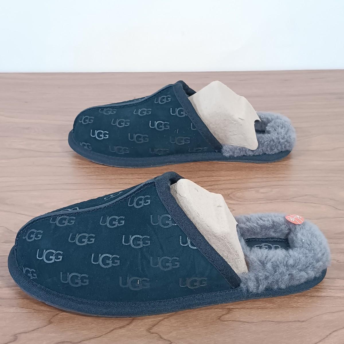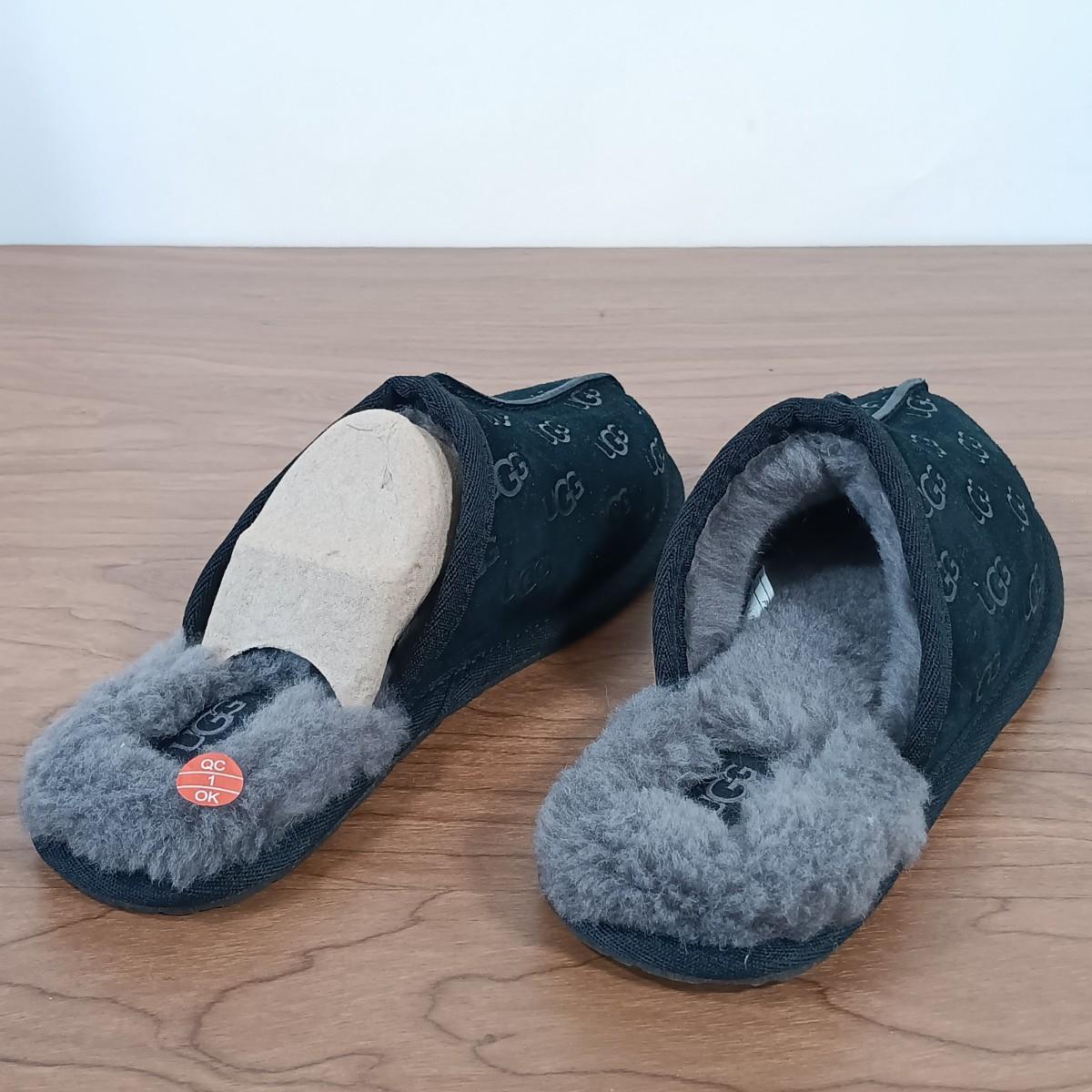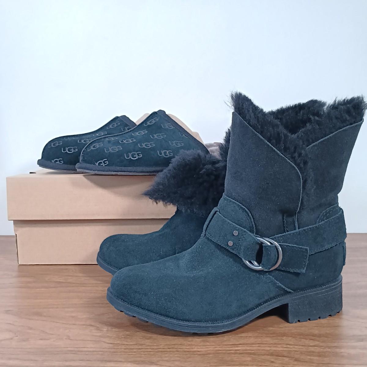 LOT 249B: UGG Pearle Embossed Logo Slippers Sz 7 & UGG Bodie Black Suede Boots Sz 7.5