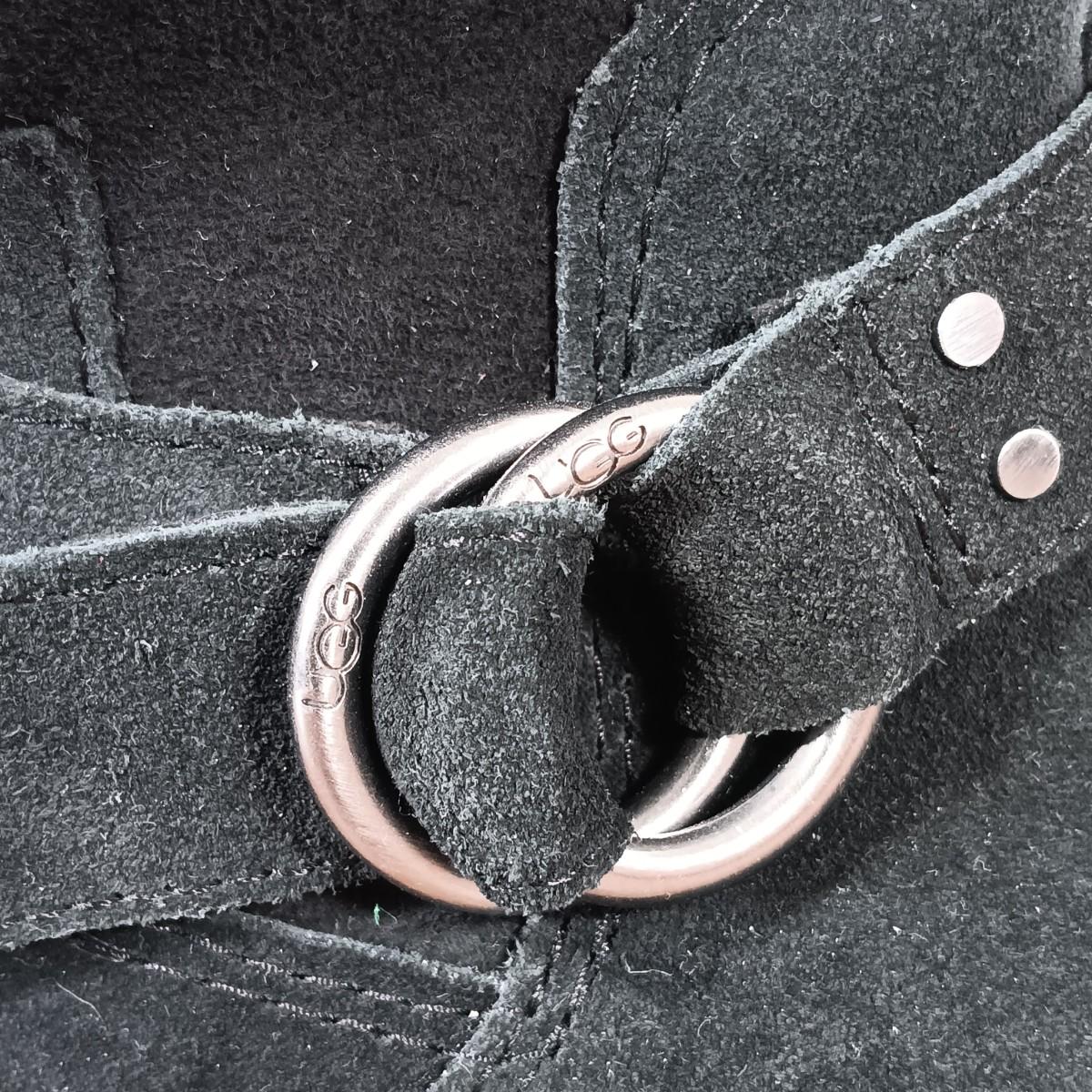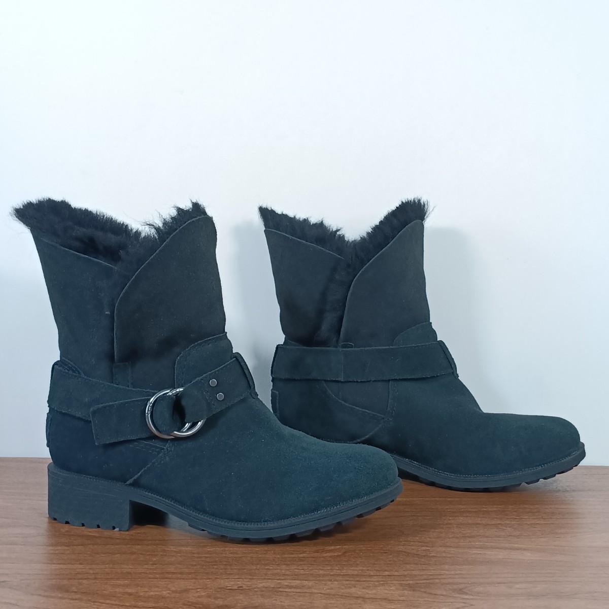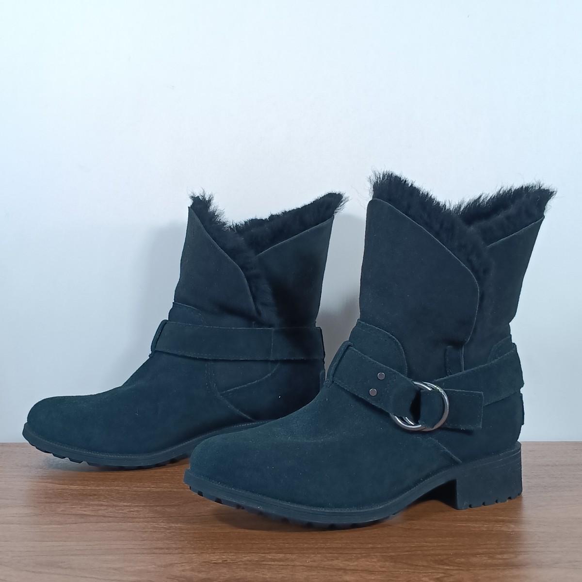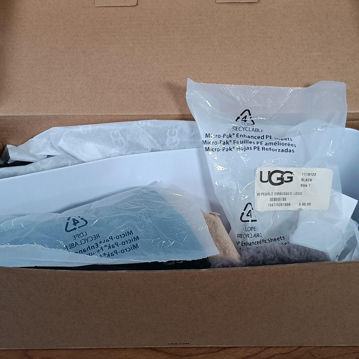 LOT 249B: UGG Pearle Embossed Logo Slippers Sz 7 & UGG Bodie Black Suede Boots Sz 7.5