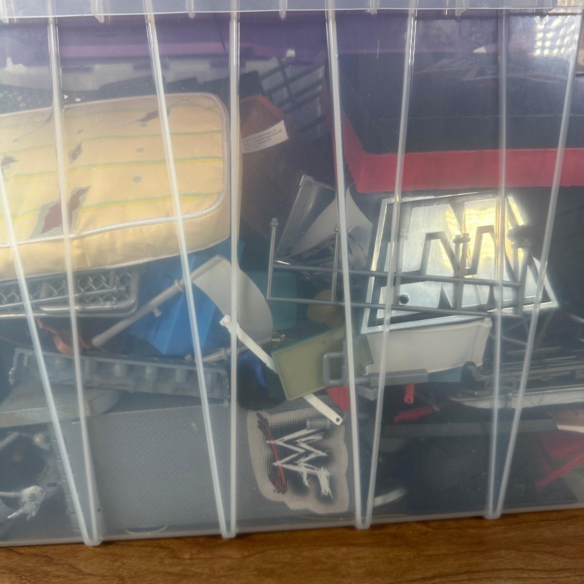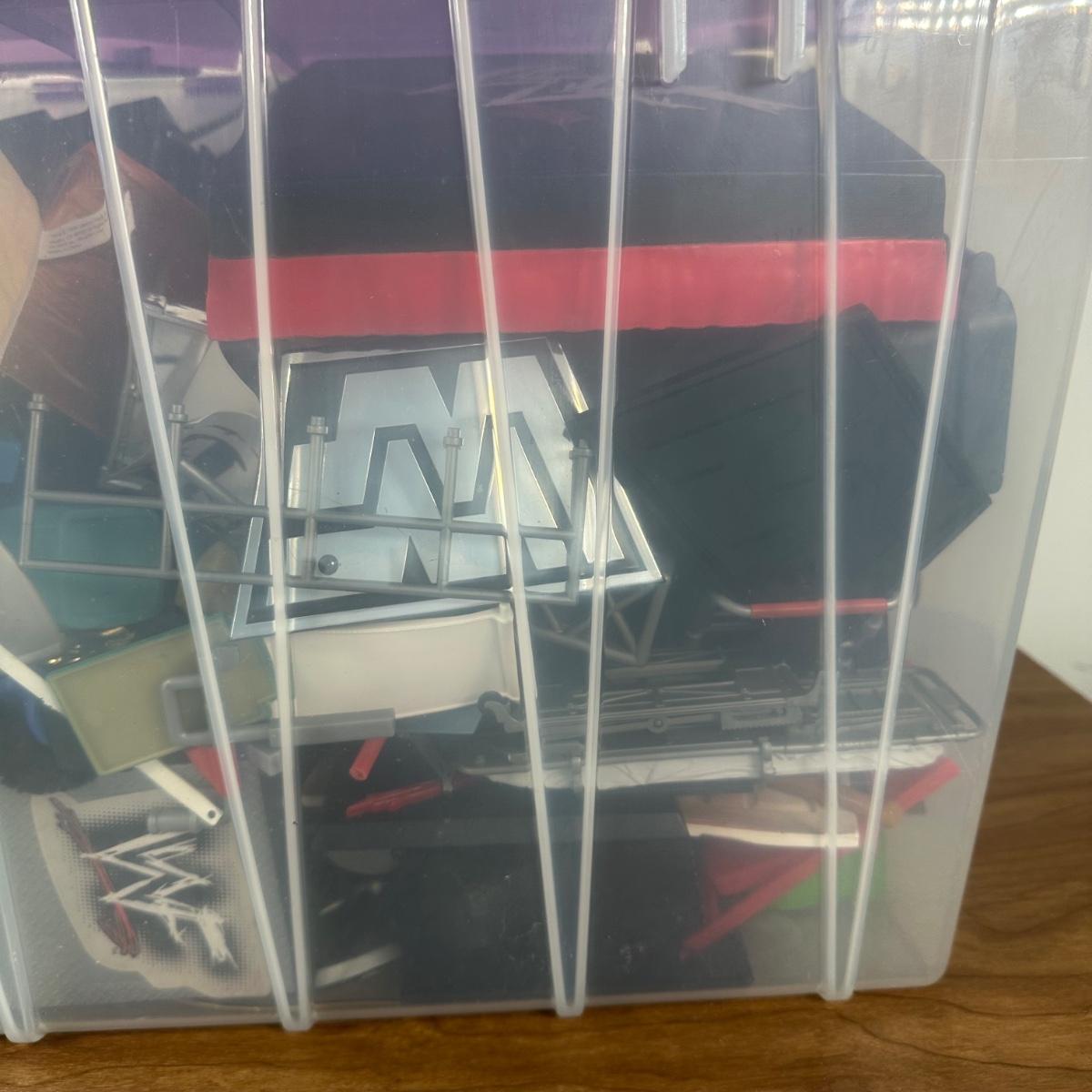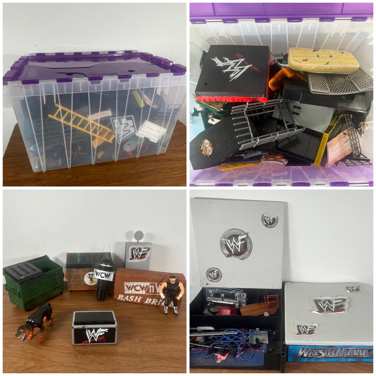 LOT 266A: WWF Toy Arena Pieces, Props, Accessories & More - One Tote of Wrestling Toys