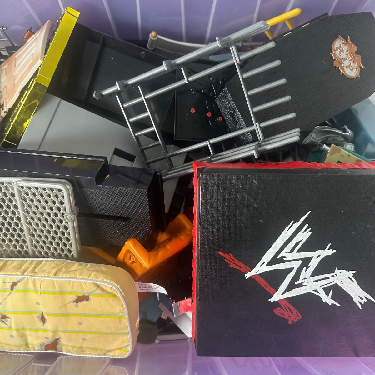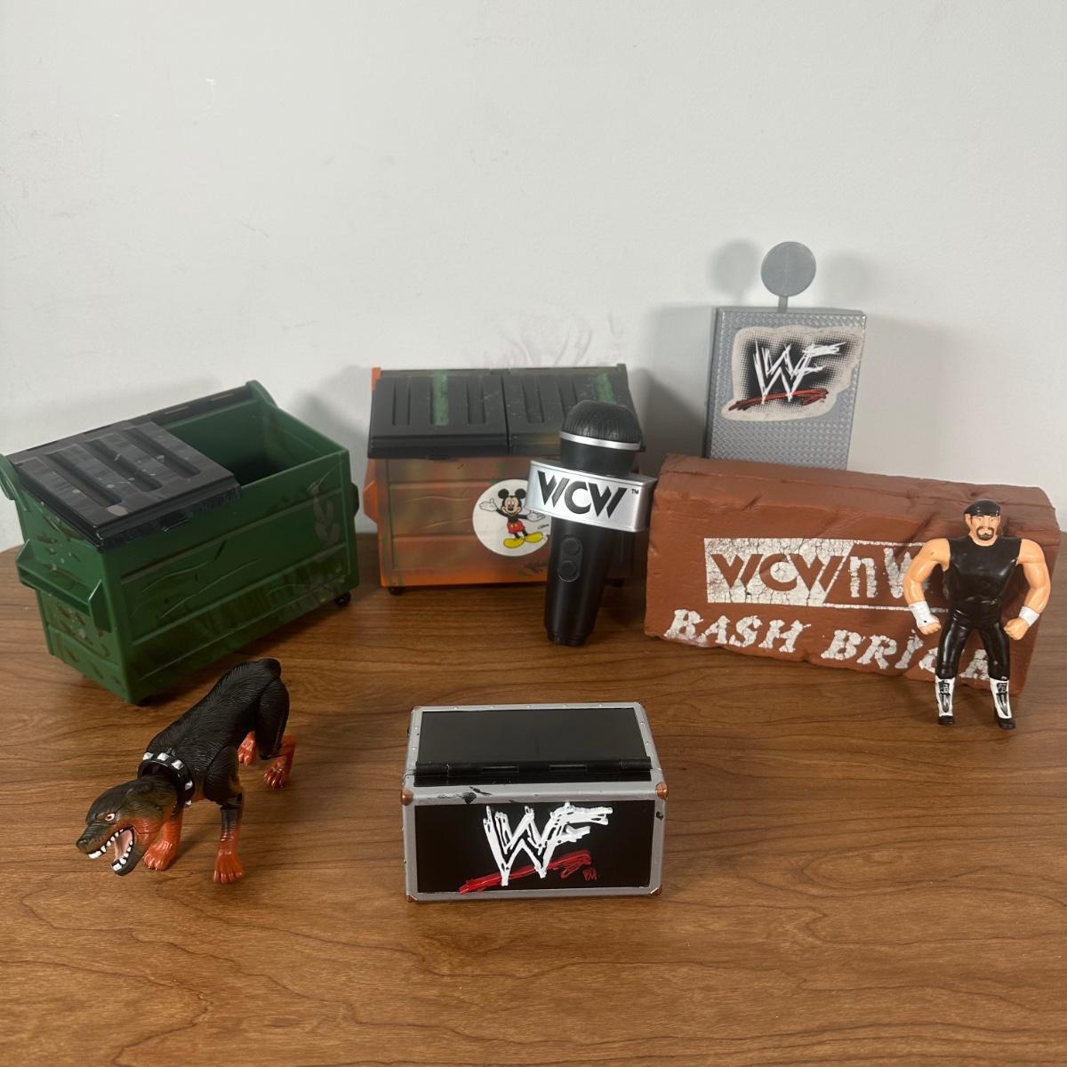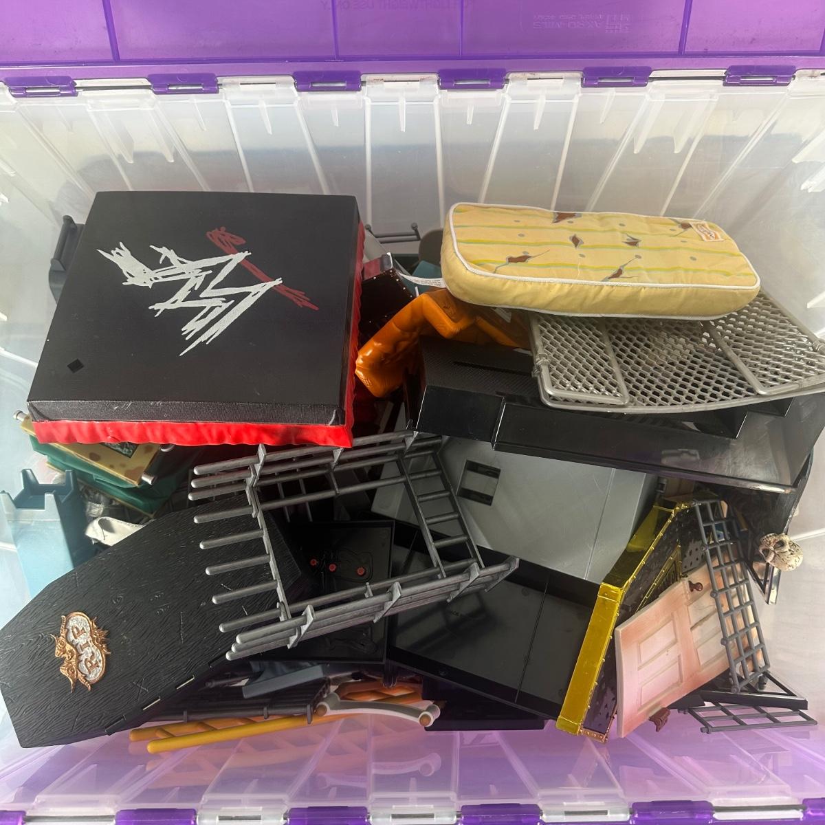 LOT 266A: WWF Toy Arena Pieces, Props, Accessories & More - One Tote of Wrestling Toys