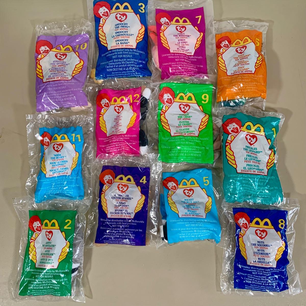 LOT 283 B: NIP McDonalds TY Teenie Beanie Babies Collection; Smoochy The Frog, Claude The Crab, Antsy The Anteater, & More