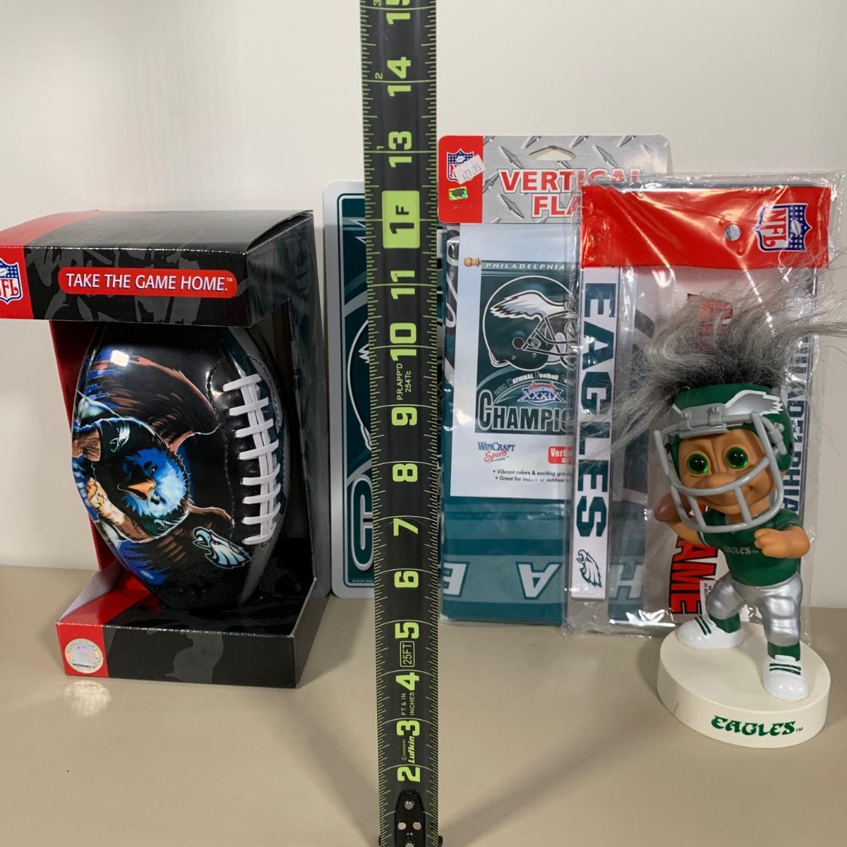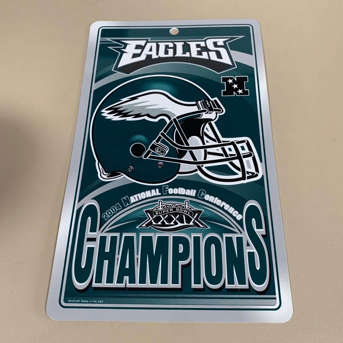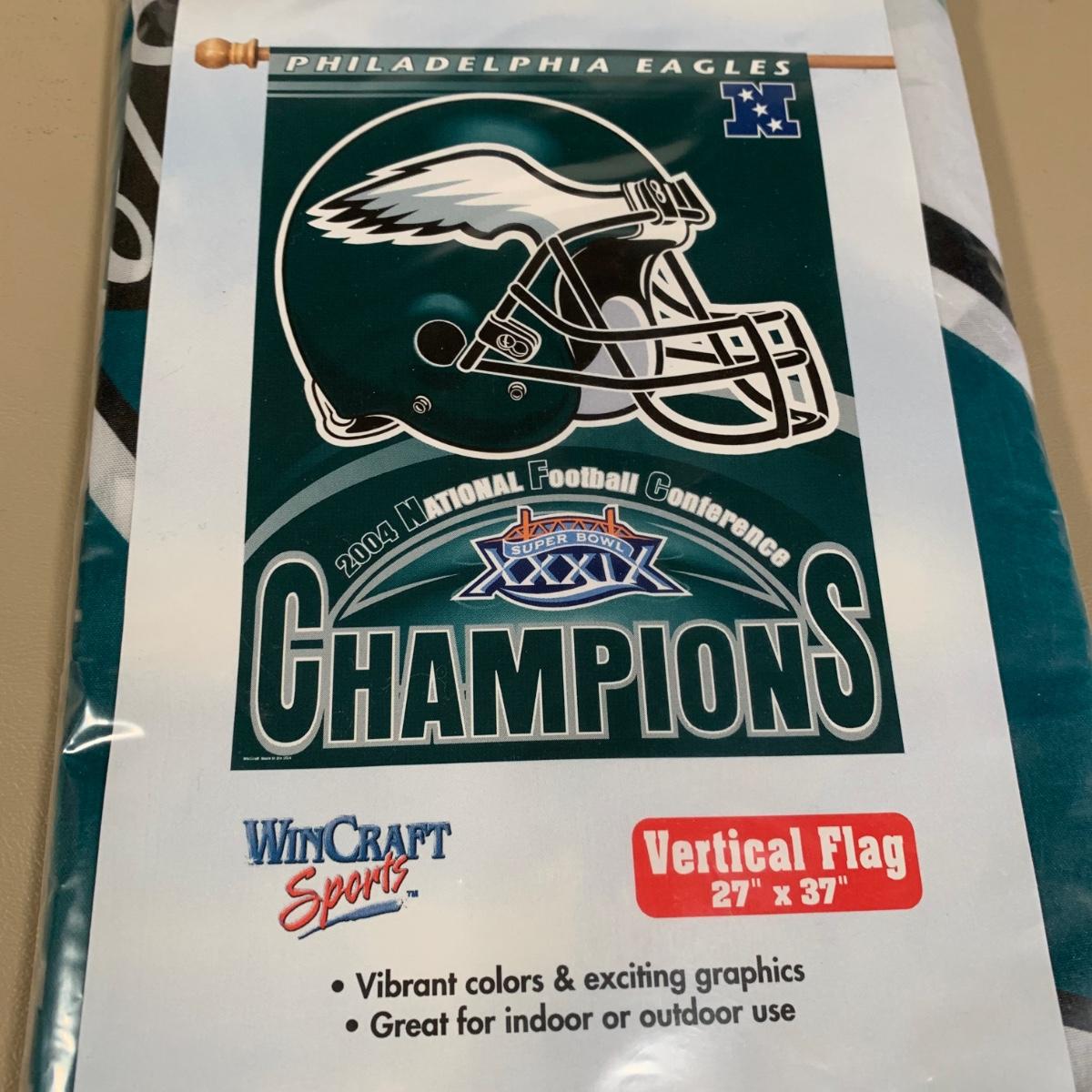 LOT 284 B: NIP & NWT NFL Philadelphia Eagles Fandom Collection; Embroidered 2XL Sweatshirt, Wincraft Sports 2004 NFC Champions Vertical Flag, & More