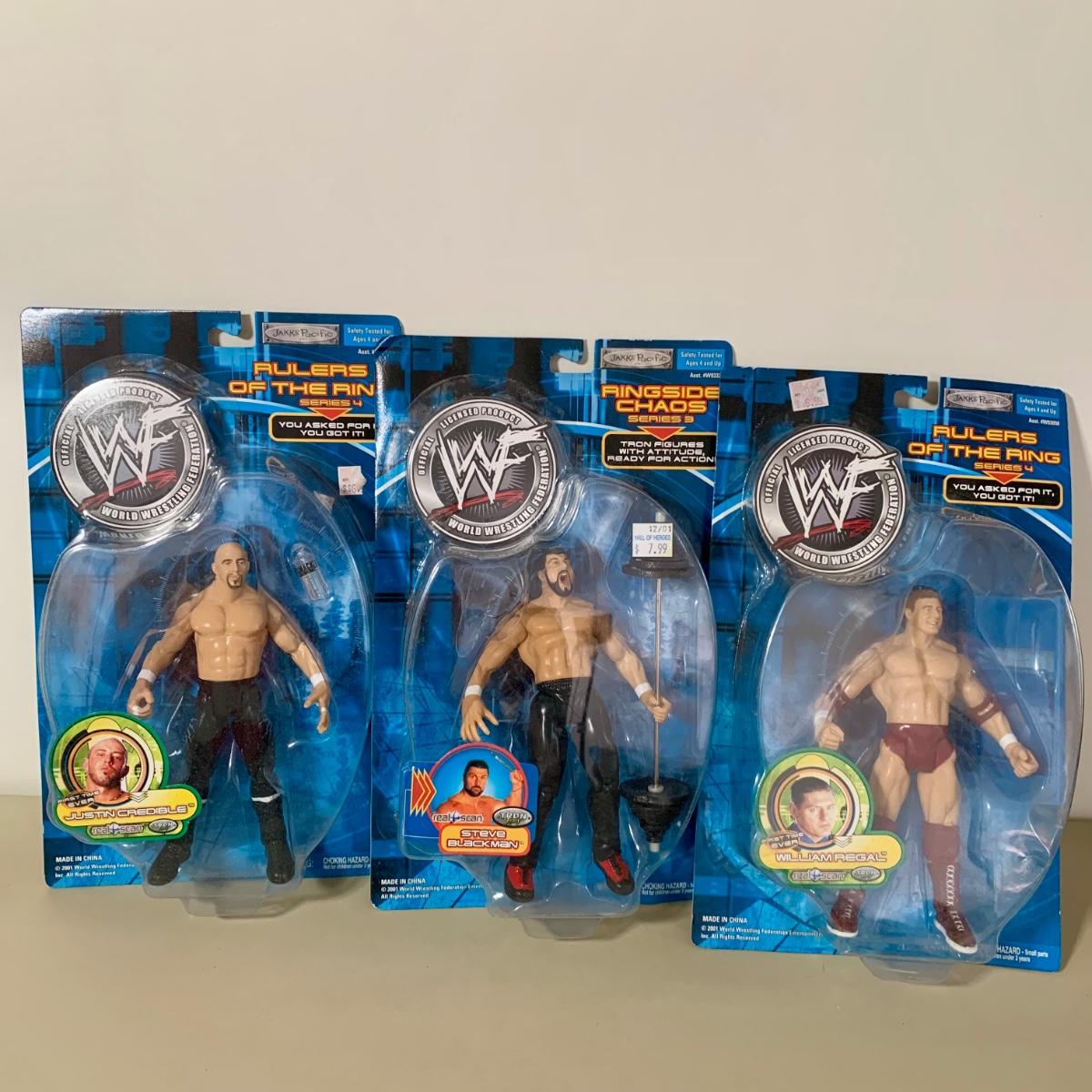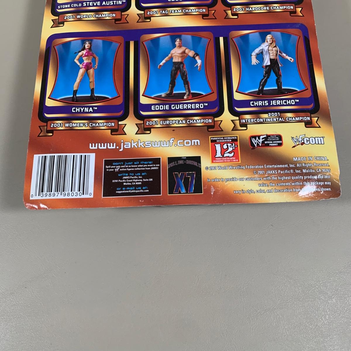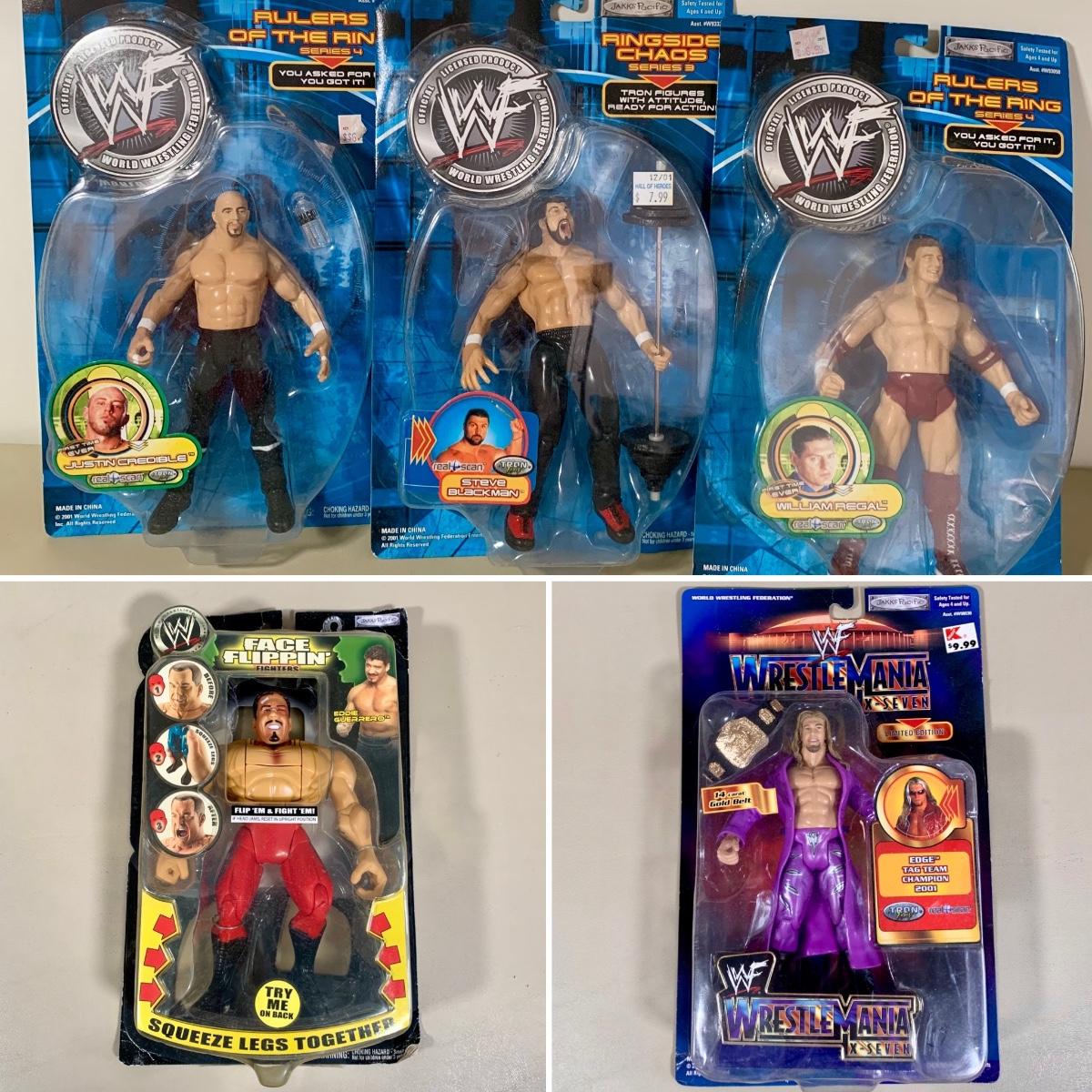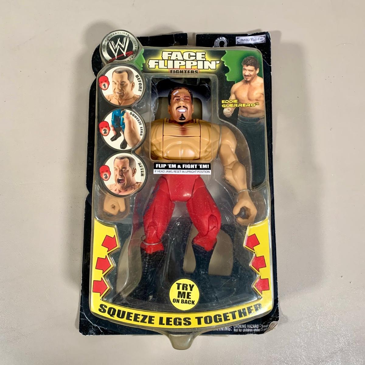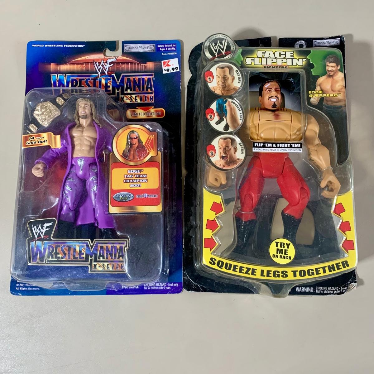 LOT 285 B: NIP Jakks Pacific Inc. WWE & WWF Action Figure Collection; Face Flippin' Fighters Eddie Guerrero, Wrestle Mania X-Seven Limited Edition Edge, & More