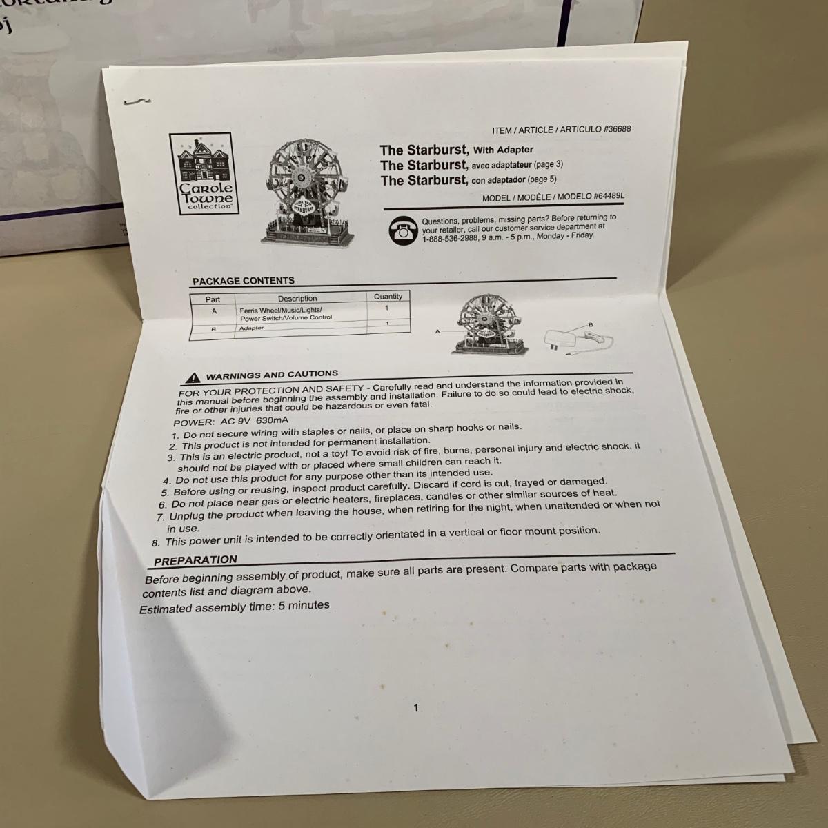 LOT 287 B: NIP 2006 Lemax Carole Towne Collection Animated The Starburst Ferris Wheel #64489L