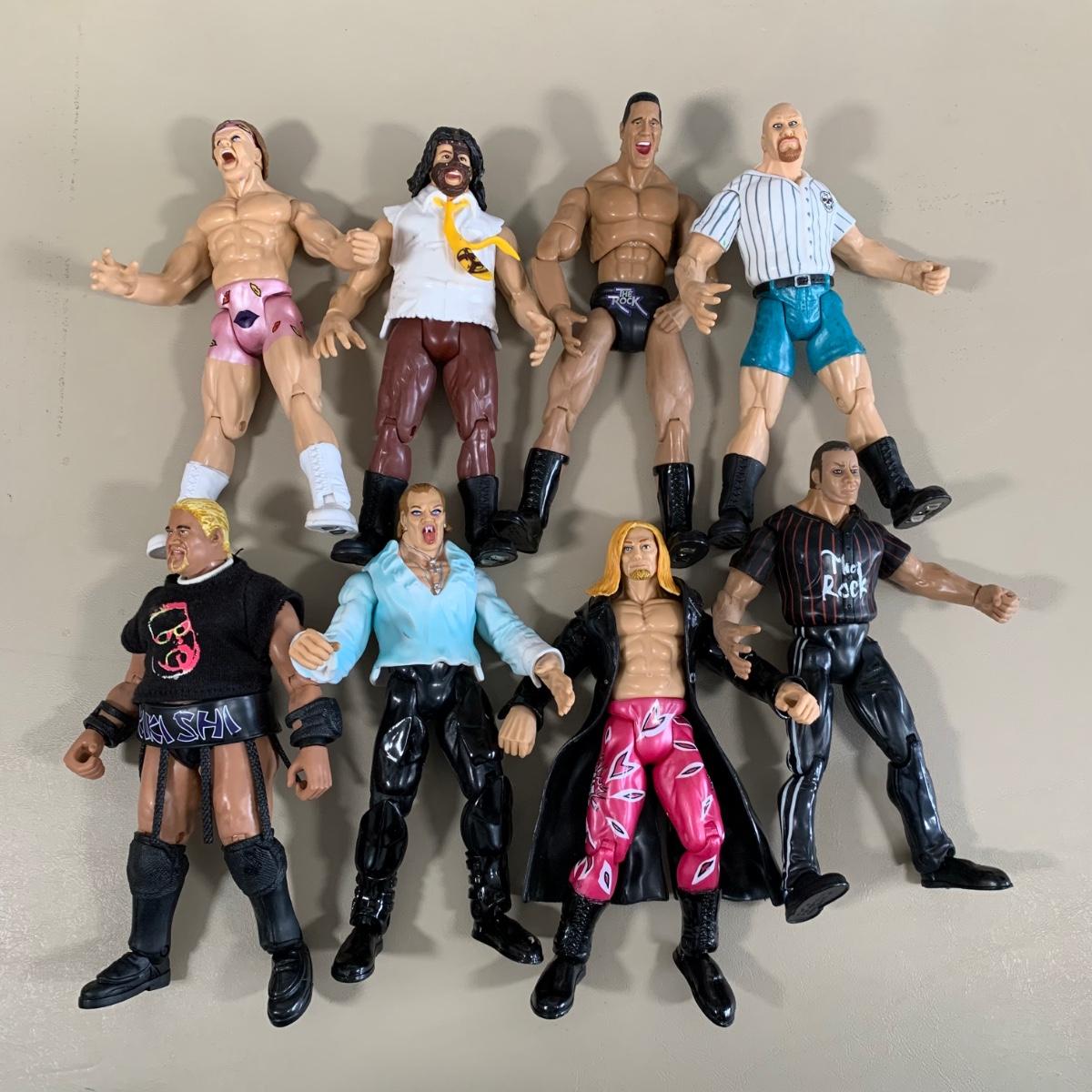LOT 297 L: Large Collection of WCW Action Figures: Dwayne "The Rock" Johnson, Stone Cold Steve Austin, & More