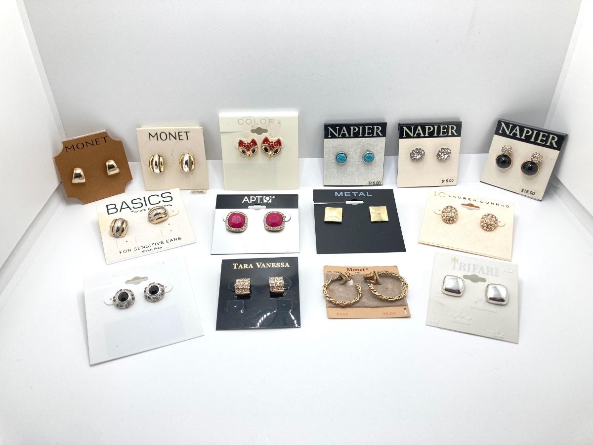 LOT 231: Fourteen Pair of Pierced Earrings - Napier, Monet, Trifari and More