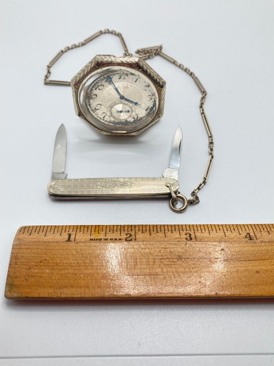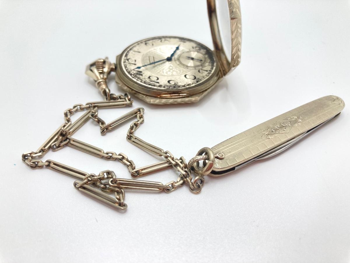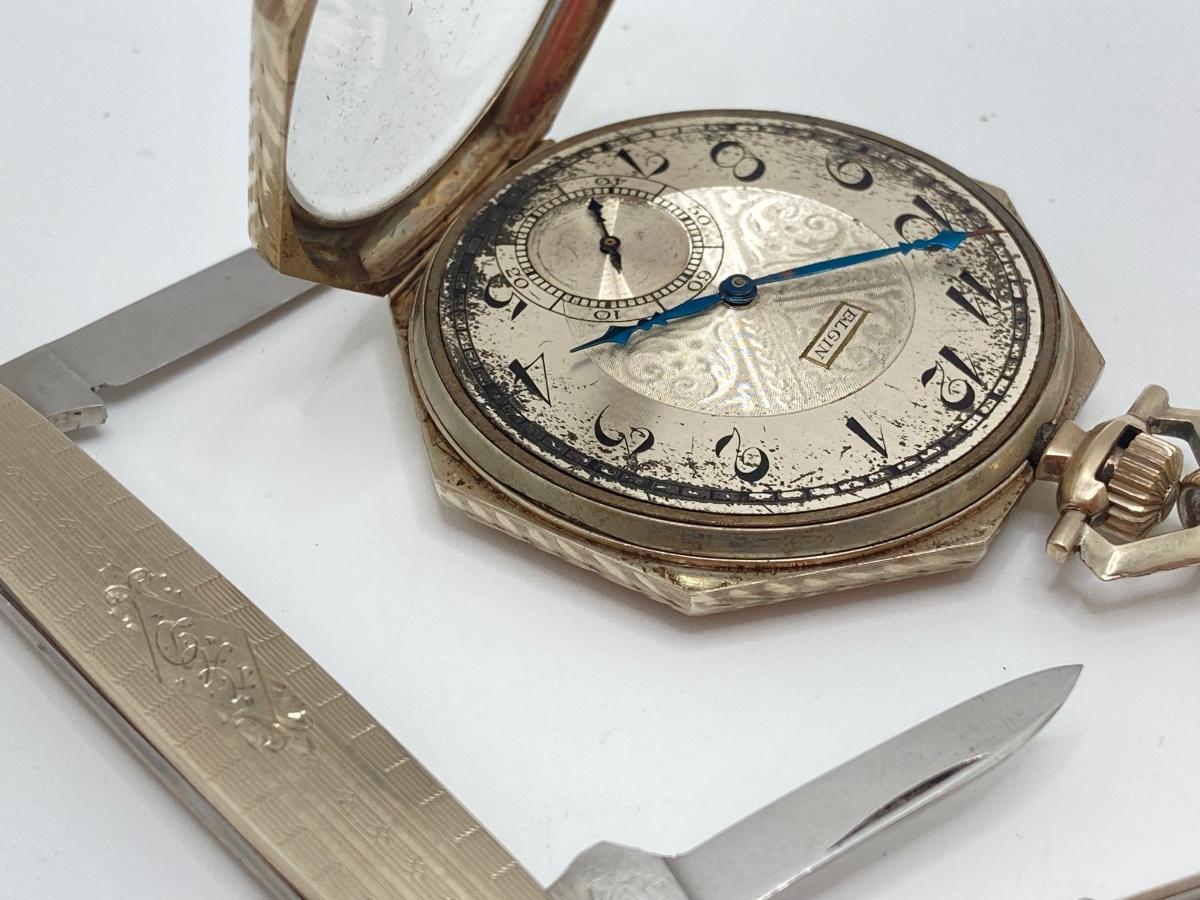 LOT 241: Vintage Engraved Elgin Pocket Watch with Pocket Knife