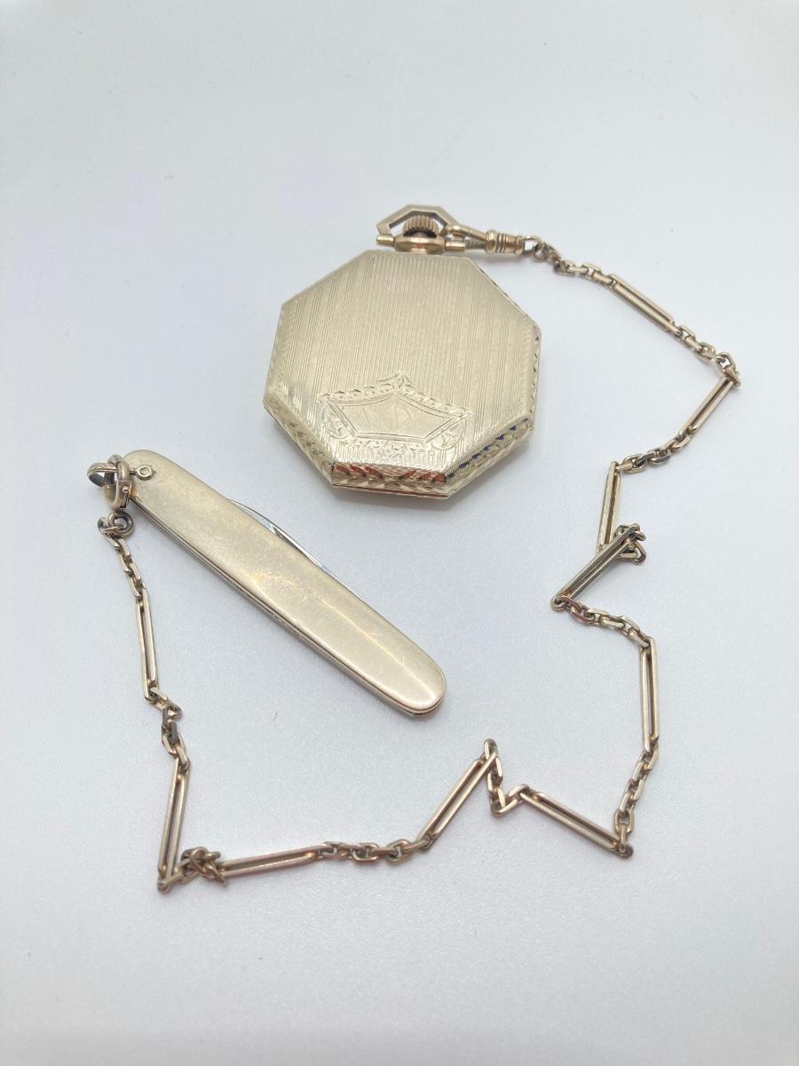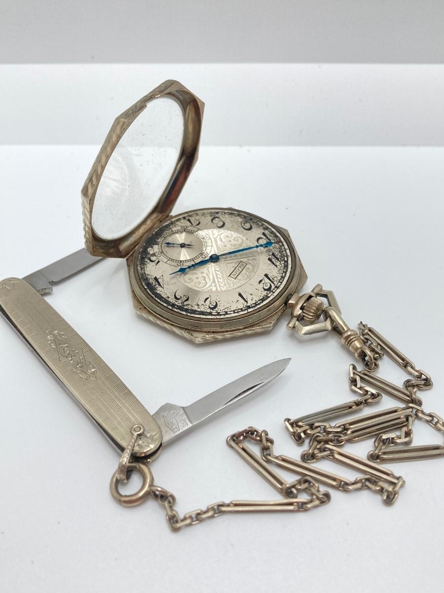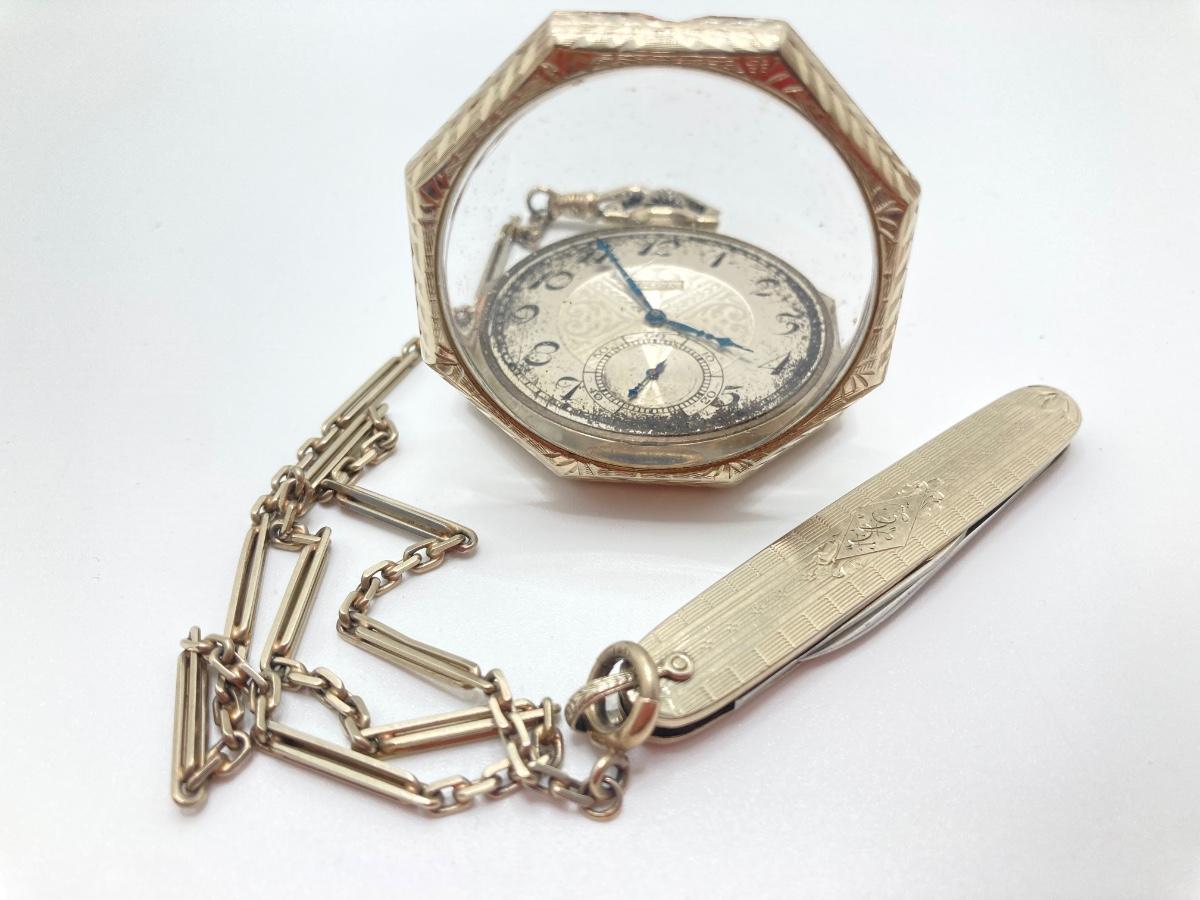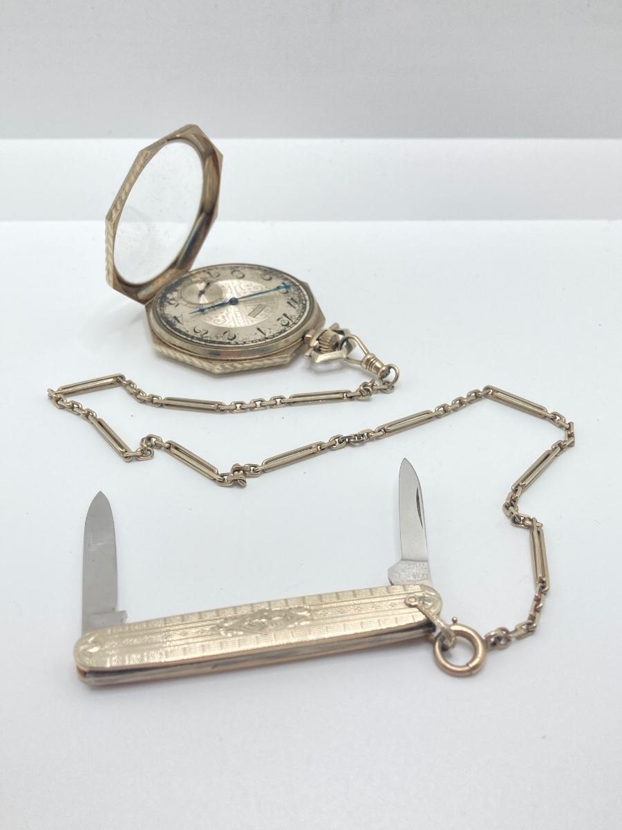 LOT 241: Vintage Engraved Elgin Pocket Watch with Pocket Knife