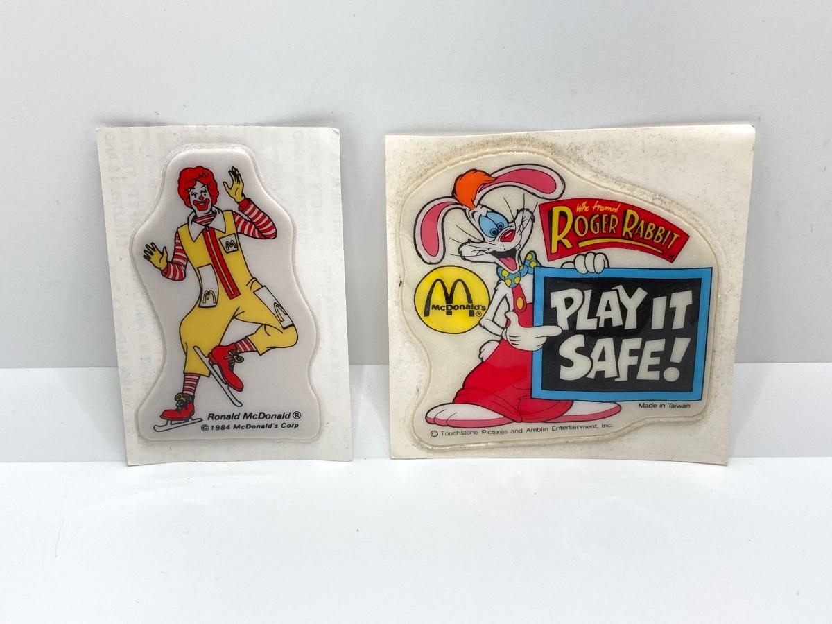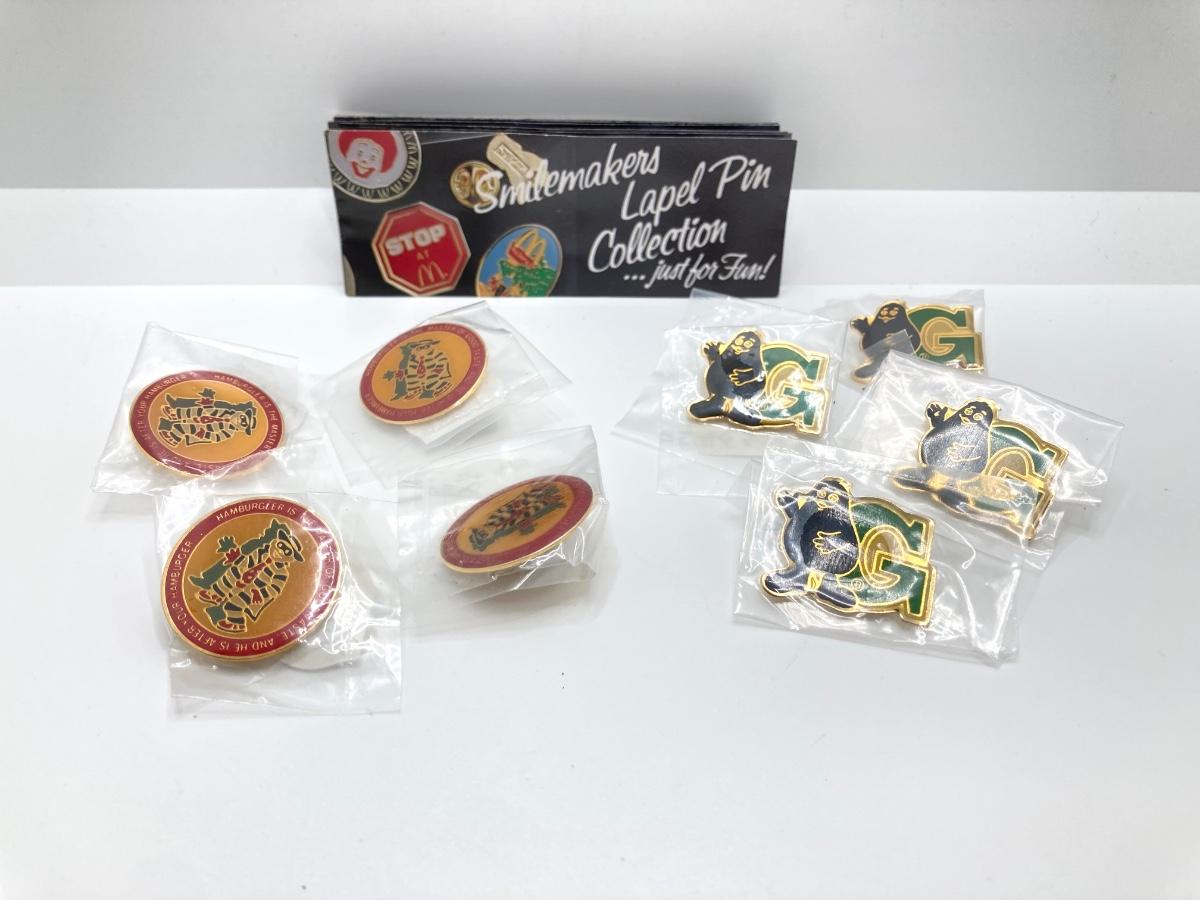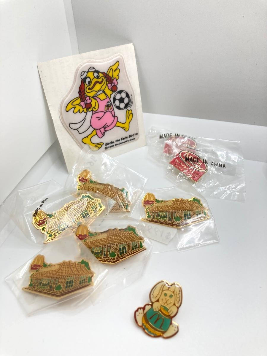LOT 242: Large Vintage McDonald's Memorabilia Collection - Ronald McDonald Watch in Package, Pins, Stickers, Magnetics,