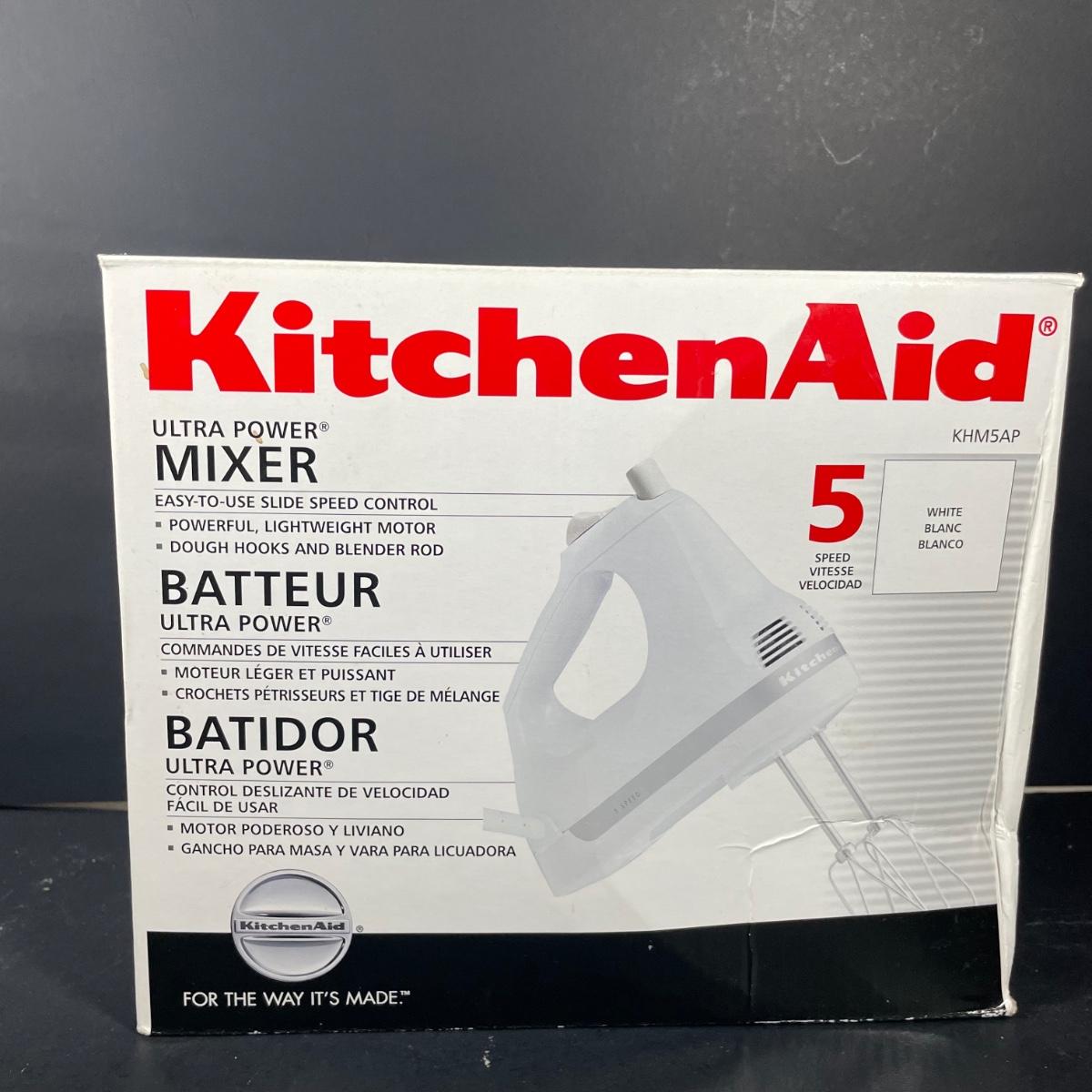 LOT::245: Kitchen Aid kHM5AP Ultra Power Mixer 5 Speed White (untested), Nonin's Biscotti Jar, Glass Bake & Pyrex Measuring Cups