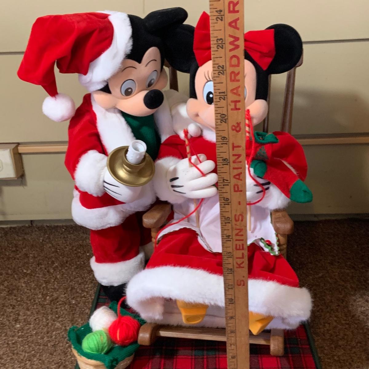LOT 250: Disney's Mickey Claus and Minnie Rocking and Knitting Telco Motionette Animated Holdiay Figures