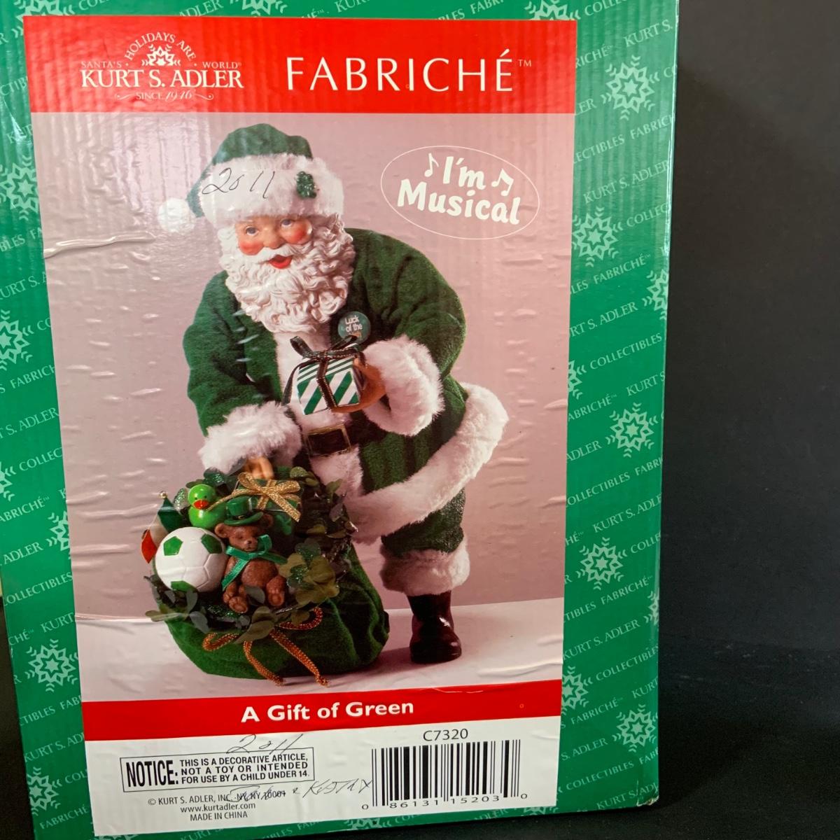 LOT 255: Kurt Adler Green Irish Santa Caus and 2 Santas