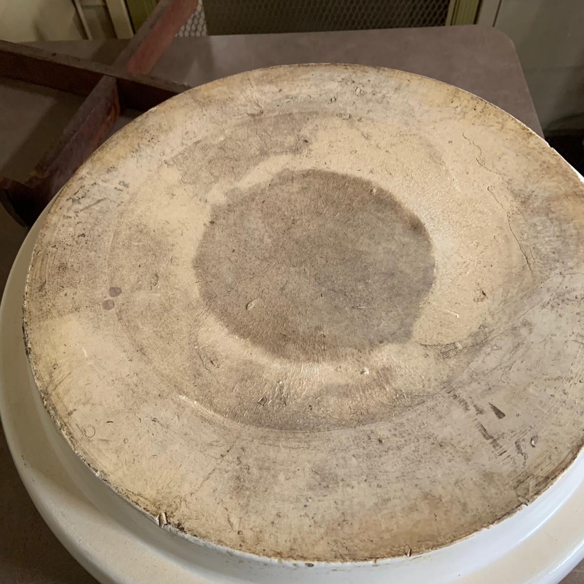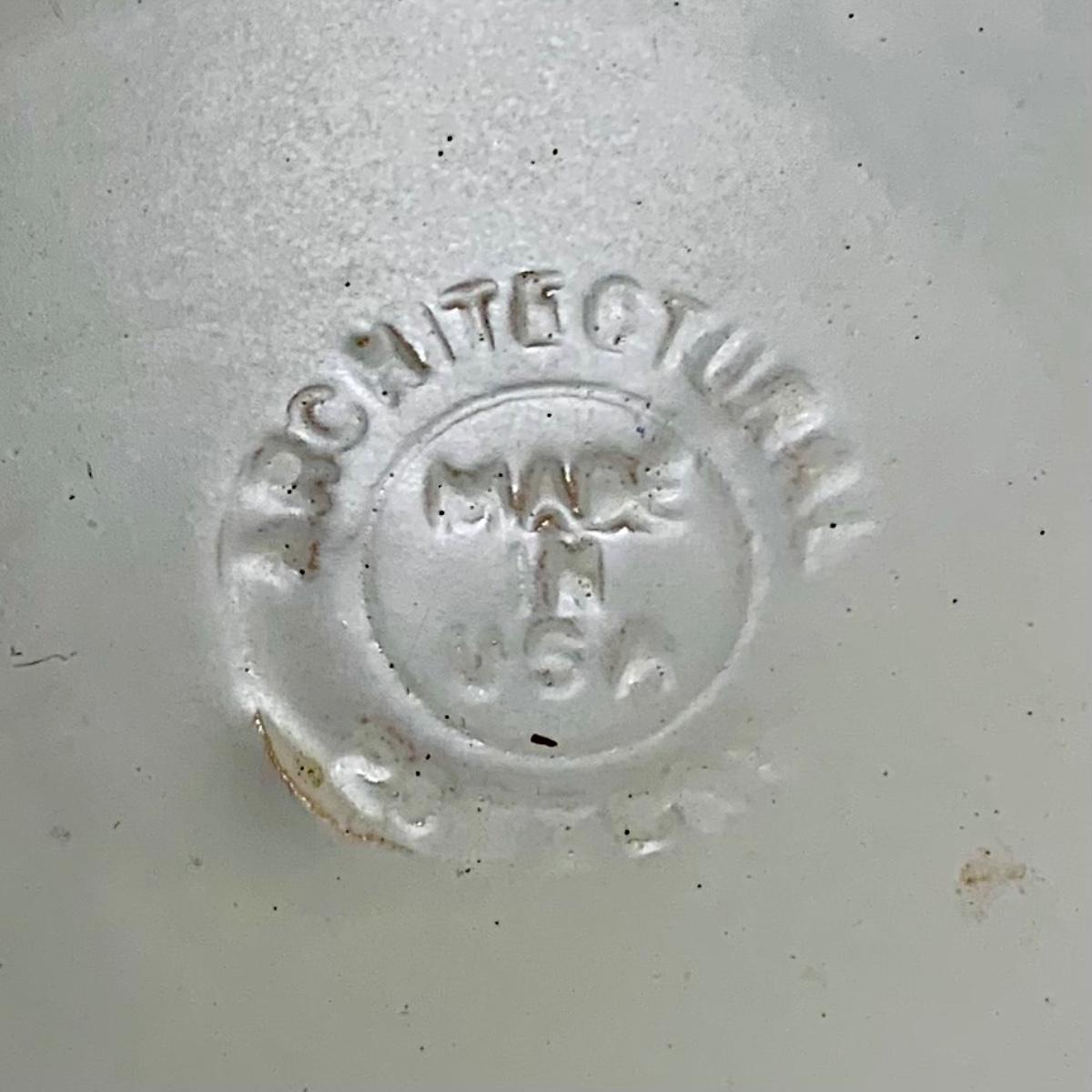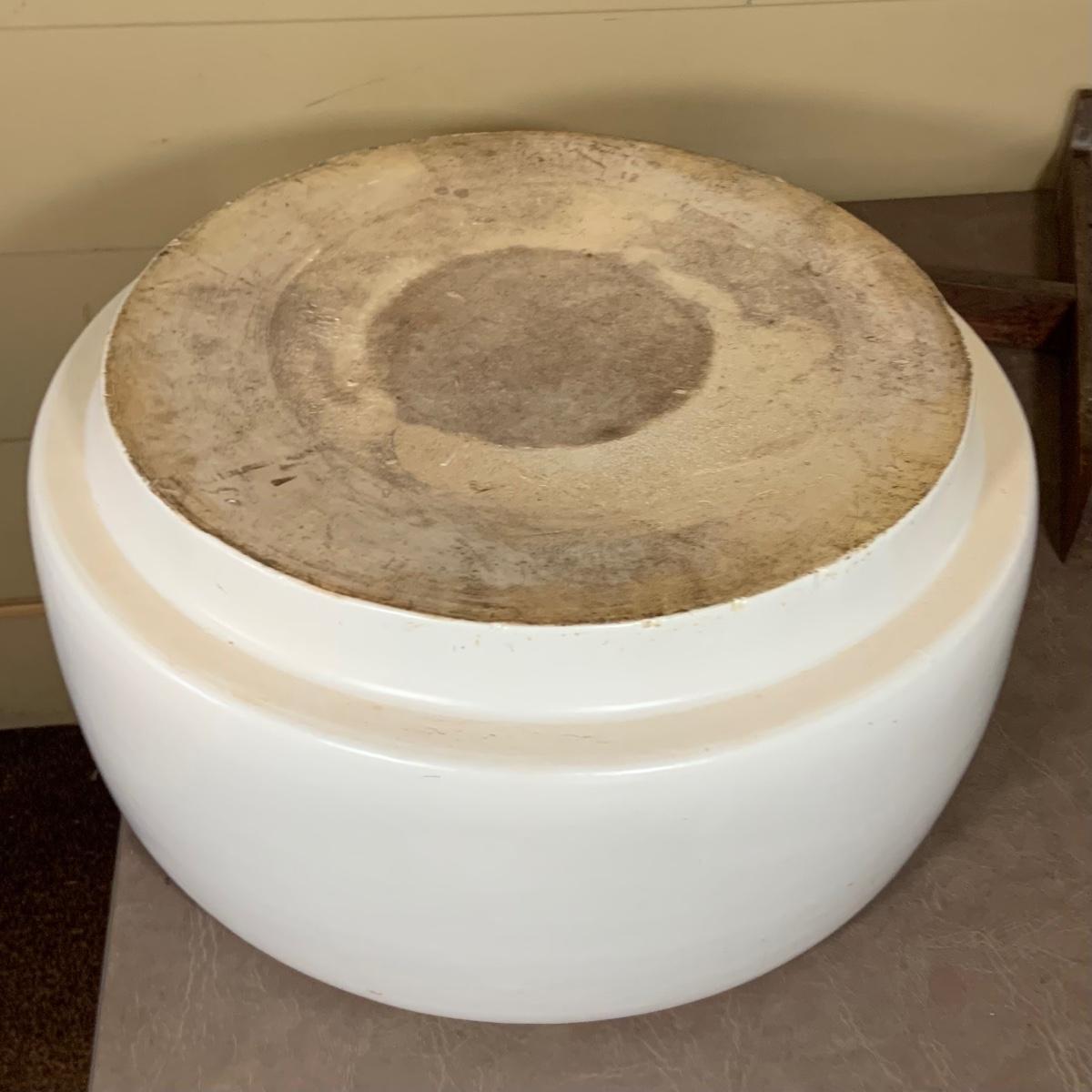 LOT 258: MCM Architectural Pottery Large Cream Colored Planter with Wood Base