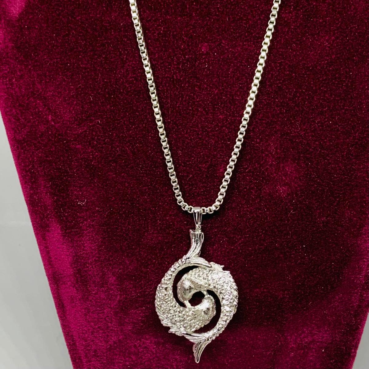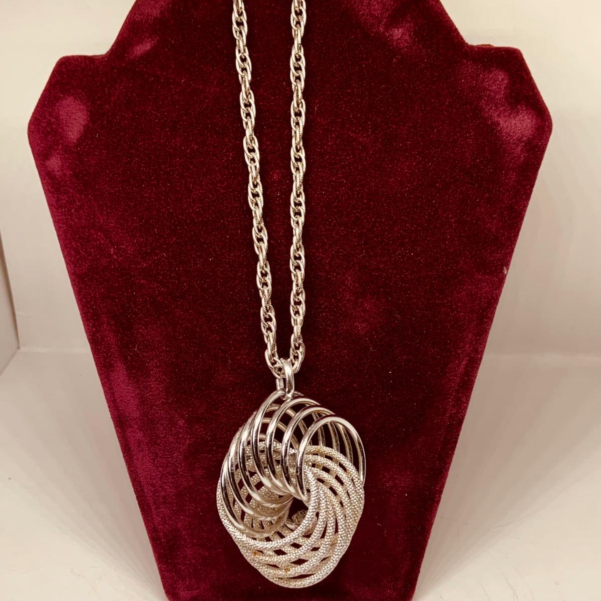 LOT 266: Monet Silvertone Necklaces w/Pendants, Silvertone Trifari Brooch, Gerry's Leaf Brooch and Flower Brooch