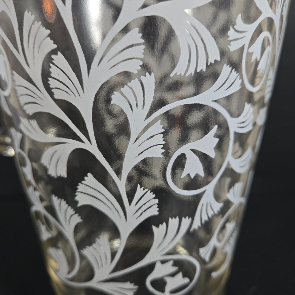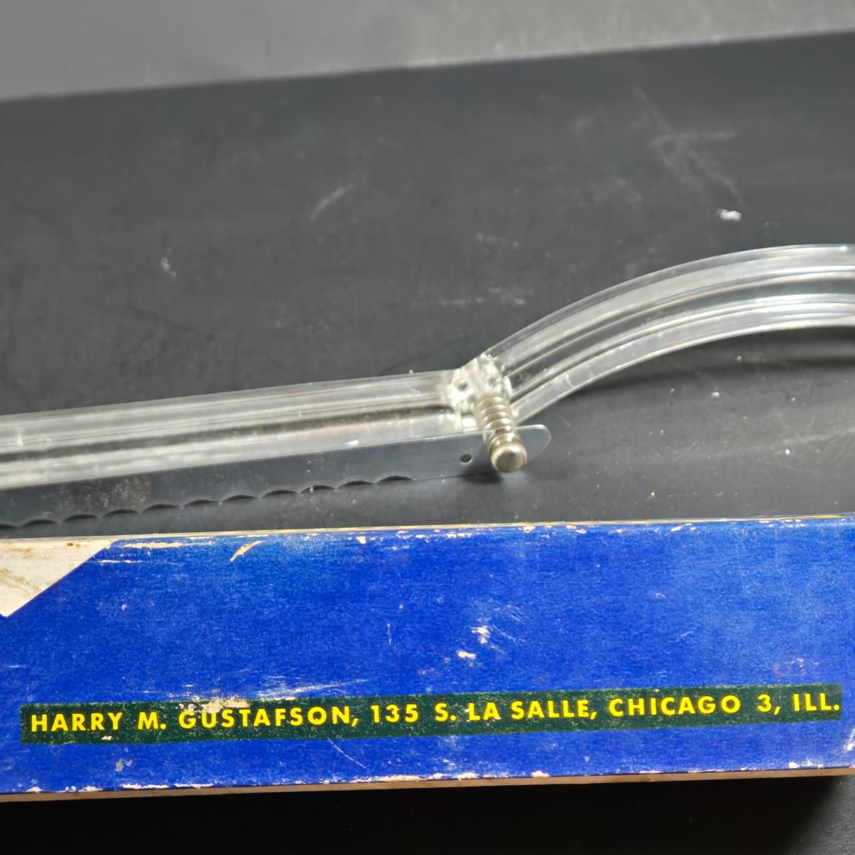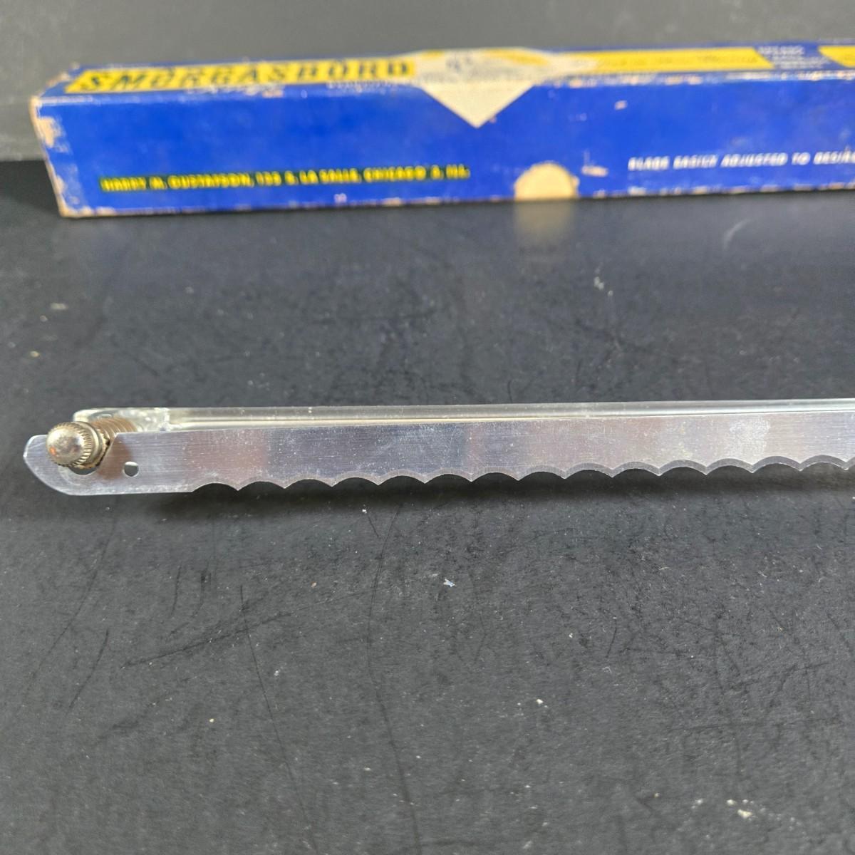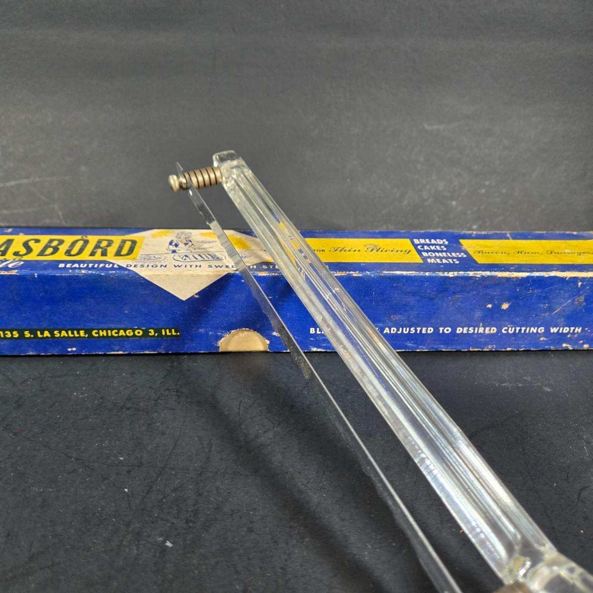 LOT 271: Vintage 1960s Jeanette Blue Corinthian Shot Glasses with Brass Caddy, "HOME SMORGASBORD KNIFE", Vintage Imperial Glass Candlewick Dishes, and MCM Fern Leaf Glass Pitcher