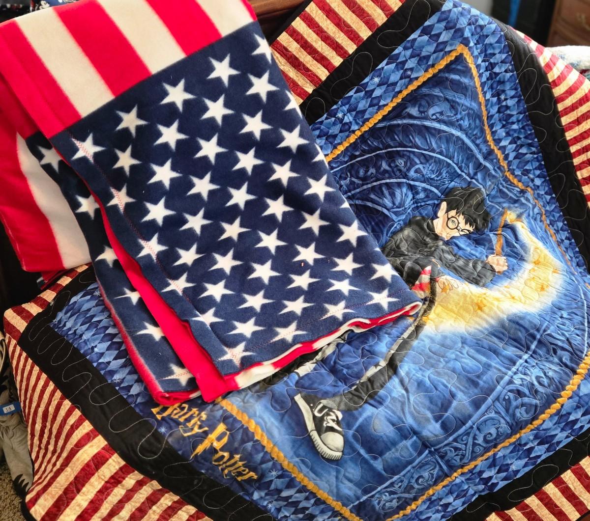 LOT 20: Harry Potter Wall/Lap Quilt & American Flag Fleece Blanket