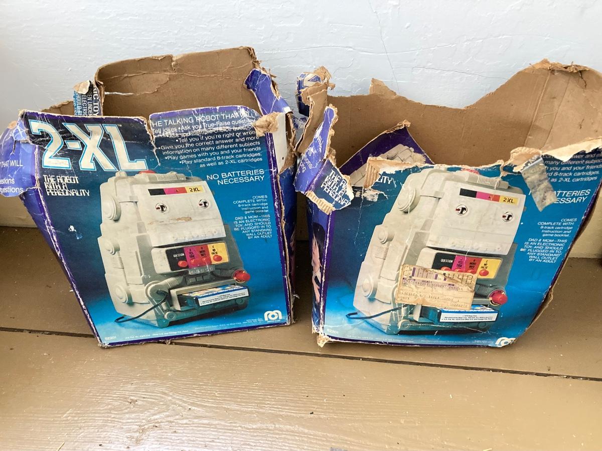LOT 28: Pair of Vintage Mego 2XL Robots with Accessories