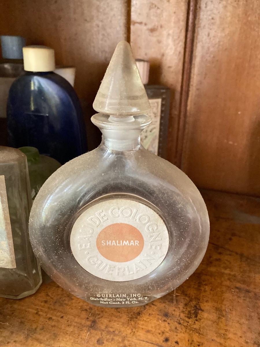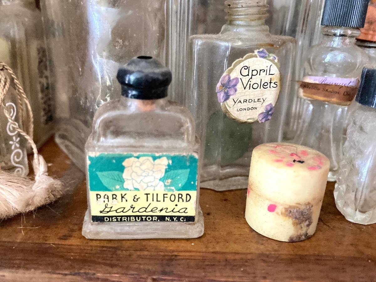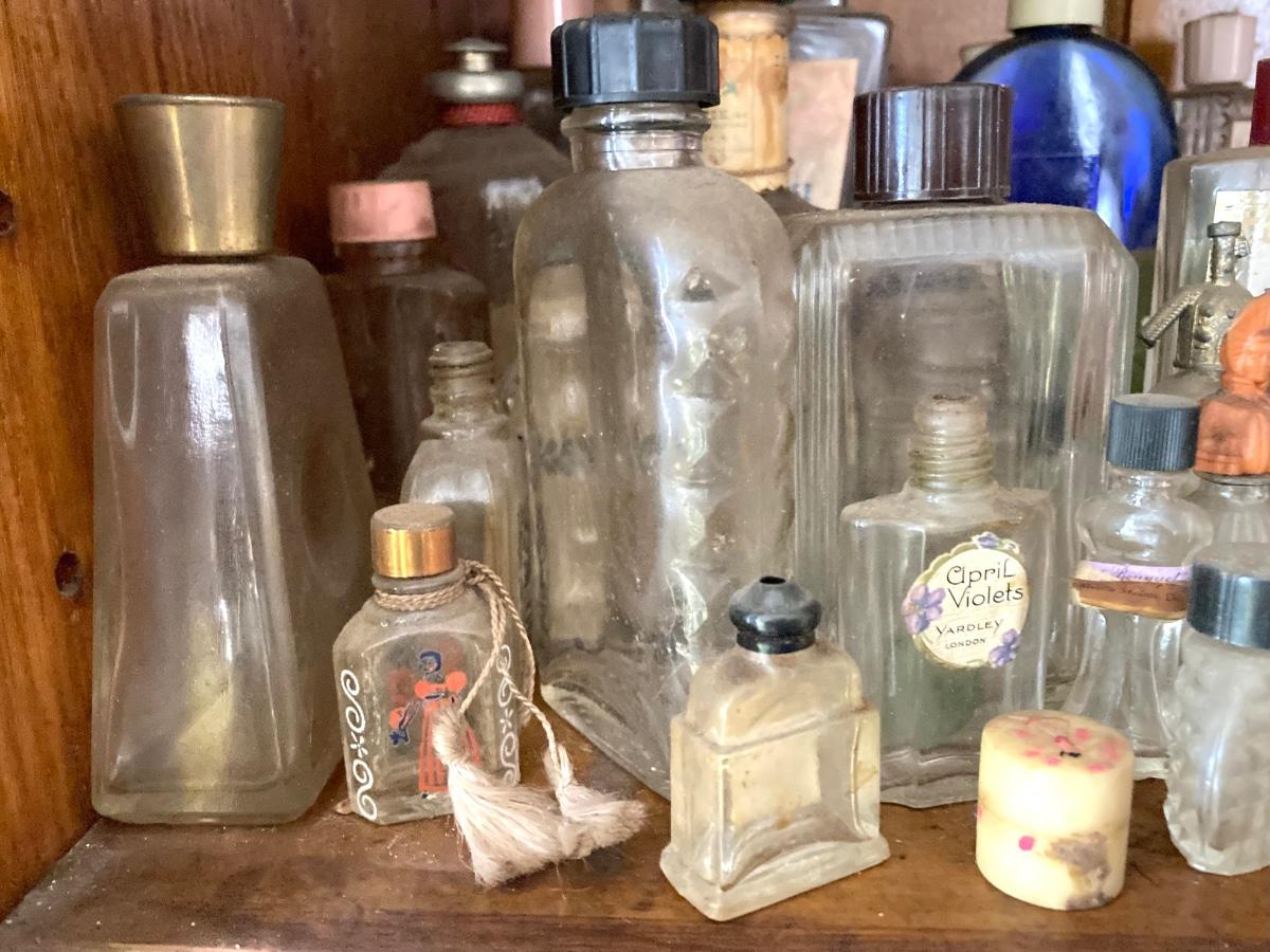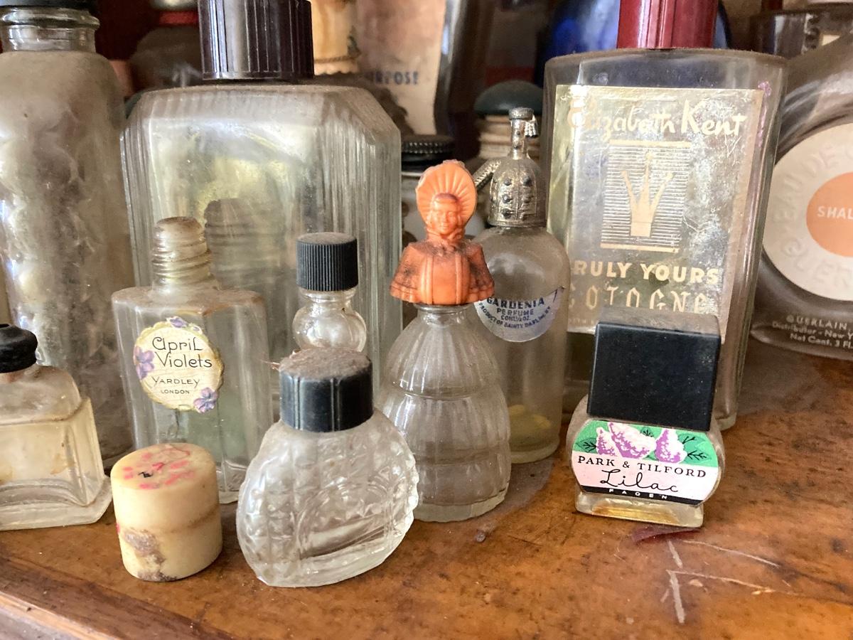 LOT 36: Collection of Vintage Glass Perfume Bottles - Guerlain Shalimar, Park & Tilford, Yardley and More
