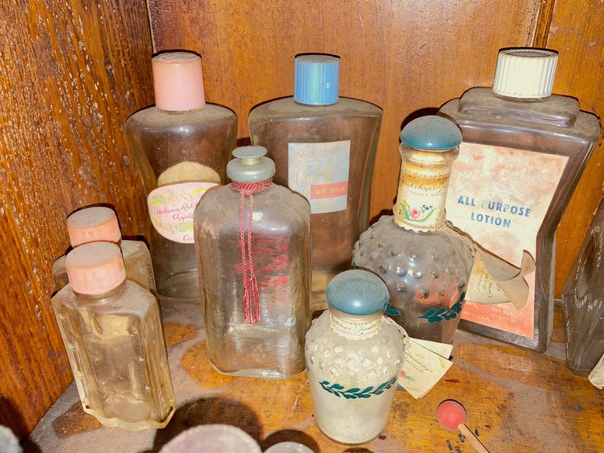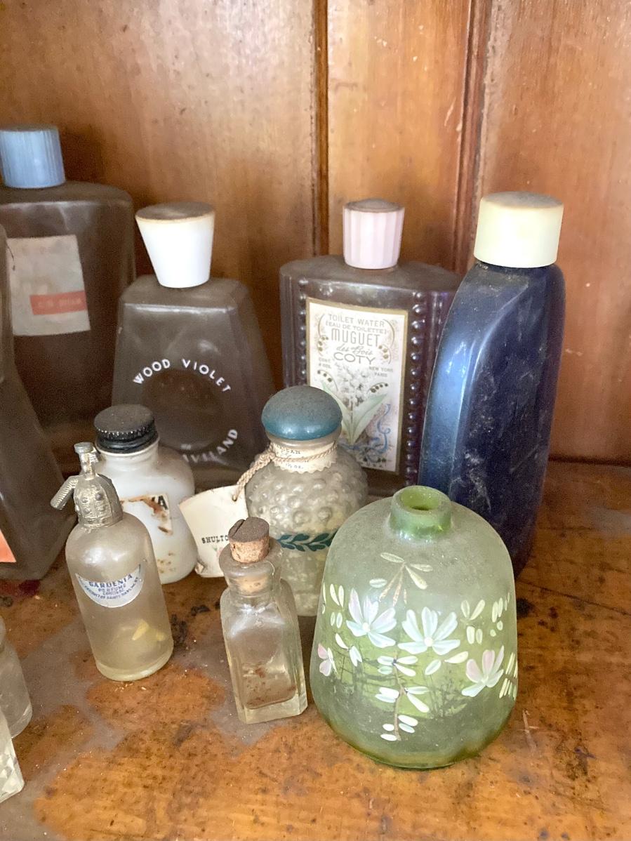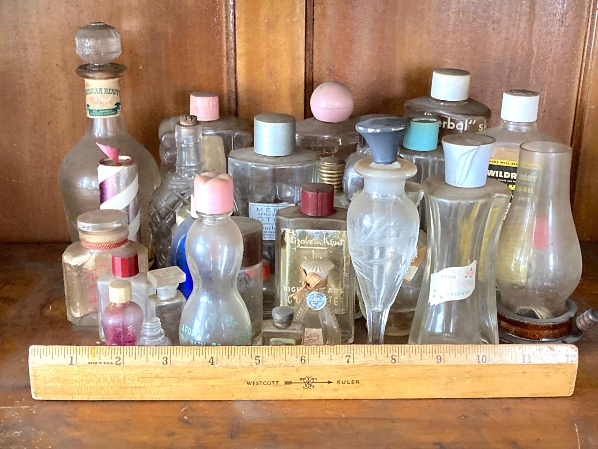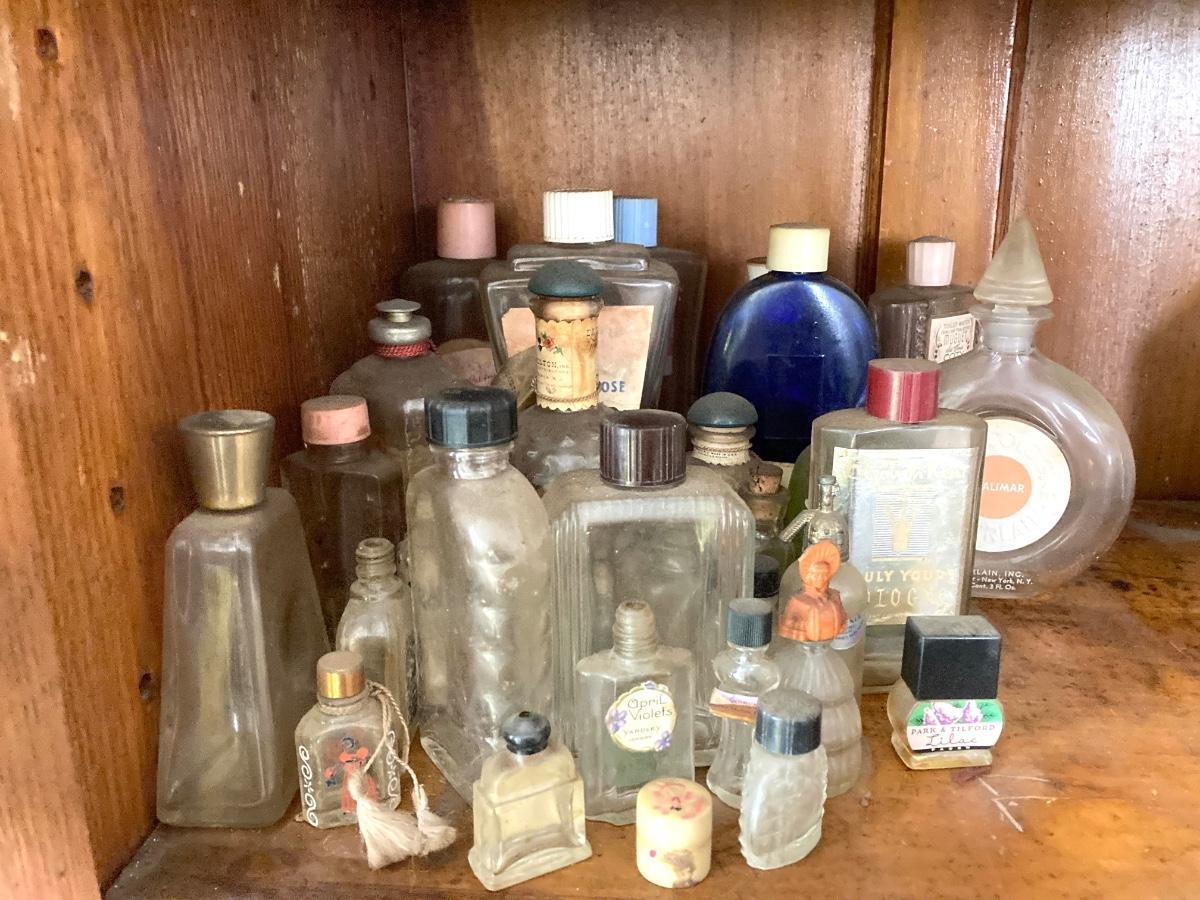LOT 36: Collection of Vintage Glass Perfume Bottles - Guerlain Shalimar, Park & Tilford, Yardley and More