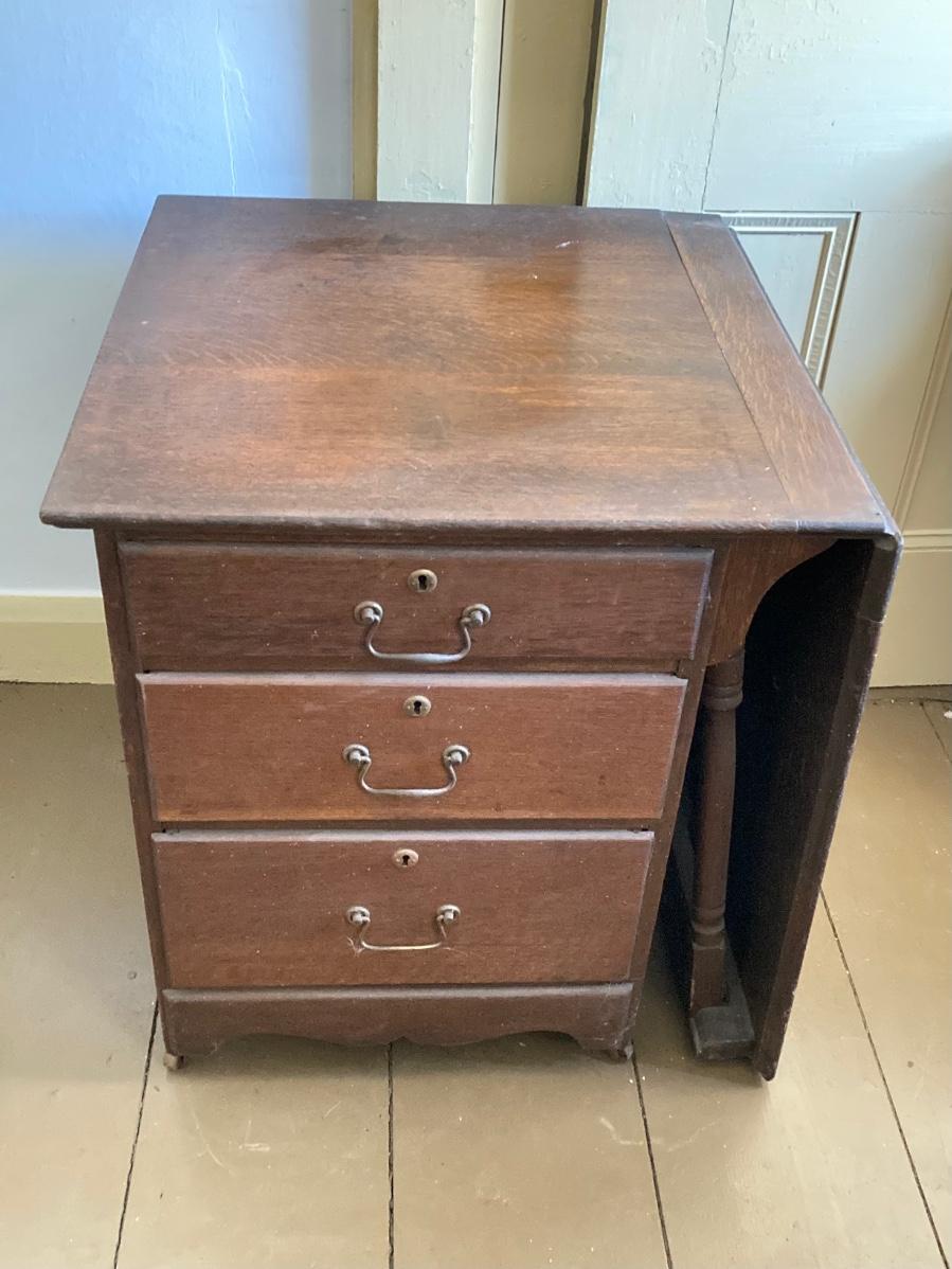 LOT 44: Vintage/Antique Wooden Folding/Drop Leaf Arts & Crafts Table w/3-Drawers