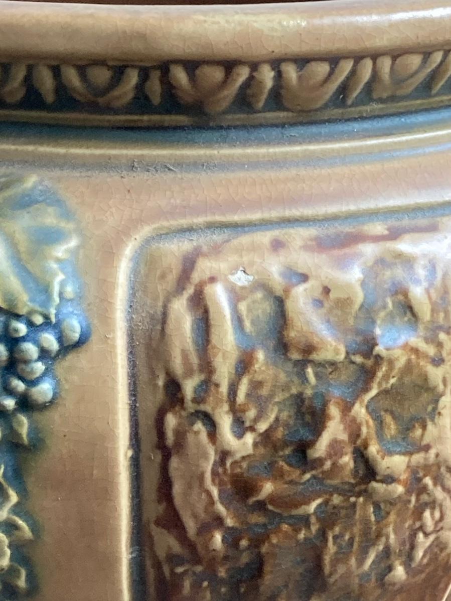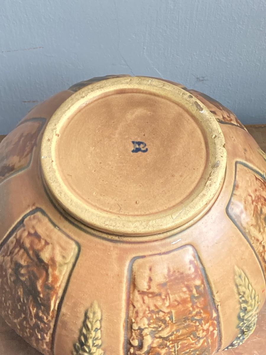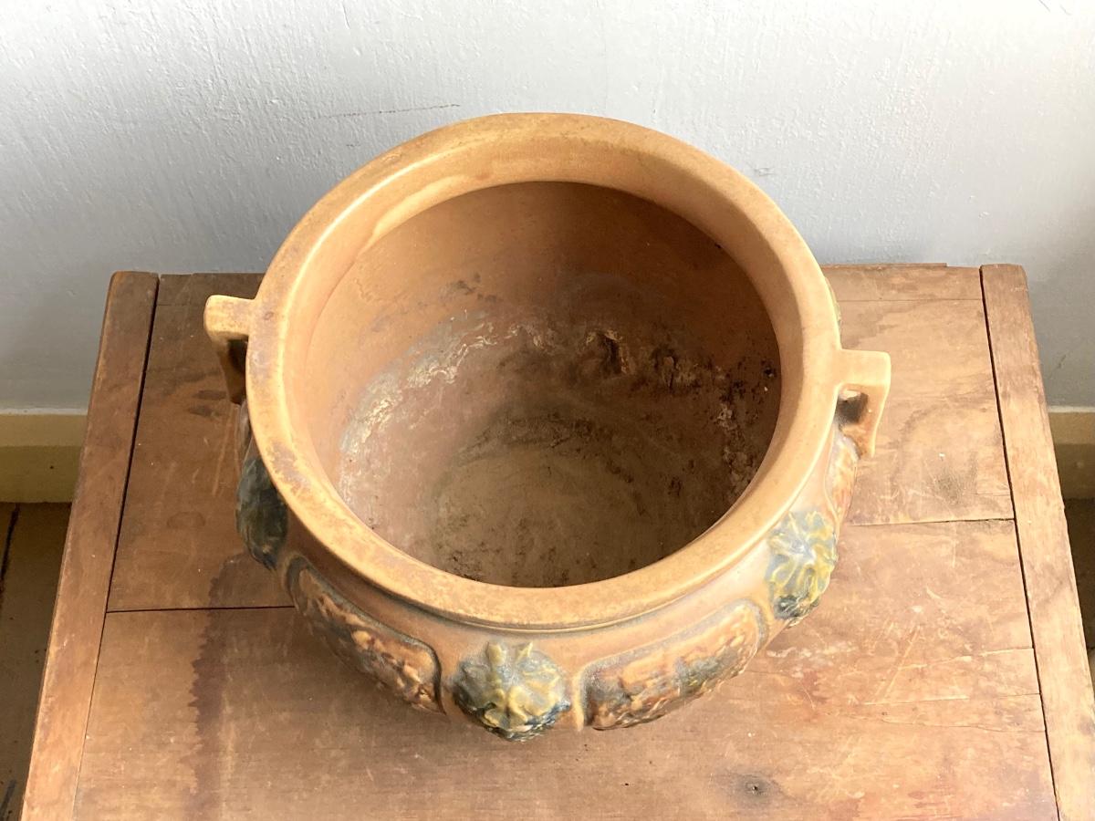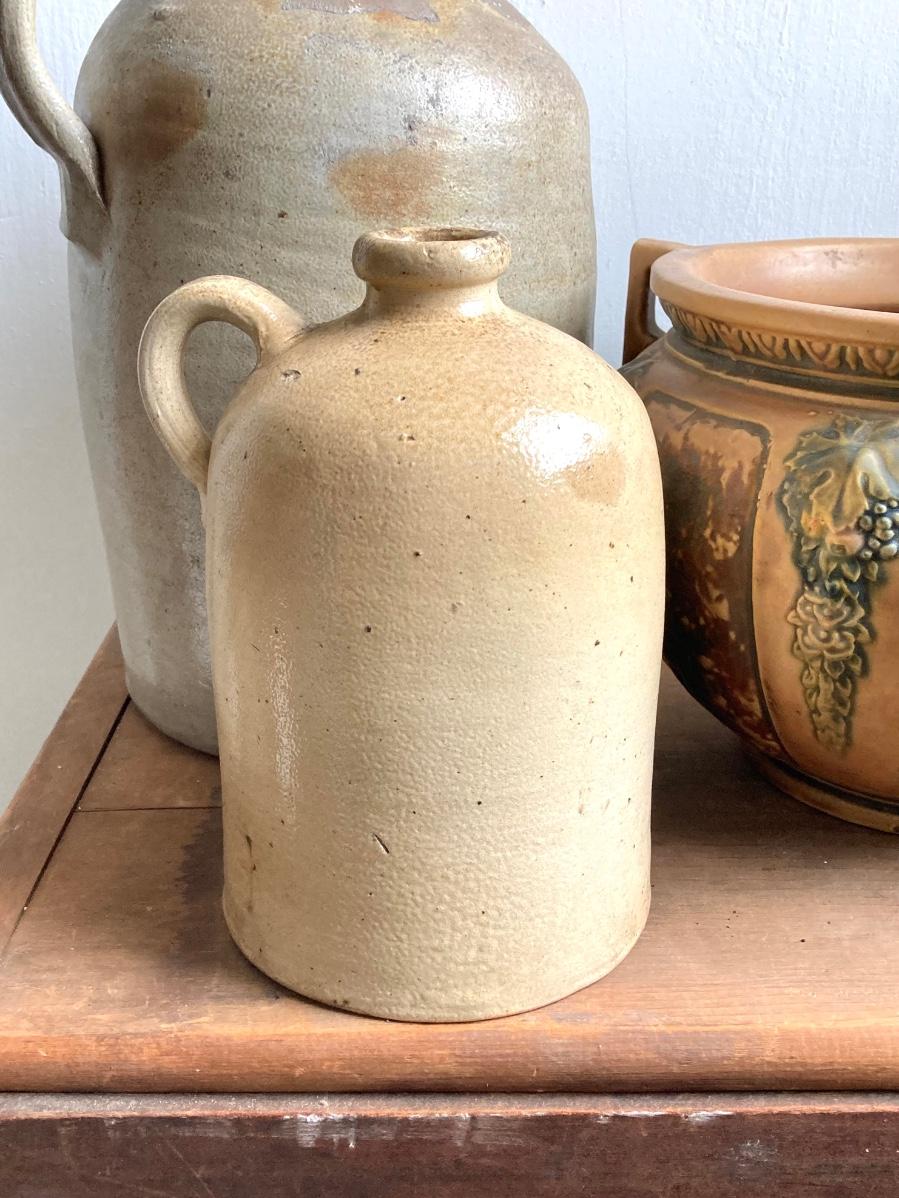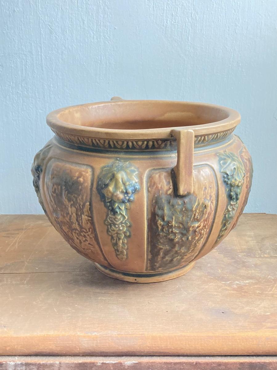 LOT 52: Vintage Roseville Pottery Planter along with a #2 Stoneware Jug & 1/2 Stoneware Jug