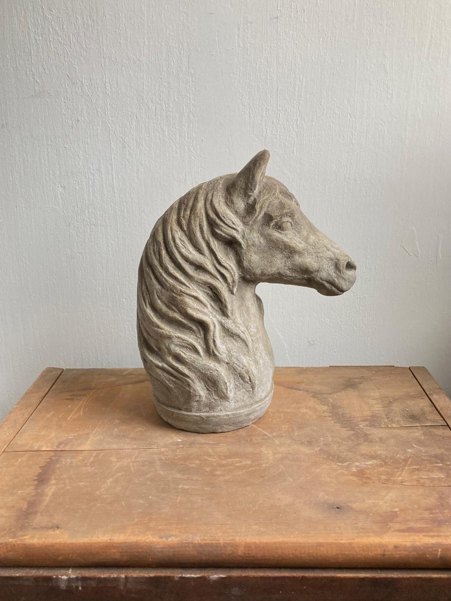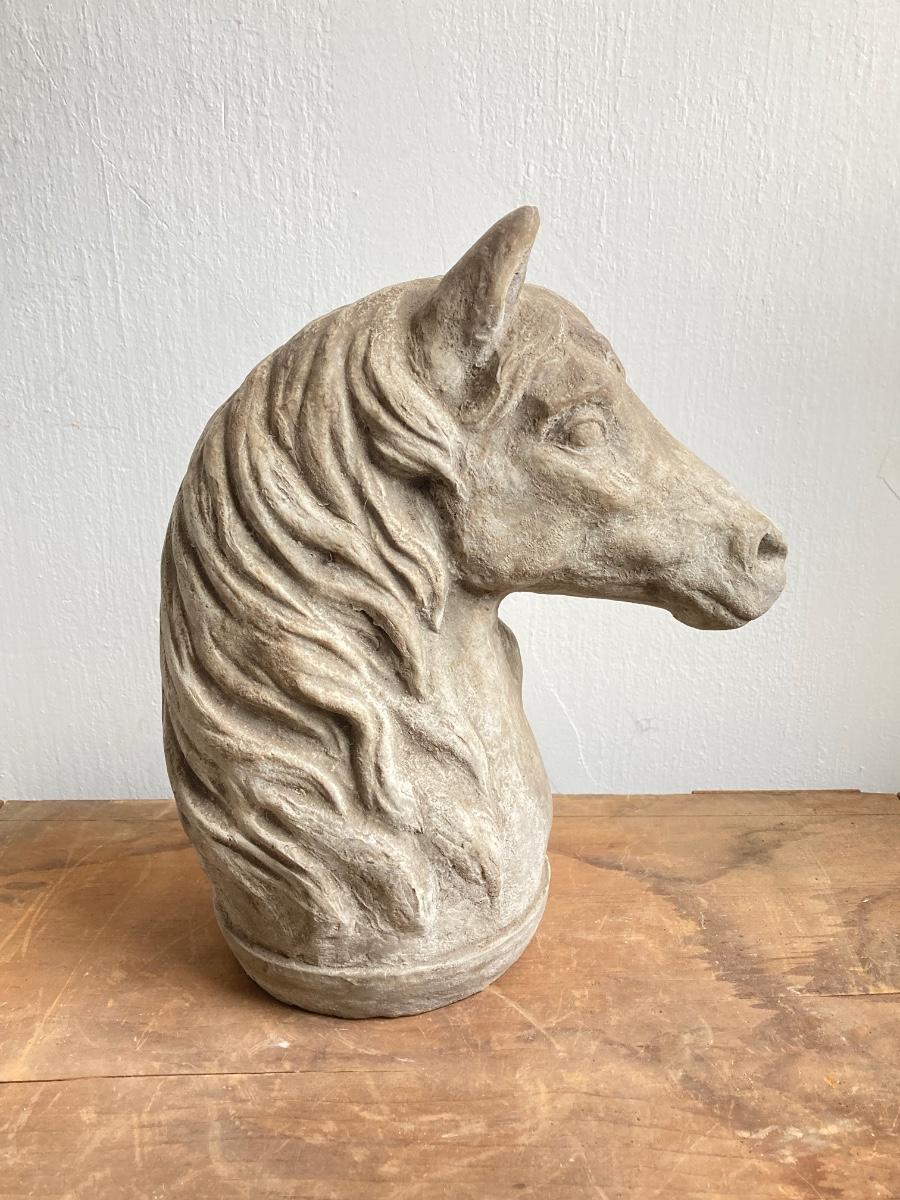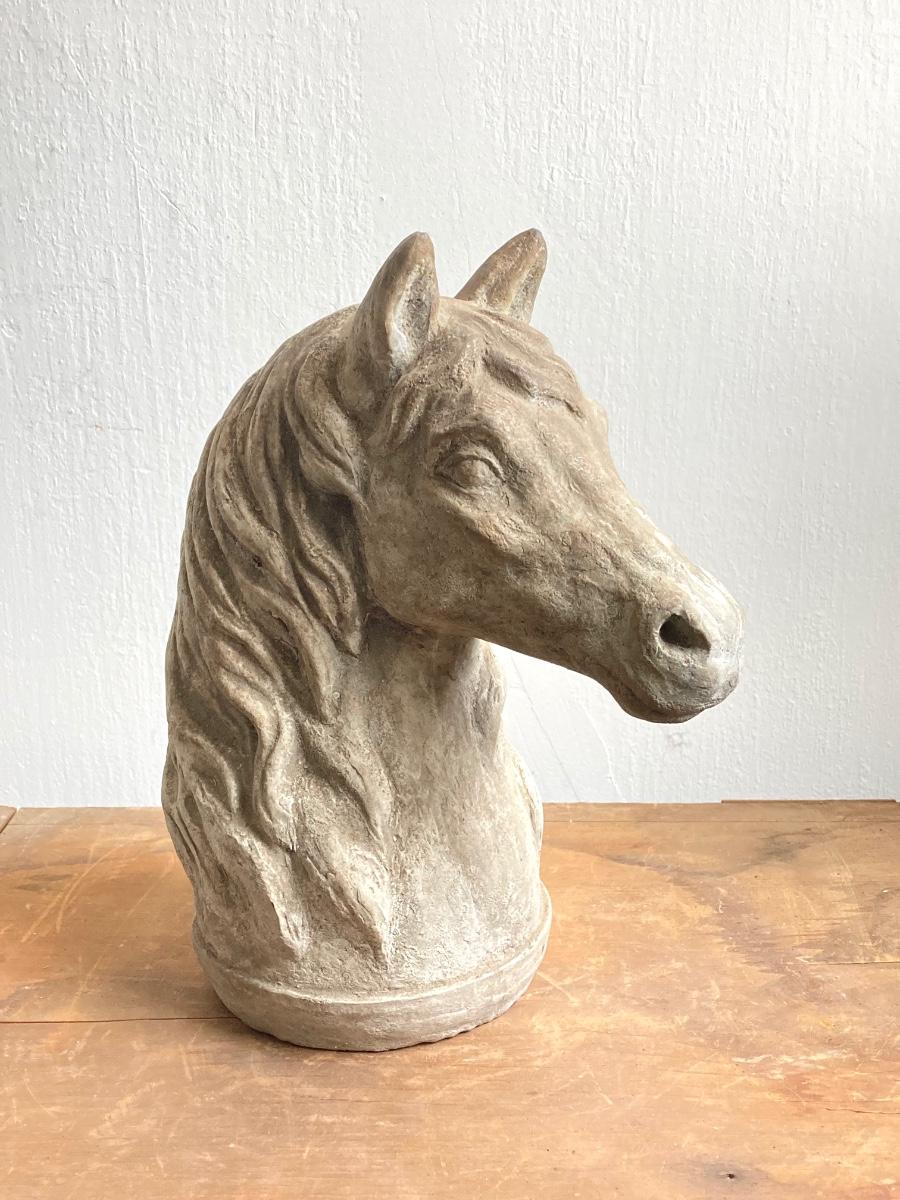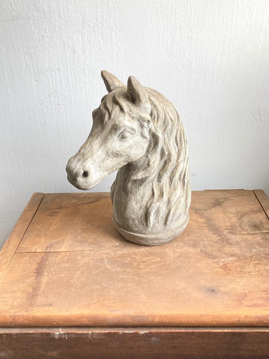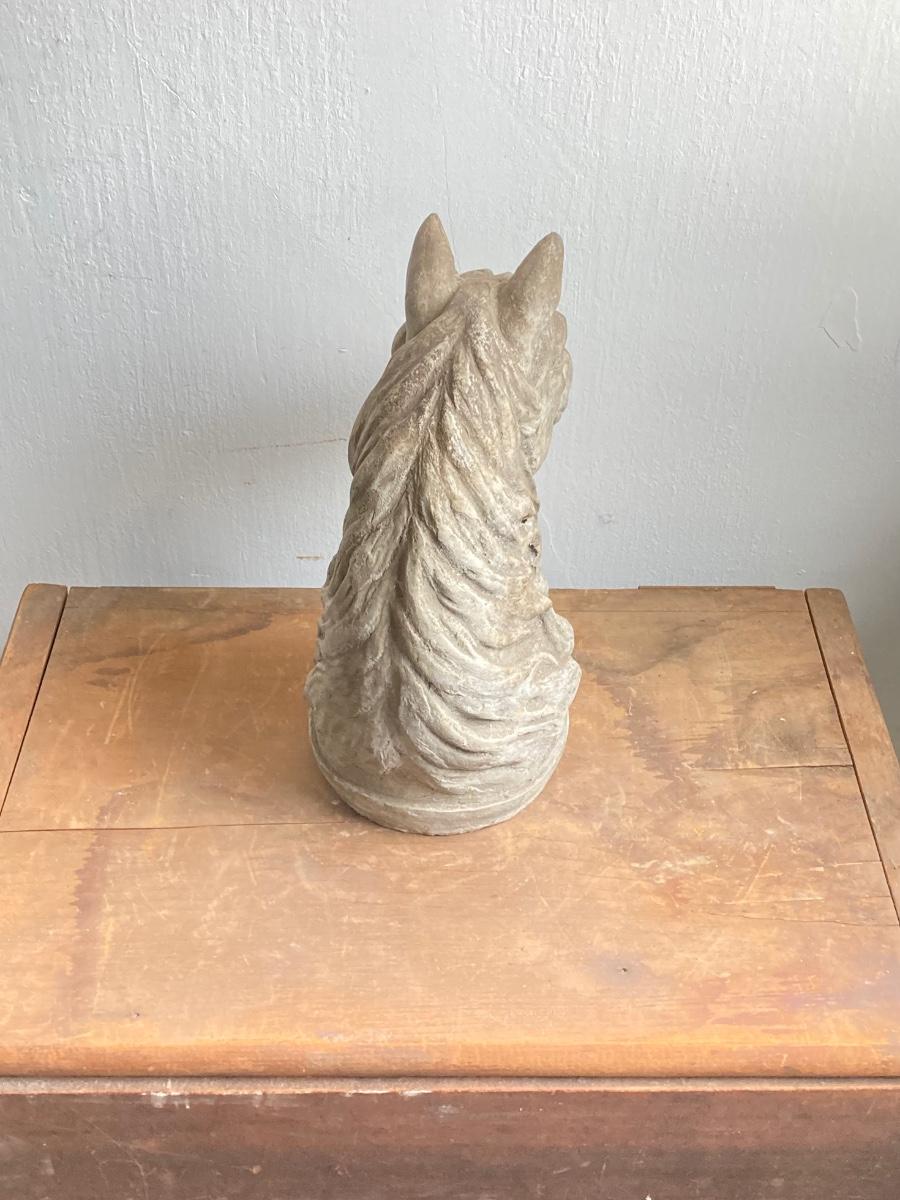 LOT 54: Vintage Concrete Horse Statue and Horse Shoe