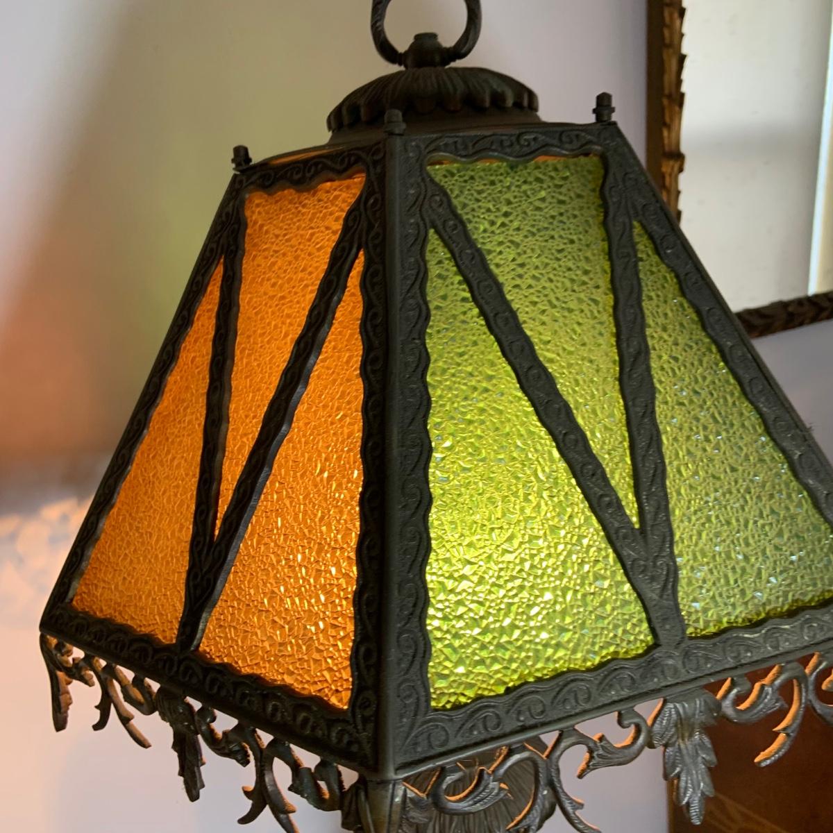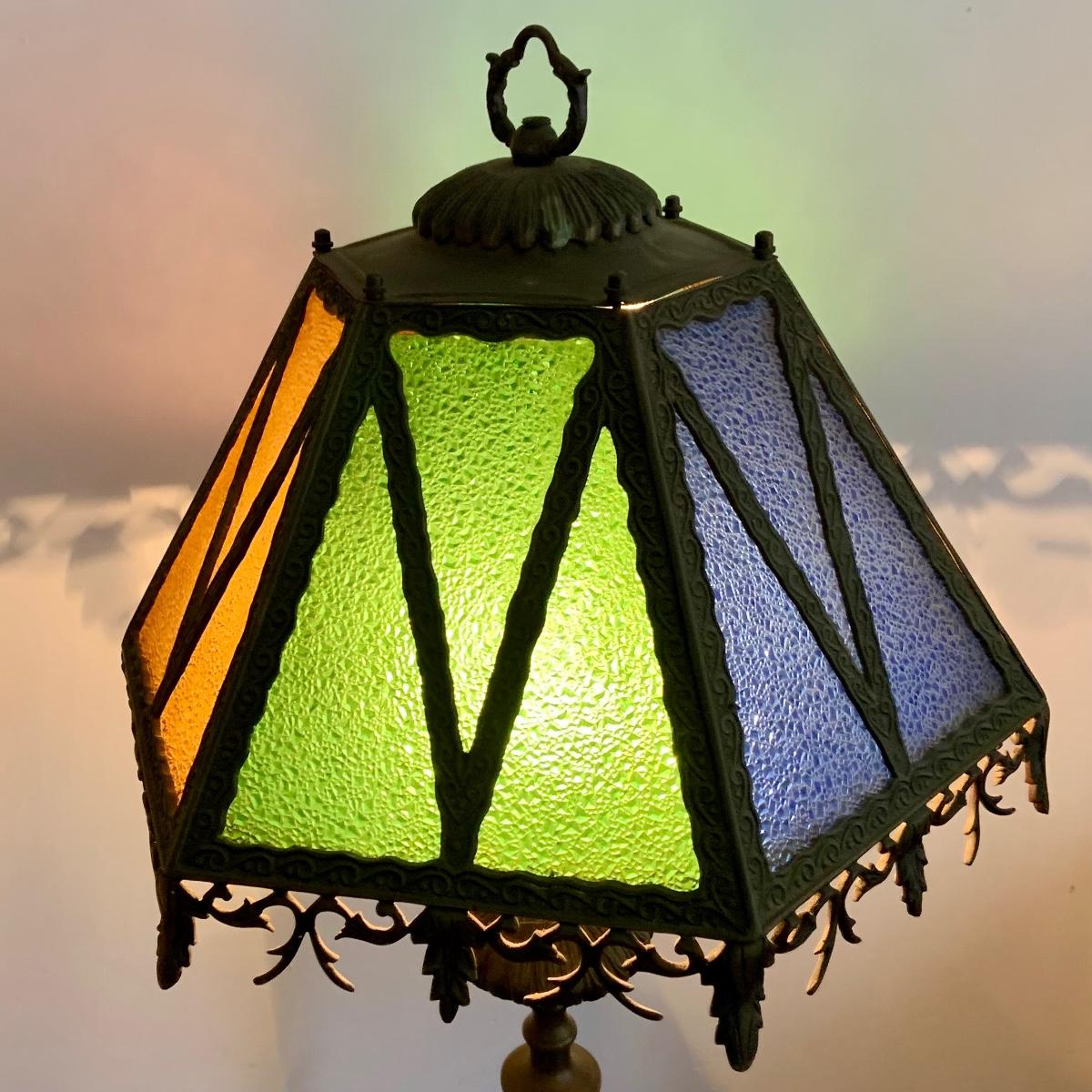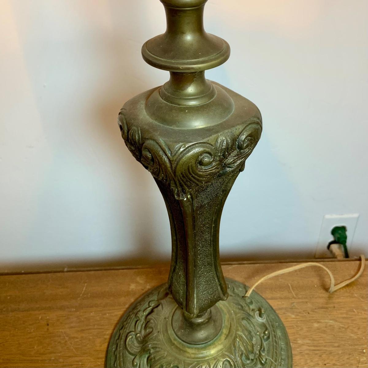 LOT 62: Beautiful Vintage/Antique Metal Table Lamp with Color Glass Shade - Very Heavy