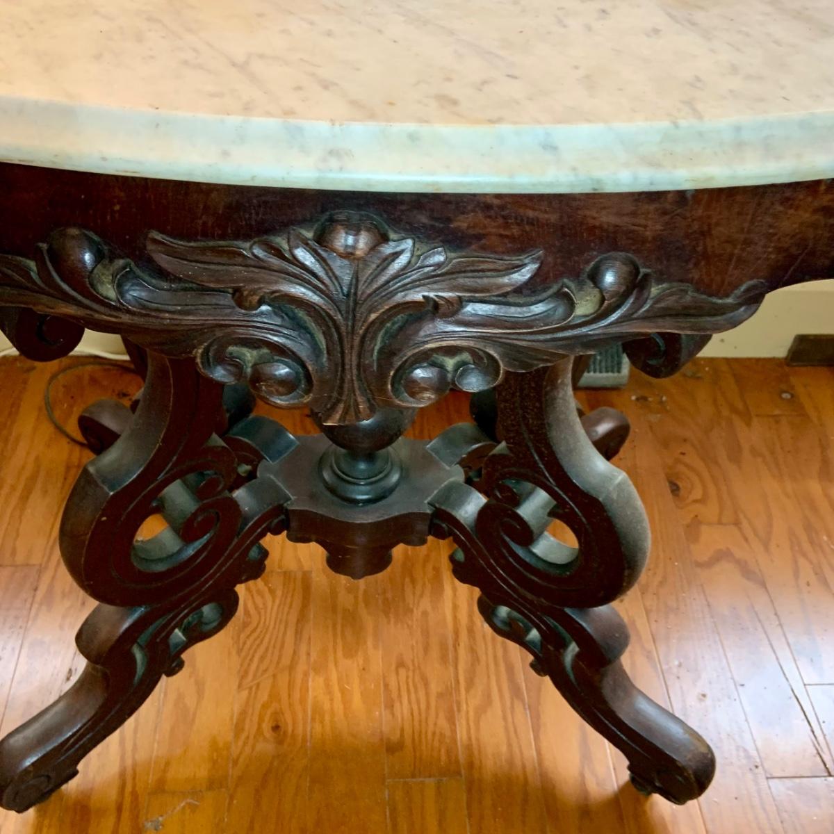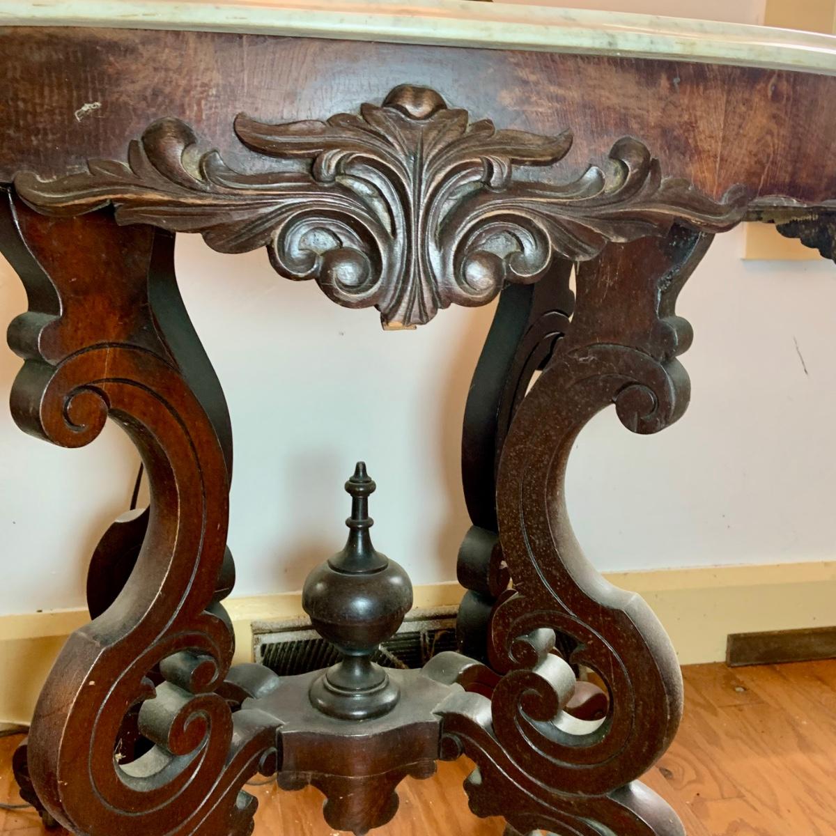 LOT65: Antique/ Vintage Victorian Carved Wood Table with Marble Top